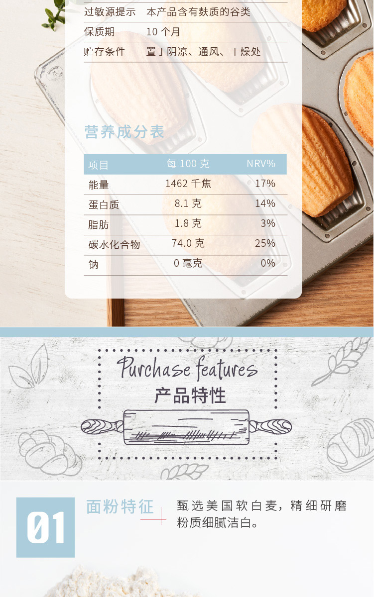 私房专用/1箱10包*1kg/王后牌T55传统法式面包粉