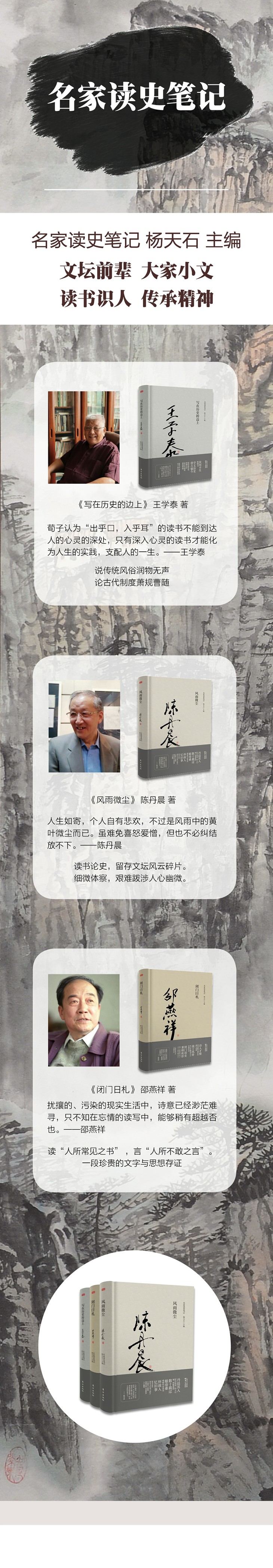 邵燕祥、王学泰、陈丹晨私人著作!《名家读史笔记》三位中国当代文坛影响力学者通力合作,谈论社会、评说人生