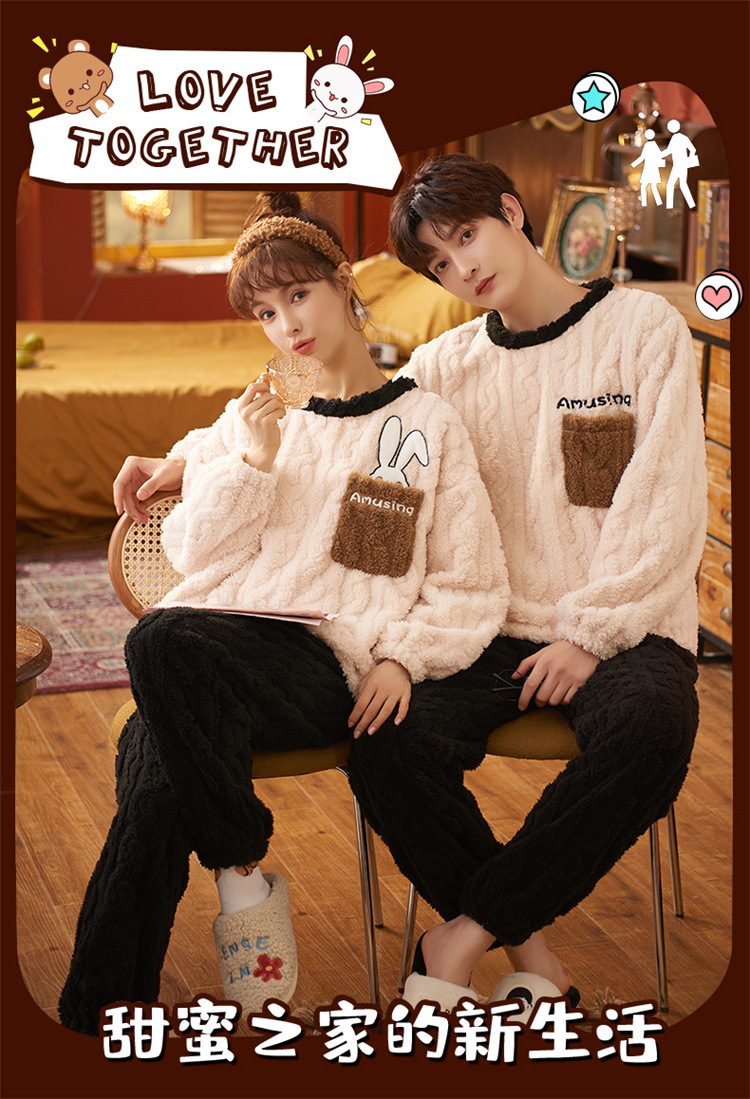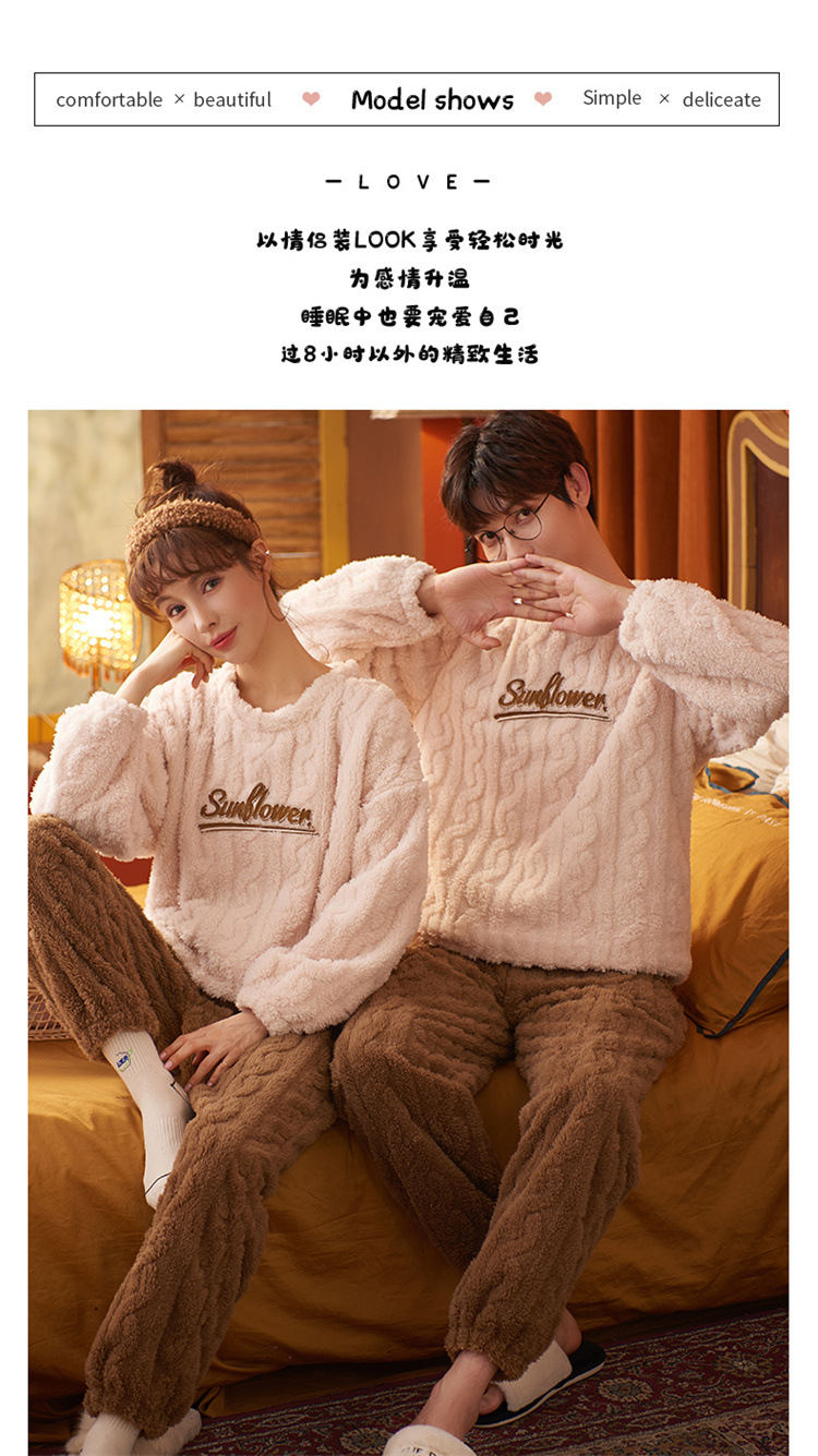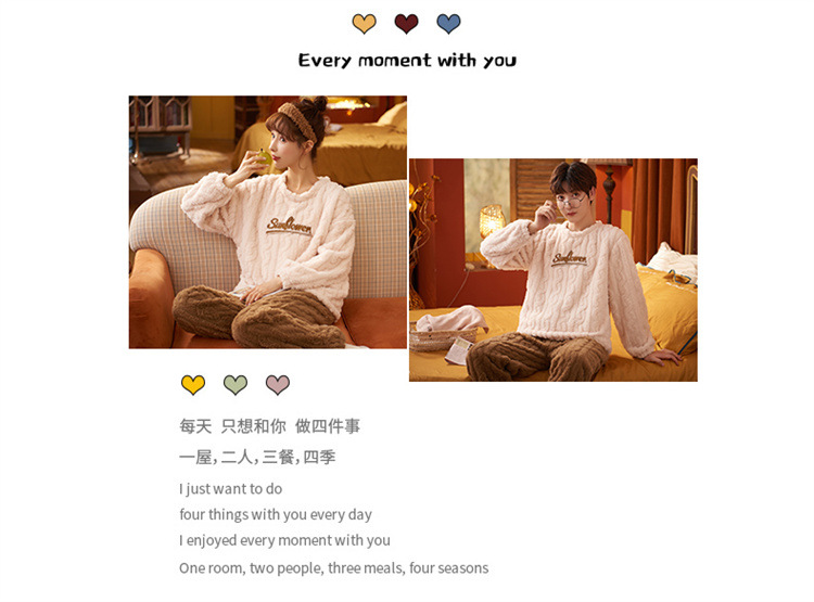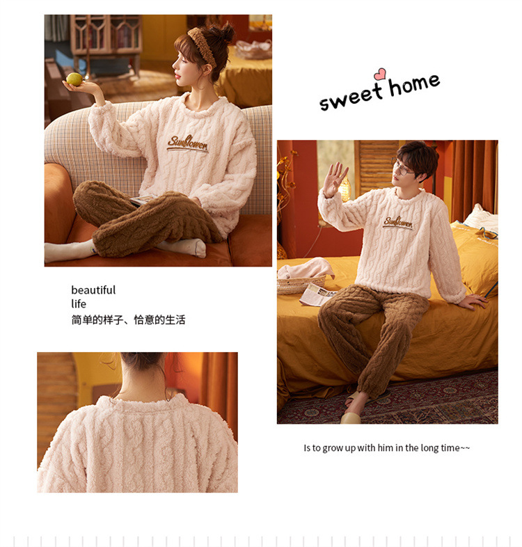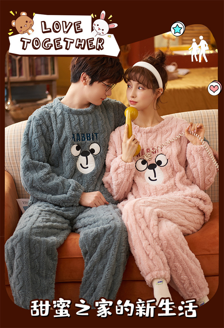 【服饰鞋包】-情侣睡衣秋冬款加厚保暖男睡衣女冬季法兰绒坑条家居服套装