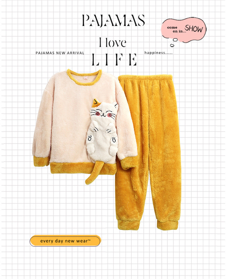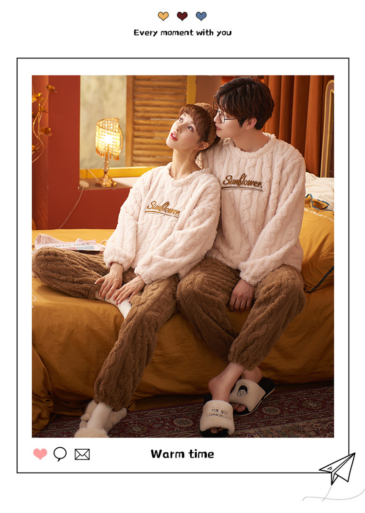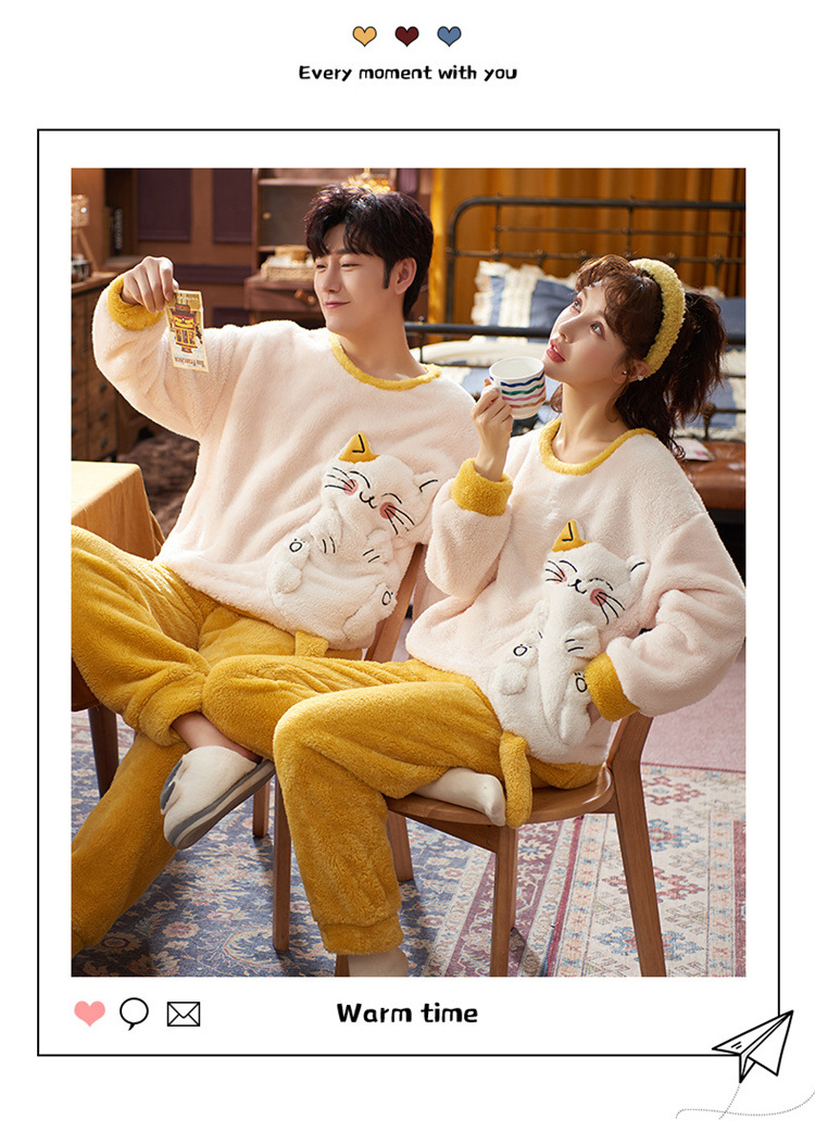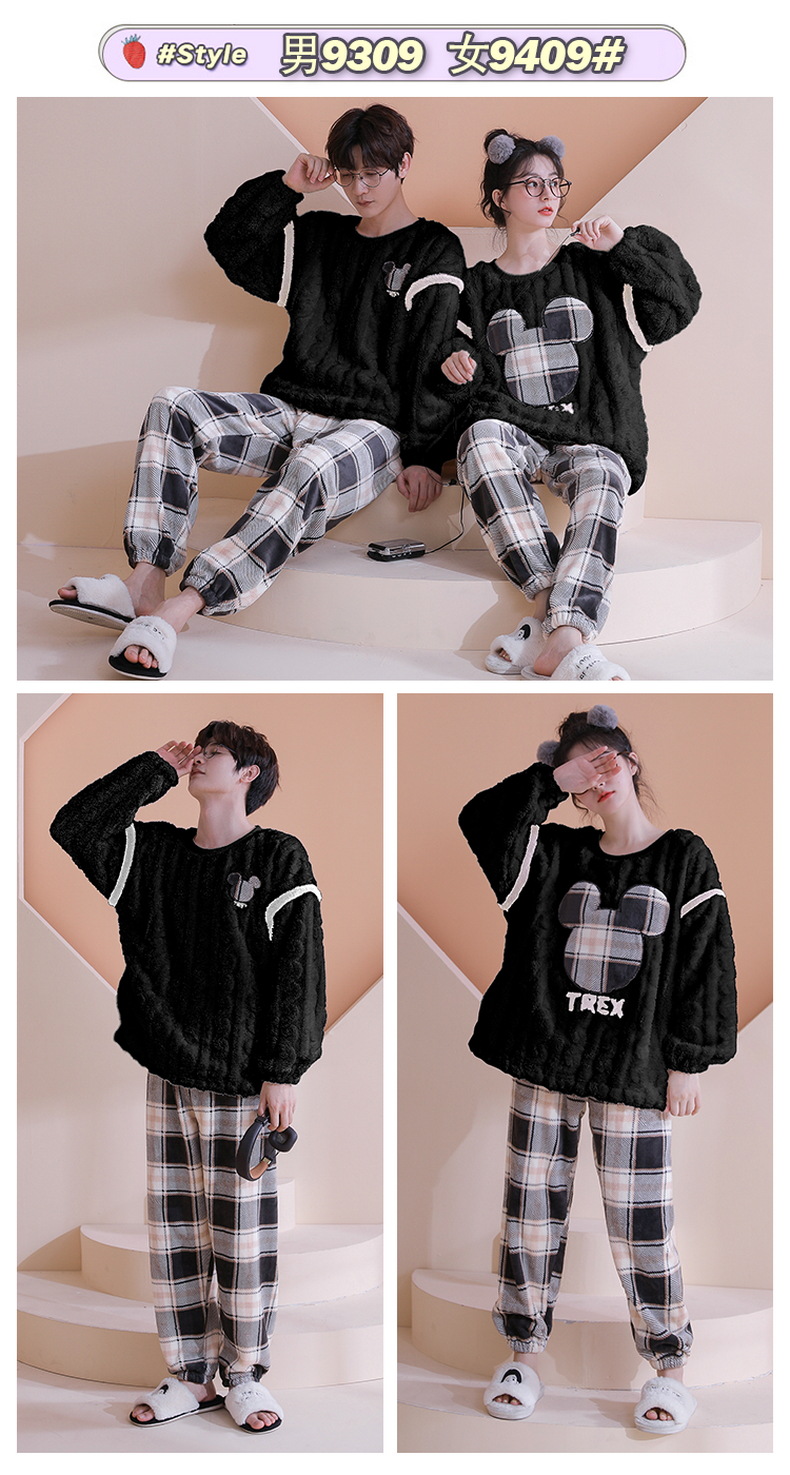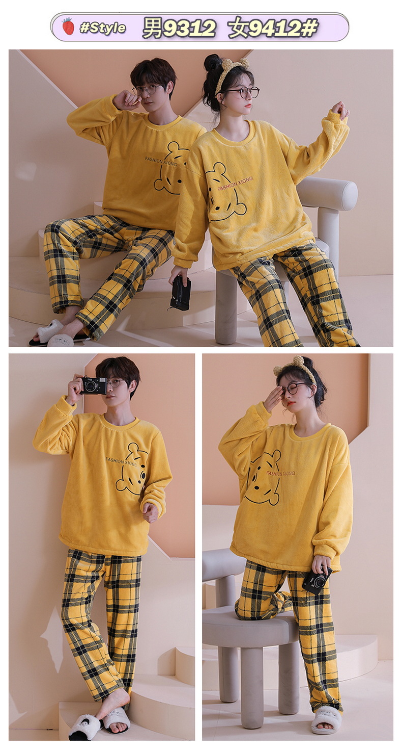 【服饰鞋包】-情侣睡衣秋冬款加厚保暖男睡衣女冬季法兰绒坑条家居服套装