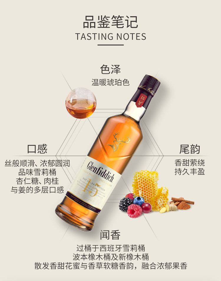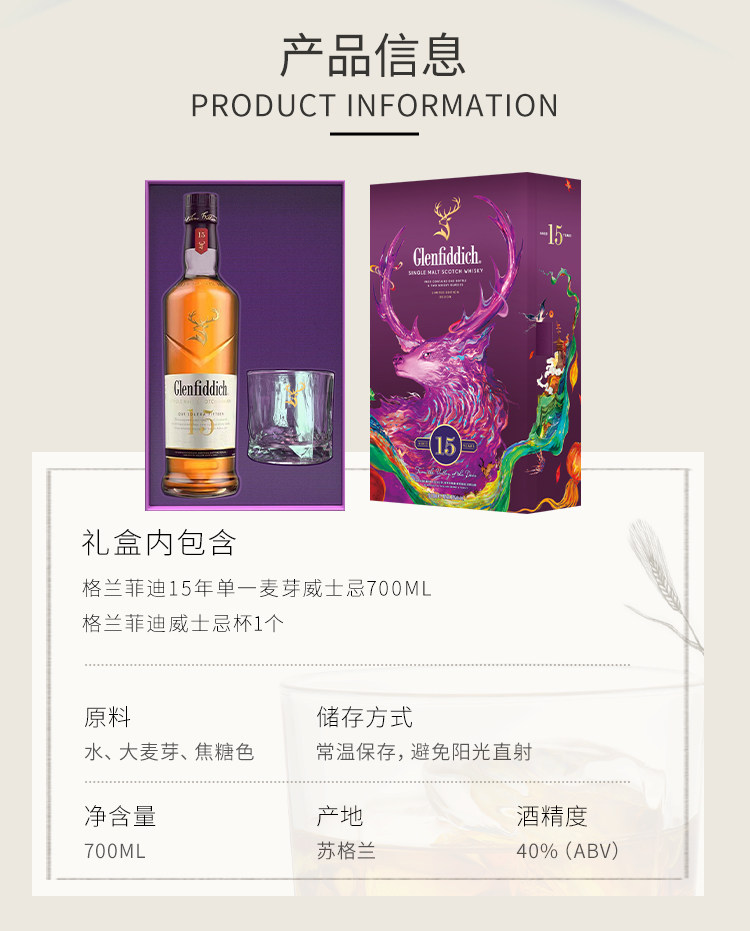 【行货】礼盒版 苏格兰格兰菲迪15年单一麦威士忌 700ml*1瓶