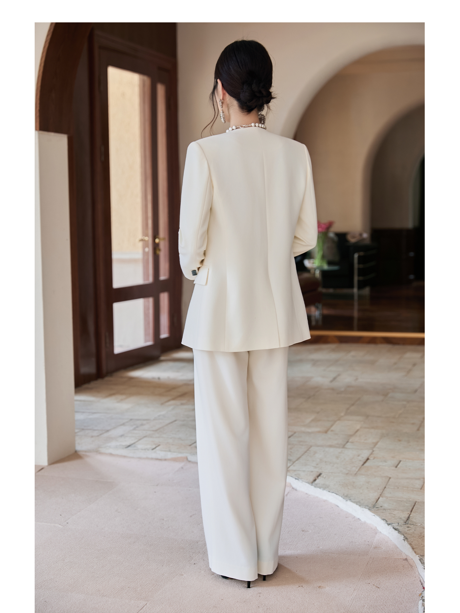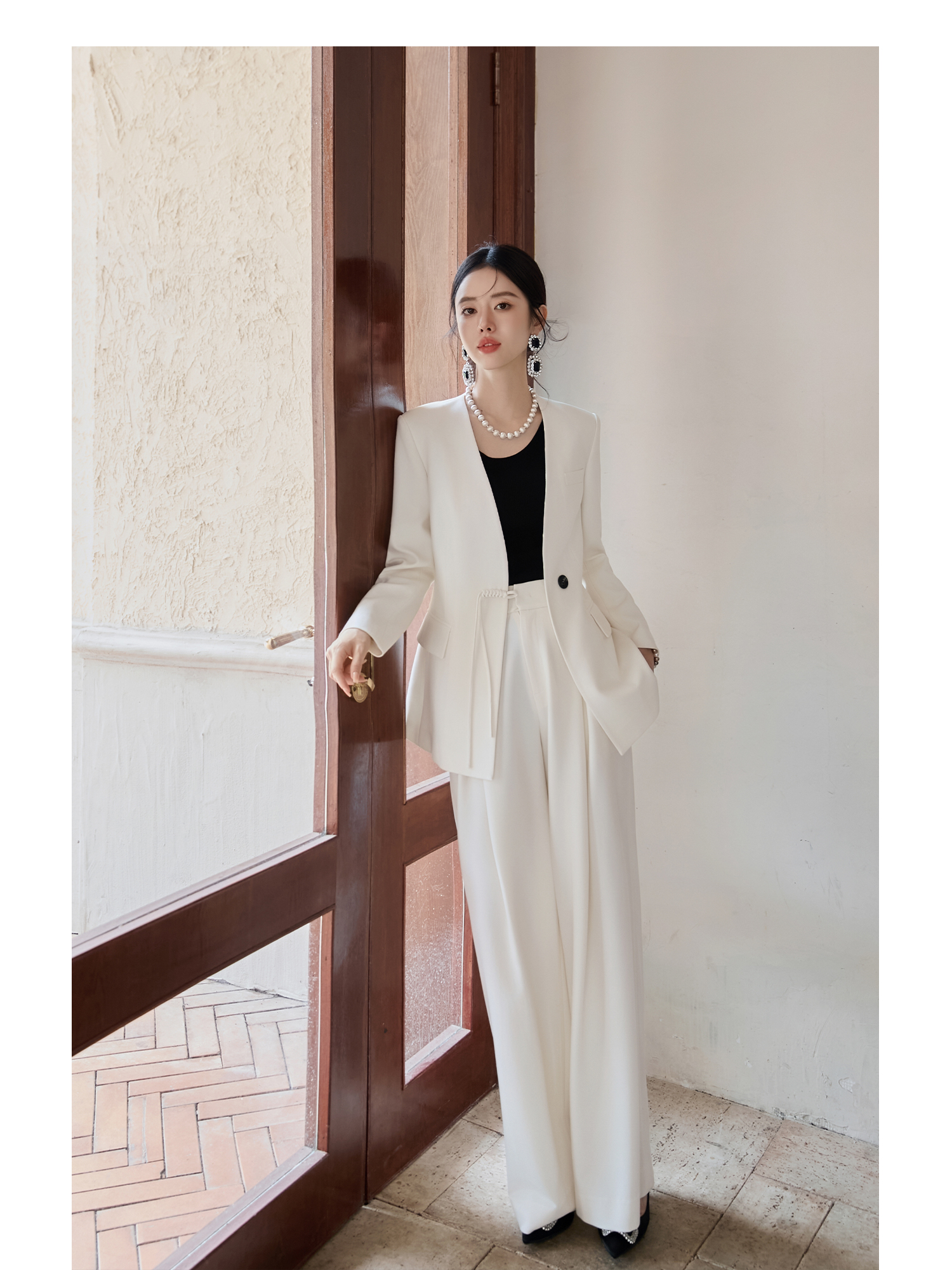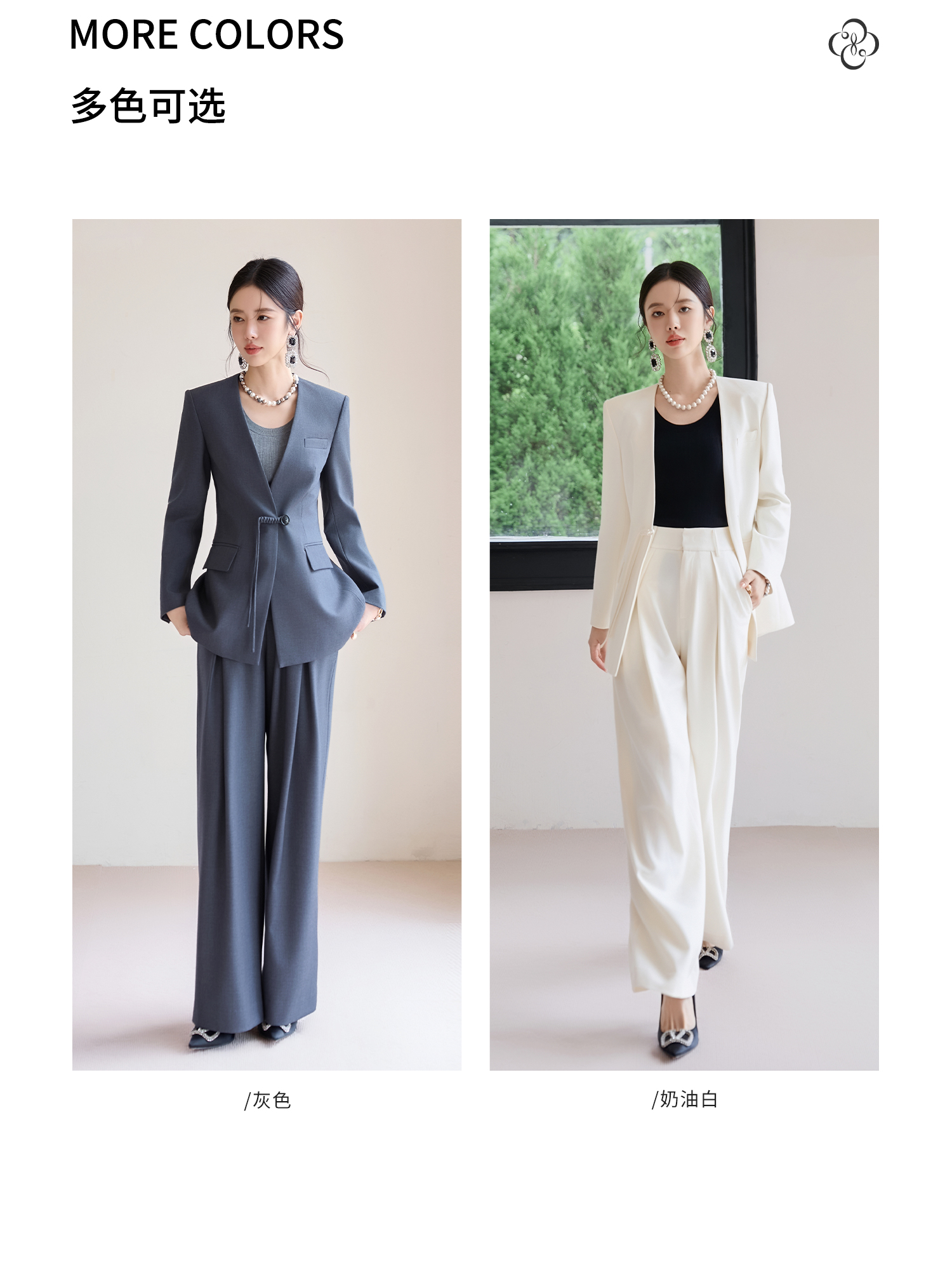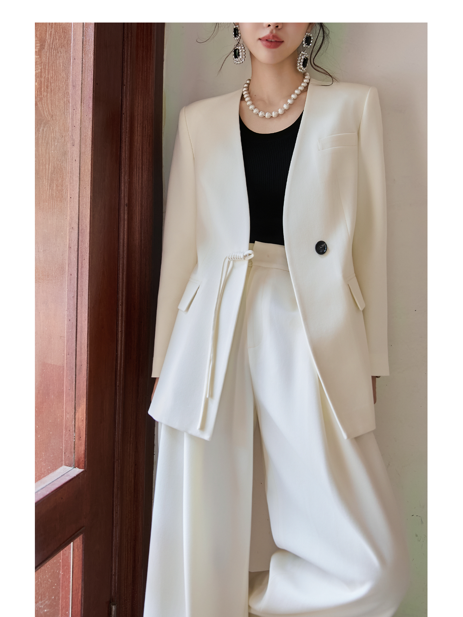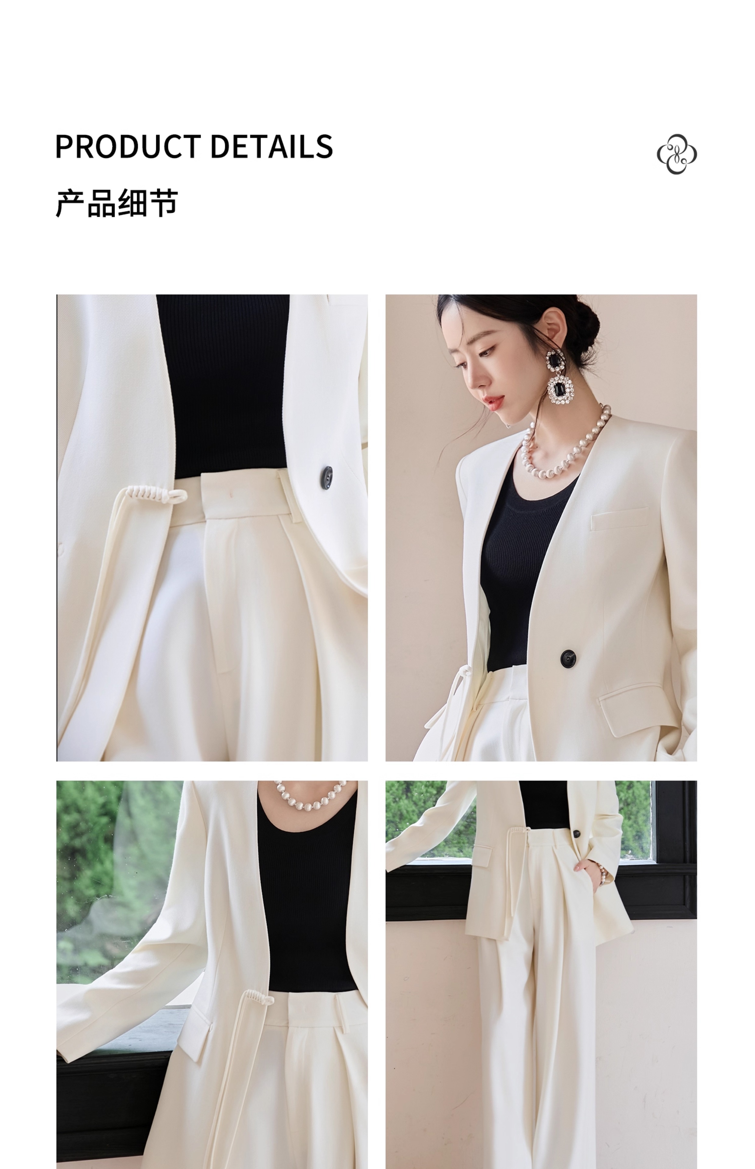 FUYAO扶摇 新中式盘扣西装套装女2025秋冬国风高级感阔腿裤两件套
