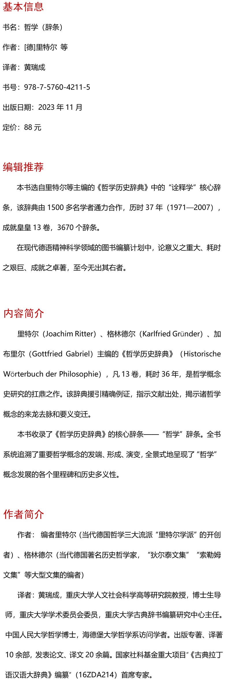 哲学 里特尔 六点辞条系列 哲学历史辞典