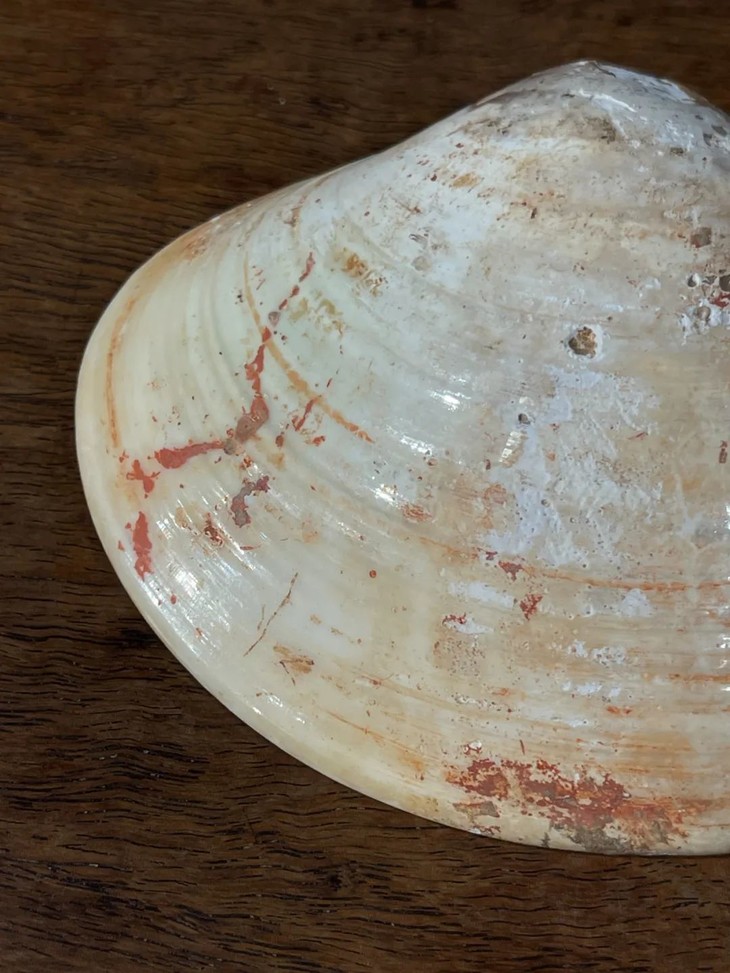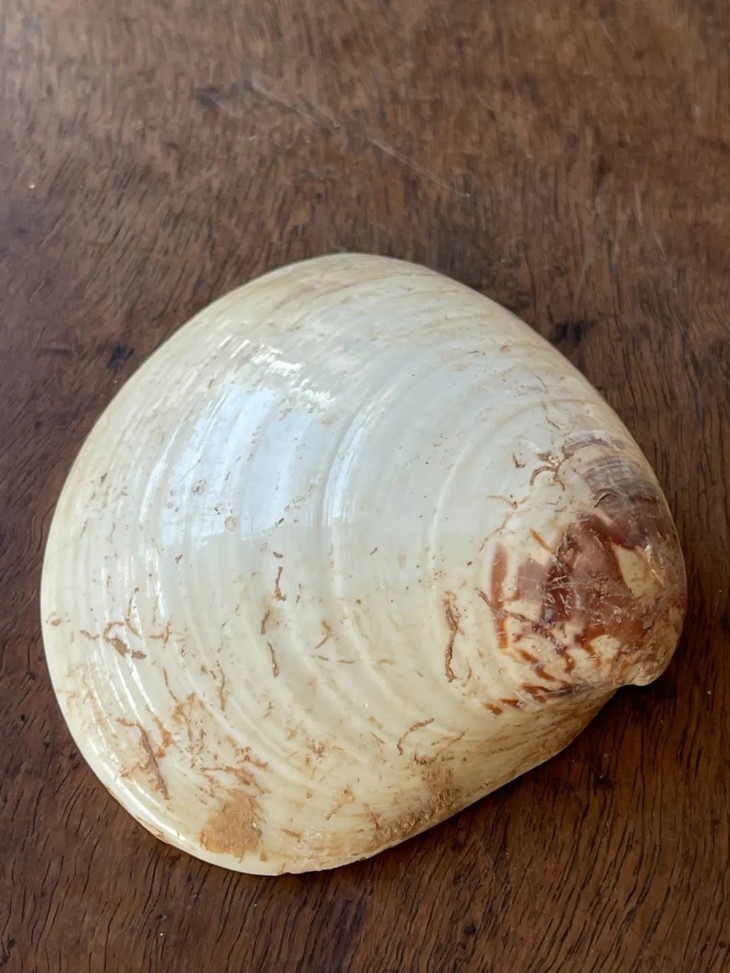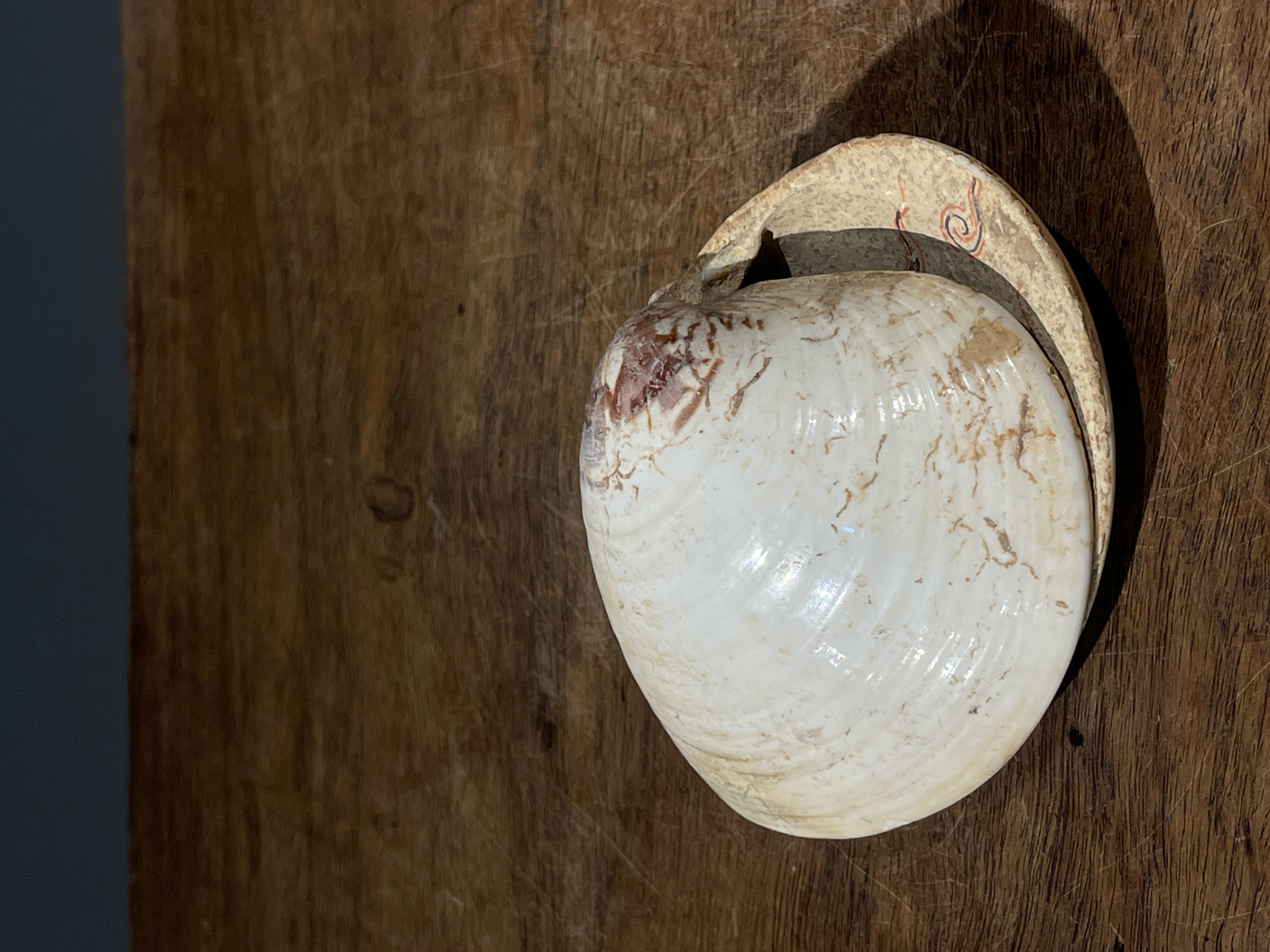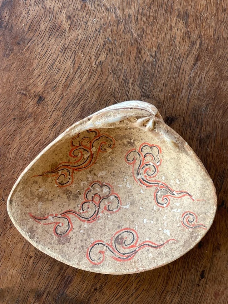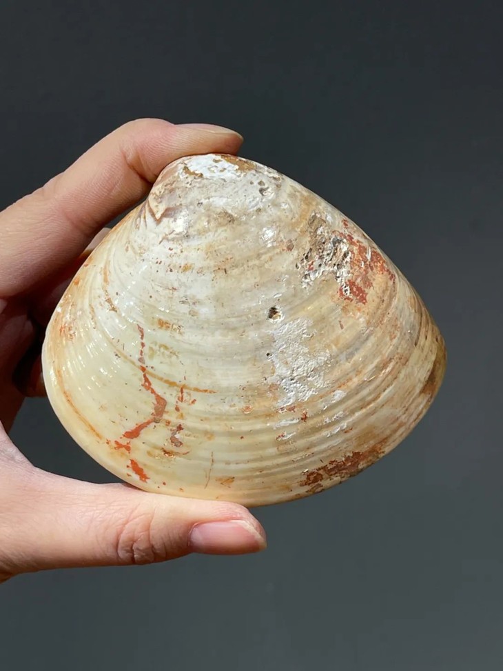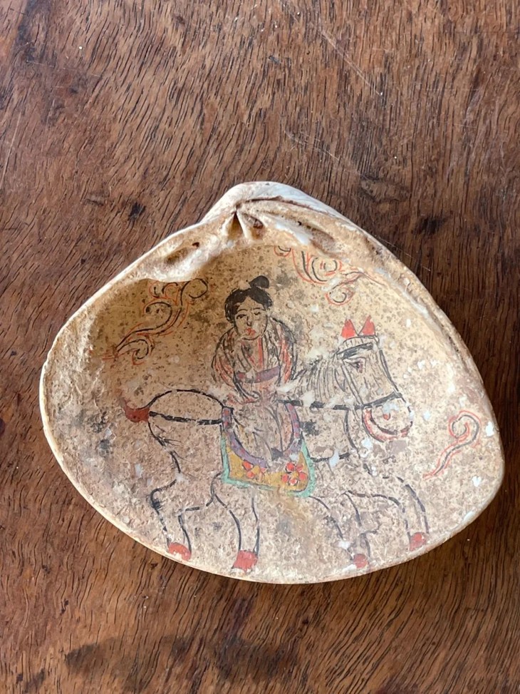这是一件以天然贝壳制作彩绘而成的古代吟诗作赋是文人之间交换赏玩的筹码,尺寸不小的蚌壳内部铺白粉上绘制骑马仕女与如意云纹,盖上是一个完整的天然贝壳,包浆皮壳温润浑厚,展开内部成为两幅古朴雅緻的古画。