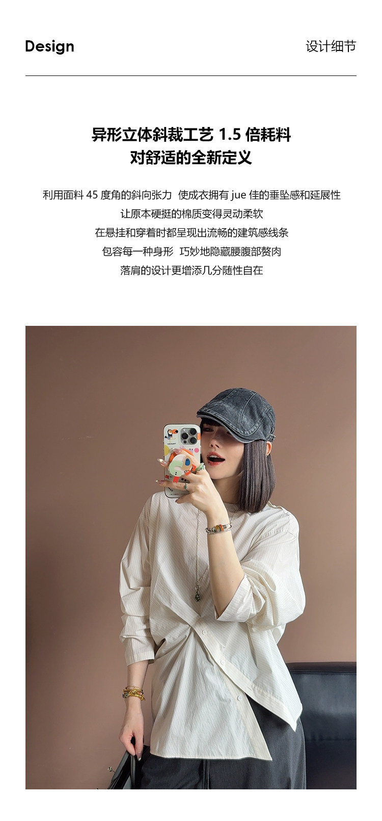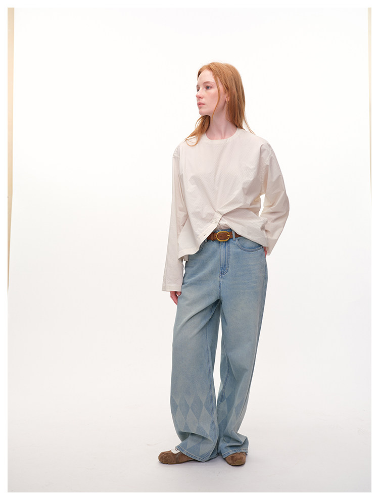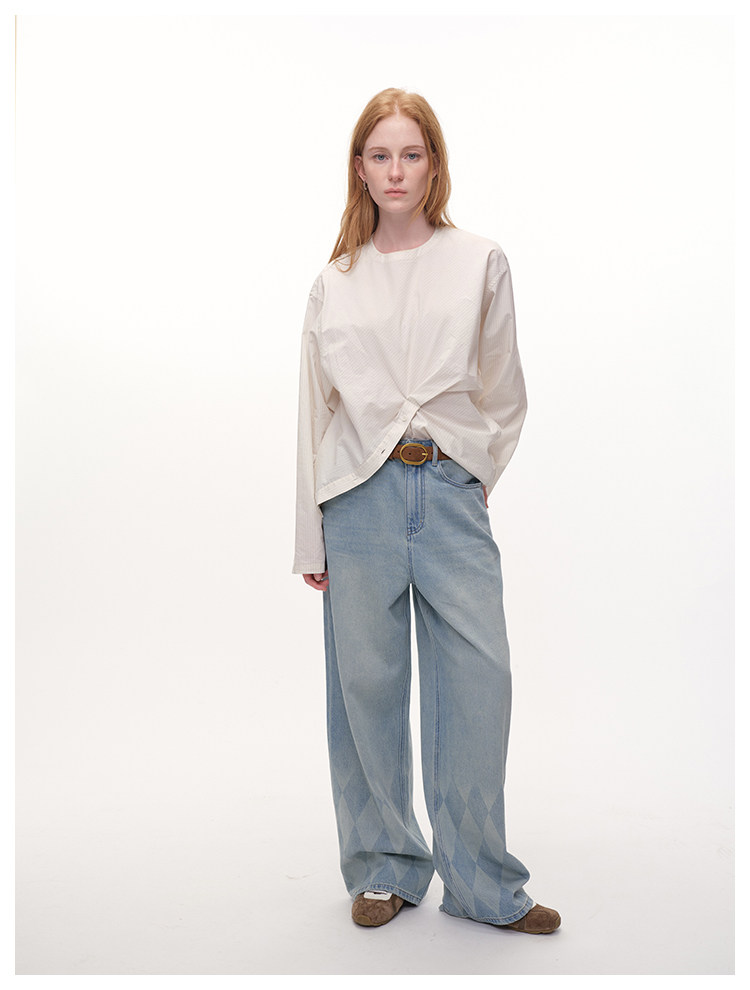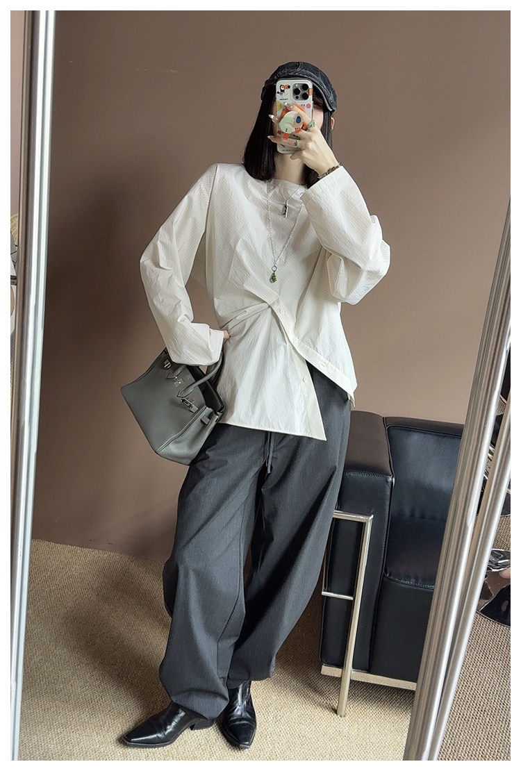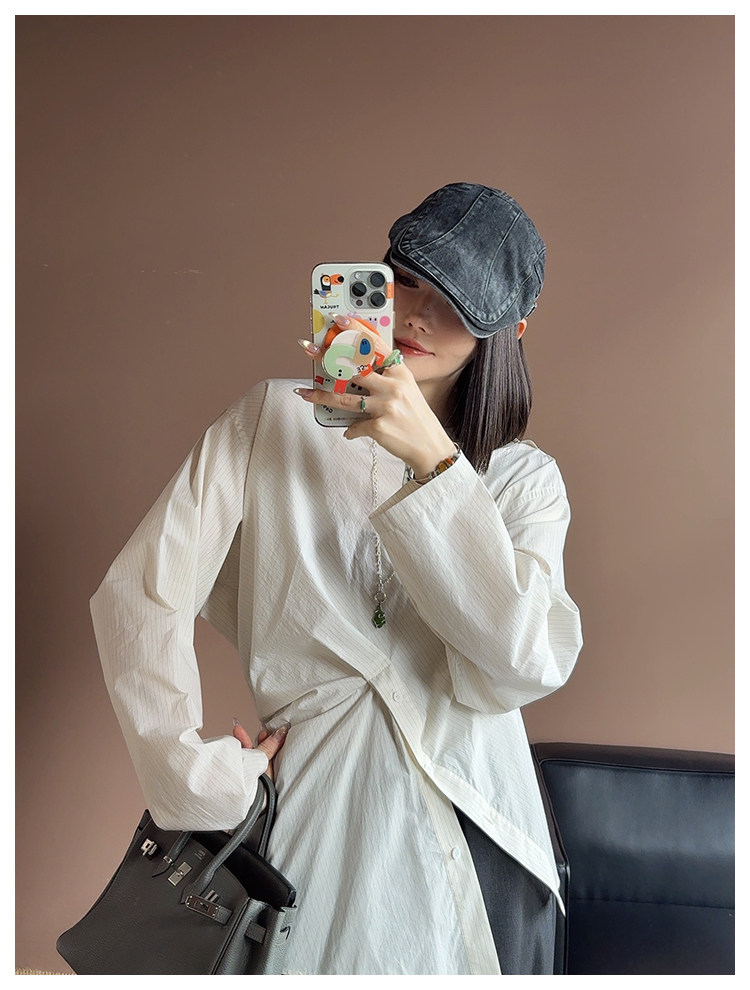 UMILAB|错位时空*原创异形立体斜裁 100%精梳棉捏褶圆领条纹衬衫H1330V