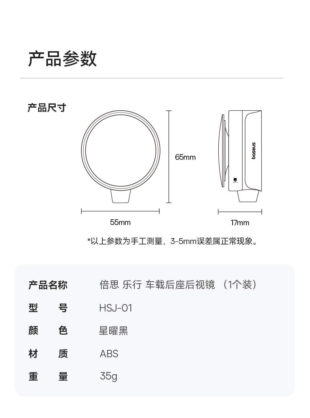 【十一专享】倍思 乐行 车载后座后视镜 (1个装)