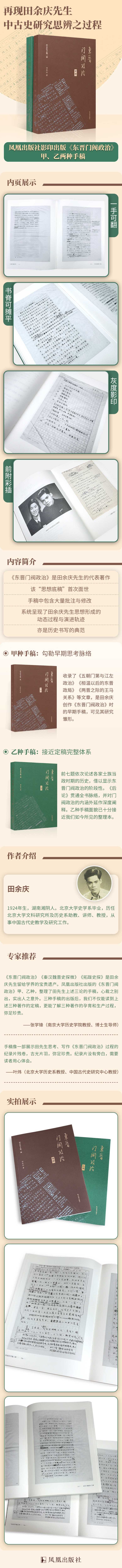 《东晋门阀政治 乙种》是著名历史学家田余庆先生撰写其代表作《东晋门阀政治》过程中形成的珍贵手稿,前七题依次论述各家士族当政时期的历史,借以显示东晋门阀政治的阶段 性。《后论》贯通全书脉络,并对门阀政治的内涵外延作深度阐释。乙种手稿面貌已十分接近我们如今所见的通行定本,其中仍有不少批注与篇章反复改写的痕迹,生动呈现了作者思 想形成与论述锤炼的动态过程,清晰展现了这部经典学术著作从初步构思、反复推敲到最终成型的完整演进脉络,具有极高的文献与学术史价值,为相关领域的研究者与广大史学爱好 者提供了不可或缺的第一手文献。本书由凤凰出版社影印出版,是《田余庆手稿三种》之一。