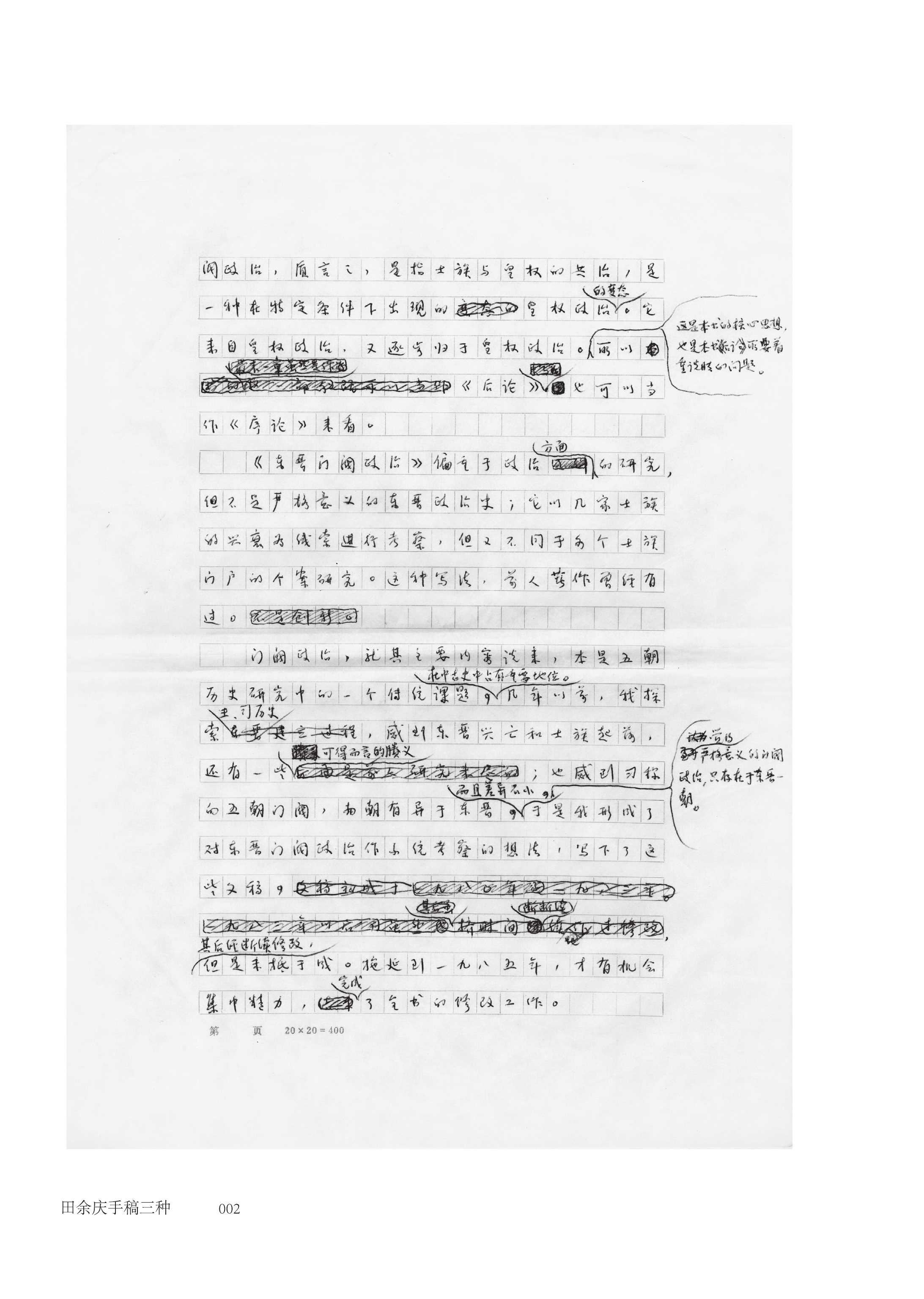 田余庆(1924_2014),湖南湘阴人,先后肄业于湘雅医学院和西南联合大学,1950年从北京大学史学系毕业。历任北京大学文科研究所助教,历史系助教、讲师和教授,早年承担中国近代史和民国史的研究,与金毓黻合编《太平天国史料》,1952年后转而从事中国古代史的教学与研究,专攻秦汉魏晋南北朝史,参与编著翦伯赞主编的《中国史纲要》,担负秦汉与魏晋南北朝两个部分的写作。田余庆的重要论著都写于改革开放以后,从1979年(54岁)发表《释;王与马共天下》,到1989年(64岁)出版《东晋门阀政治》,十年间佳作迭出,洛阳纸贵,深刻影响了;文革后成长起来的中古史研究者,有力推动了中古史学科的发展。1993年,他出版论文集《秦汉魏晋史探微》,收入历年所写有关秦汉三国史的重要论文(如《说;张楚》《论轮台诏》《汉魏之际的青徐豪霸》《李严兴废与诸葛用人》《孙吴建国的道路》等)。此后他转入北魏早期史研究,虽身体欠佳,仍持续产出,并在年将八十之时出版《拓跋史探》。田余庆的作品虽数量不多,但都是精品,严谨与独创俱臻极致,足为后学楷模。他的研究审慎精微,视野开阔,考证与辨析既锐利又深刻,一方面强调传统考据与科学分析的细致结合,另一方面注重揭示纷纭史实的内在联系及其历史意义。他的论著无不是在翔实考证的基础上,以小见大,把握史料、时代与事件的关键,提出独到的史学见解,勾勒一代政治变迁的重大线索。他的文章不应景、不急就,篇篇精粹可读,为学界所公认。正如《秦汉魏晋史探微》前言所说,他;宁恨无悔,宁可少写,也绝不率易成文而致悔。他不仅在研究上苦心孤诣,在写作上亦千锤百炼,文字精炼醇厚,被誉为;白话学术文体的典范,可谓一骑绝尘,在当代人文学者中最为突出。读田余庆的书和论文,会惊叹于他全神贯注的思考和激流奔涌的写作,仿佛一呵而成。但是读他的手稿,会看到每一段、每一句都有改动。从初稿到付样前的校样,无不反复修改,改动的版本之多,幅度之大,令编辑也为之蹙眉。即便书出版之后,他仍逐页、逐段修订。正是因这永不停止的打磨修订,使得田余庆著作的每一版,都呈现相当程度的文字差异。直到2014年12月25日去世前,他还在修改《拓跋史探》。作为学者的他,兢兢业业,一丝不苟,这种纯粹体现于诸多方面,其中最明显的一点就是他对作品无止境的修订,保存至今的手稿即为明证。本丛书收录田余庆《东晋门阀政治》《秦汉魏晋史探微》和《拓跋史探》三书的手稿,有两点需要交待:第一,手稿并不完整,有些章节不全,存在缺页或较多遗失;第二,章节内容存在重复,同一章节的多次修改都得以保存。鉴于手稿的保存状况,本次出版不求篇幅完整,也不避重复,只为显示田余庆著作形成过程中的某个阶段,便于读者比较田余庆是如何修订和打磨自己作品的。遗憾的是,手稿反映的是田余庆著作在进入出版社之前的基本面貌,无法反映他在校样上,以及随后在书页上反复多次的修改情况。西谚有谓,写作就是重新写作(Writing is Rewriting)。田余庆的写作的确就是一而再、再而三的重新写作。作为一位颇具代表性的当代历史学家,田余庆的手稿本身就是研究和写作的示范,兼具史料、美学和文物的多重价值。我们不辞繁难,将其整理出版,希望有助于当代读者的学习和鉴赏。