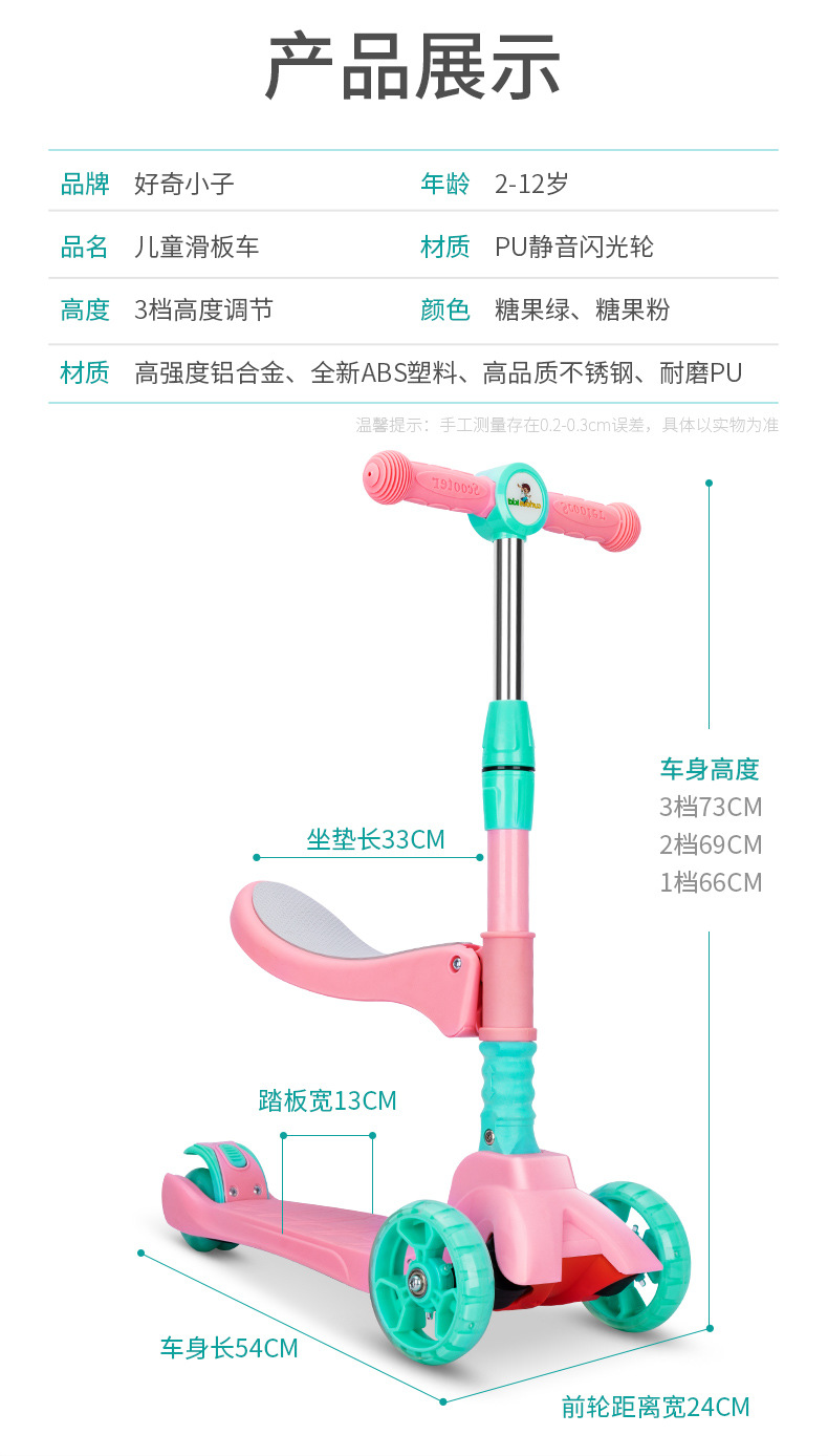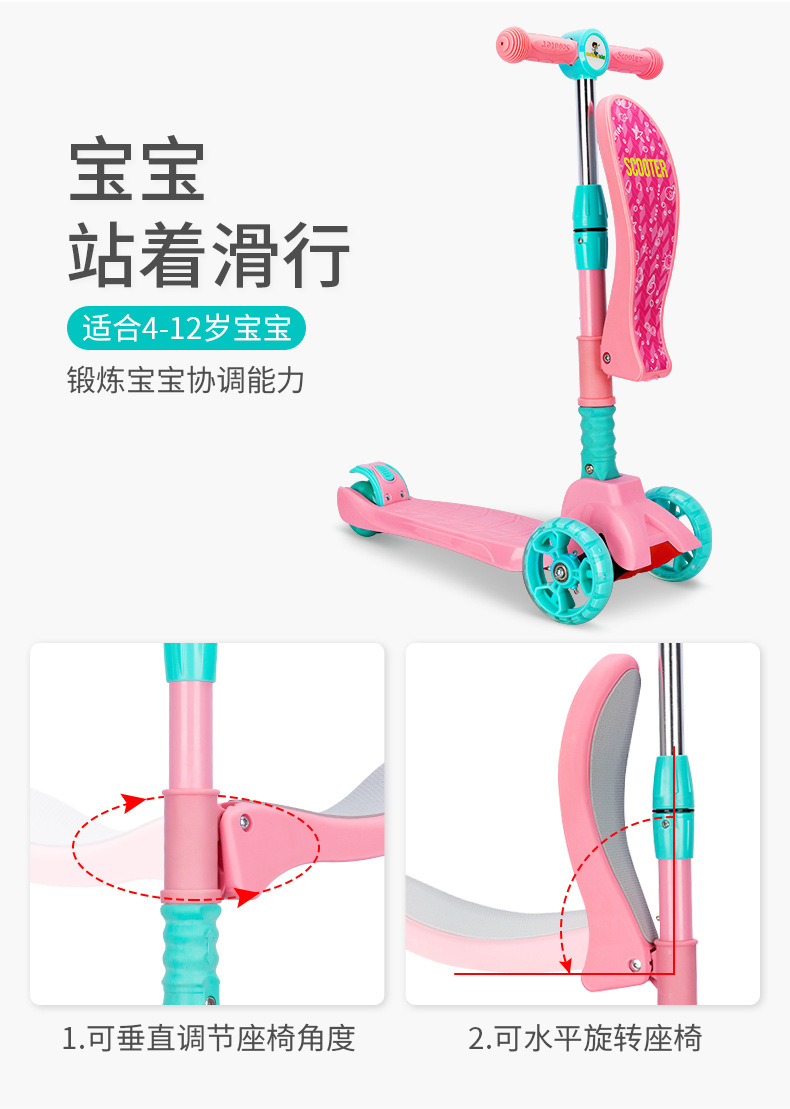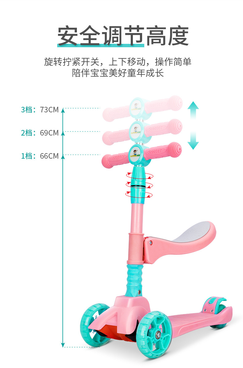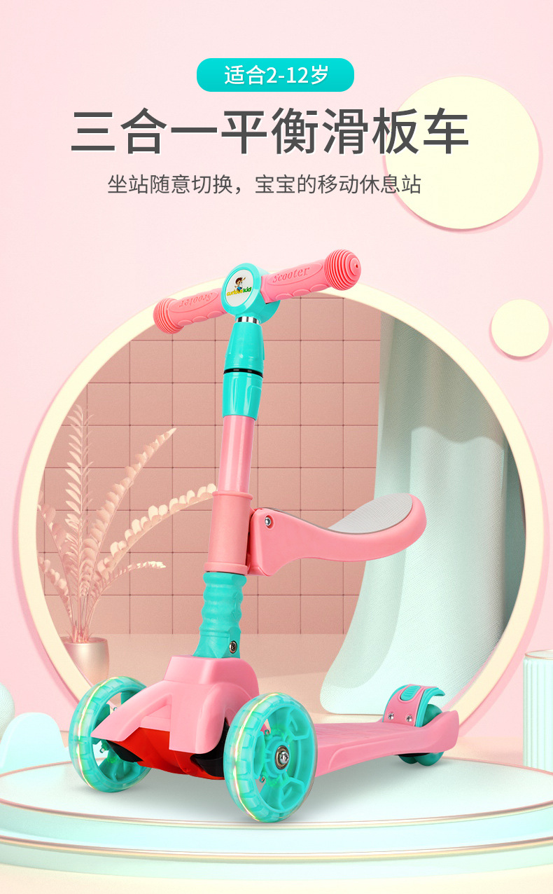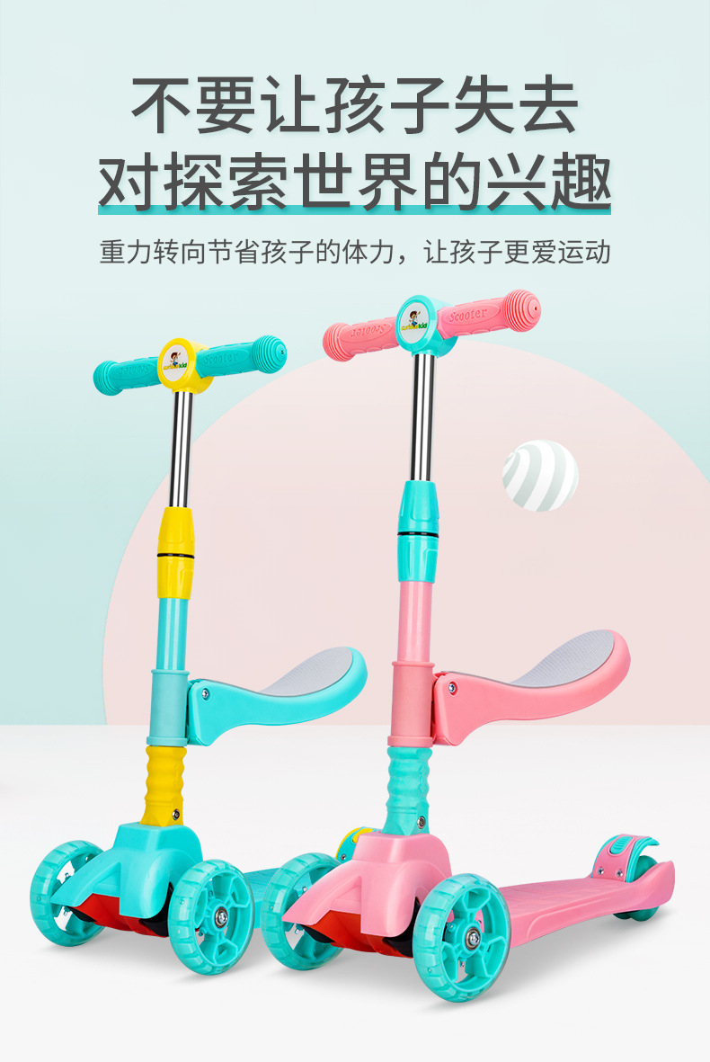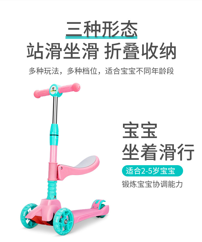 【坐站随意切换 宝宝的移动休息站】三合一滑板车儿童踏板溜溜车闪光轮三轮踏板车scooter