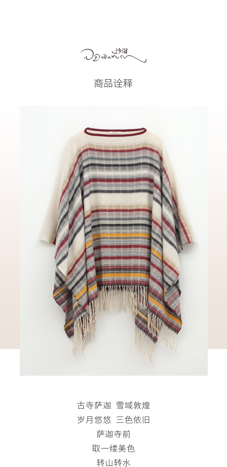 西藏萨迦手工氆氇羊绒斗篷SJF96P762N