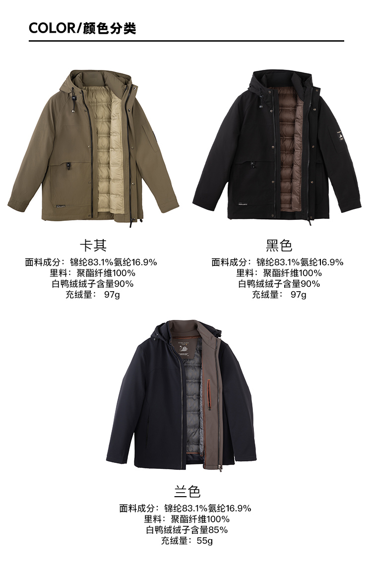 【可脱卸羽绒服】占姆士男士加厚2025新品可脱卸90白鸭绒内胆冬季羽绒服外套