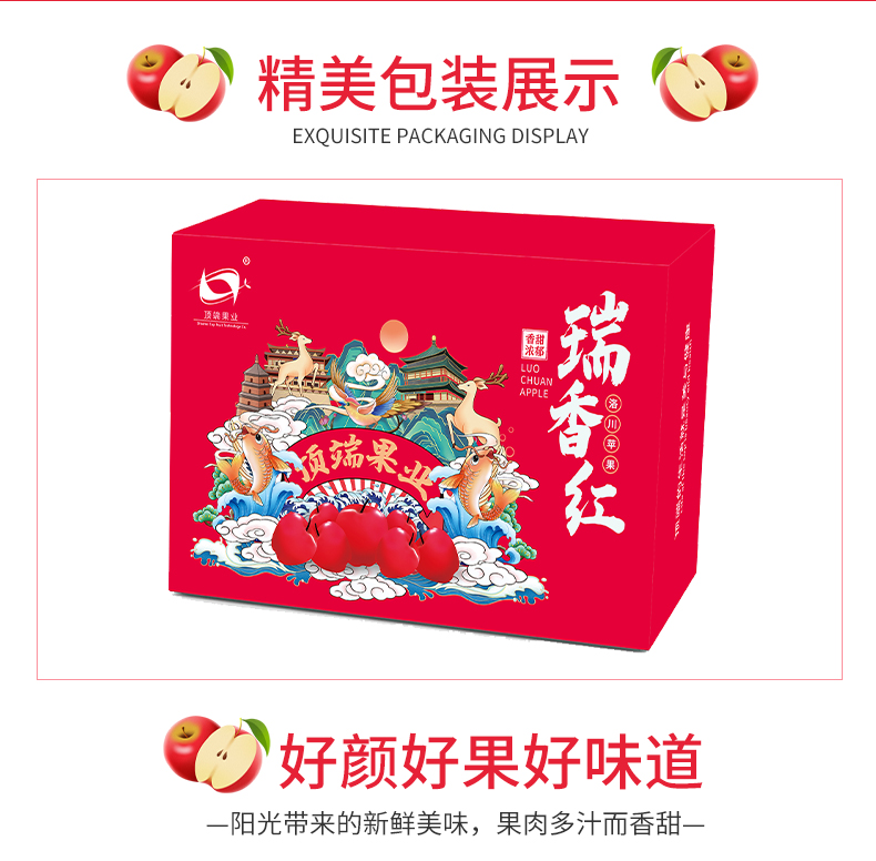 【顶端优选】陕西顶端果业洛川红富士苹果礼盒10枚80mm 中大果新鲜水果手提礼盒