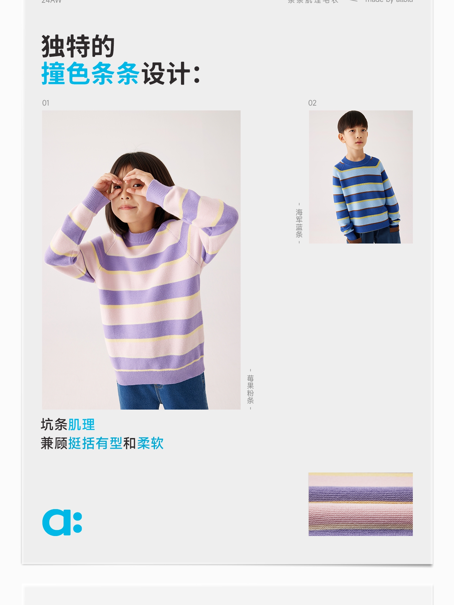 【秋Vol.1】幼岚童装「条条肌理」毛衣柔软舒适精梳棉毛衣24秋季新款儿童毛衣ZY