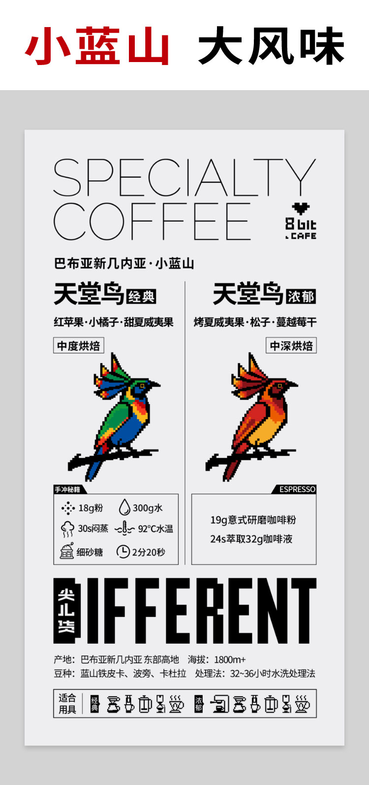 捌比特巴布亚新几内亚小蓝山天堂鸟 浓郁PNG水洗手冲精品咖啡豆250g