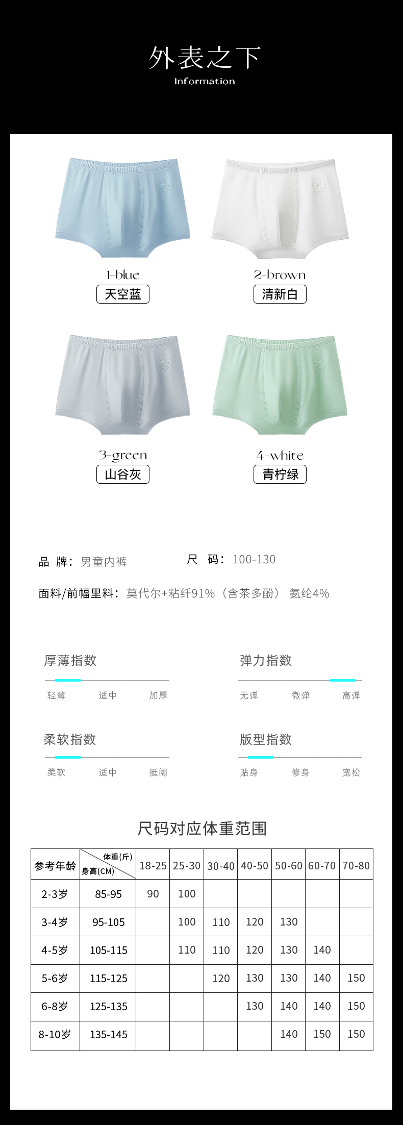 N3-【4条装】【男童 A类 开袋即穿】茶肌面料抑菌莫代尔舒适透气 男童内裤【青春系列】