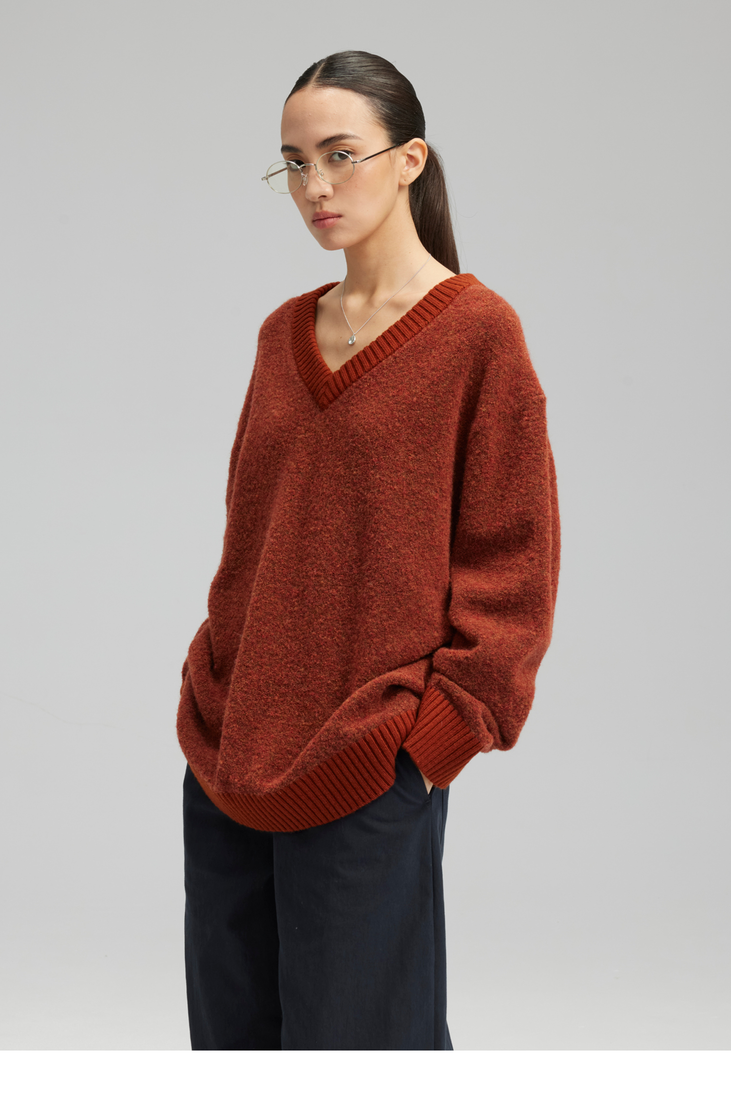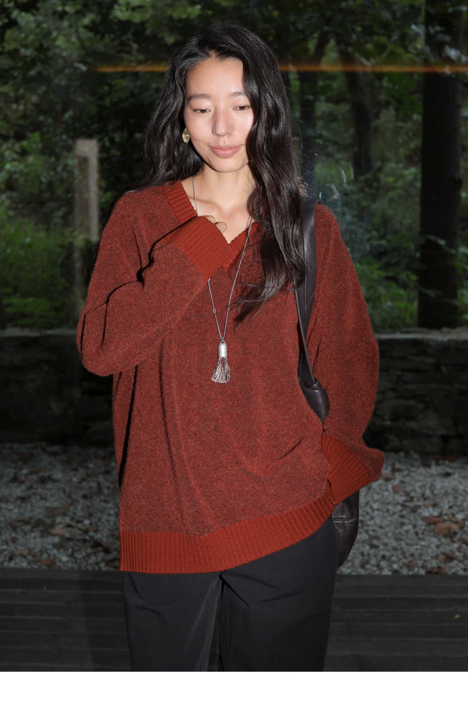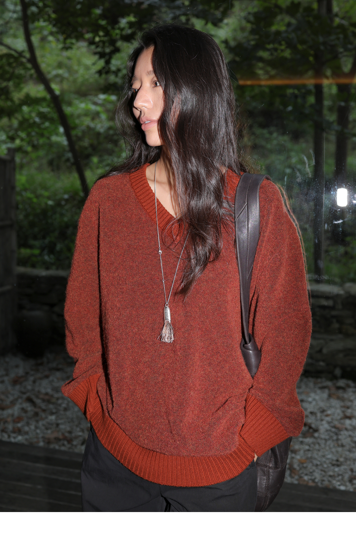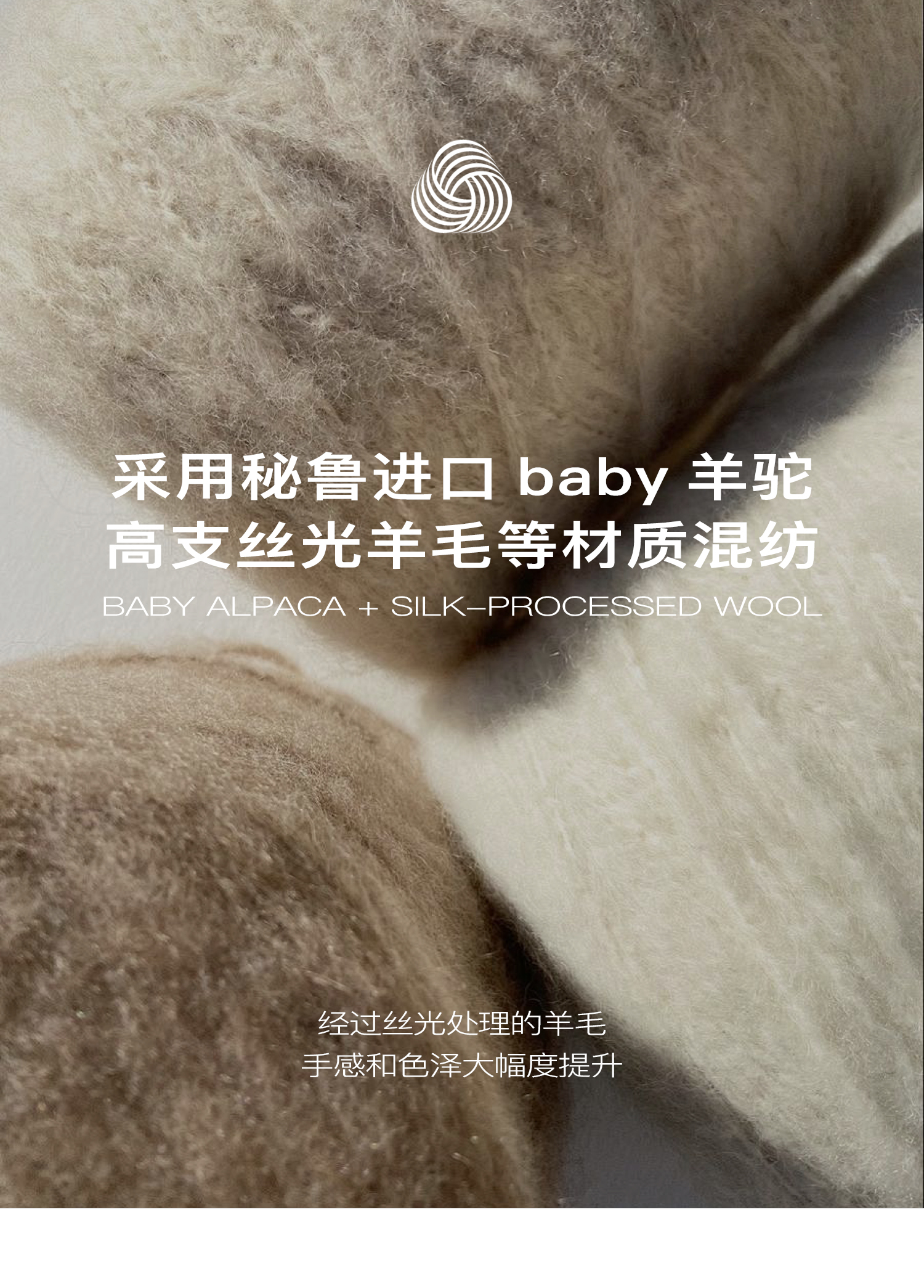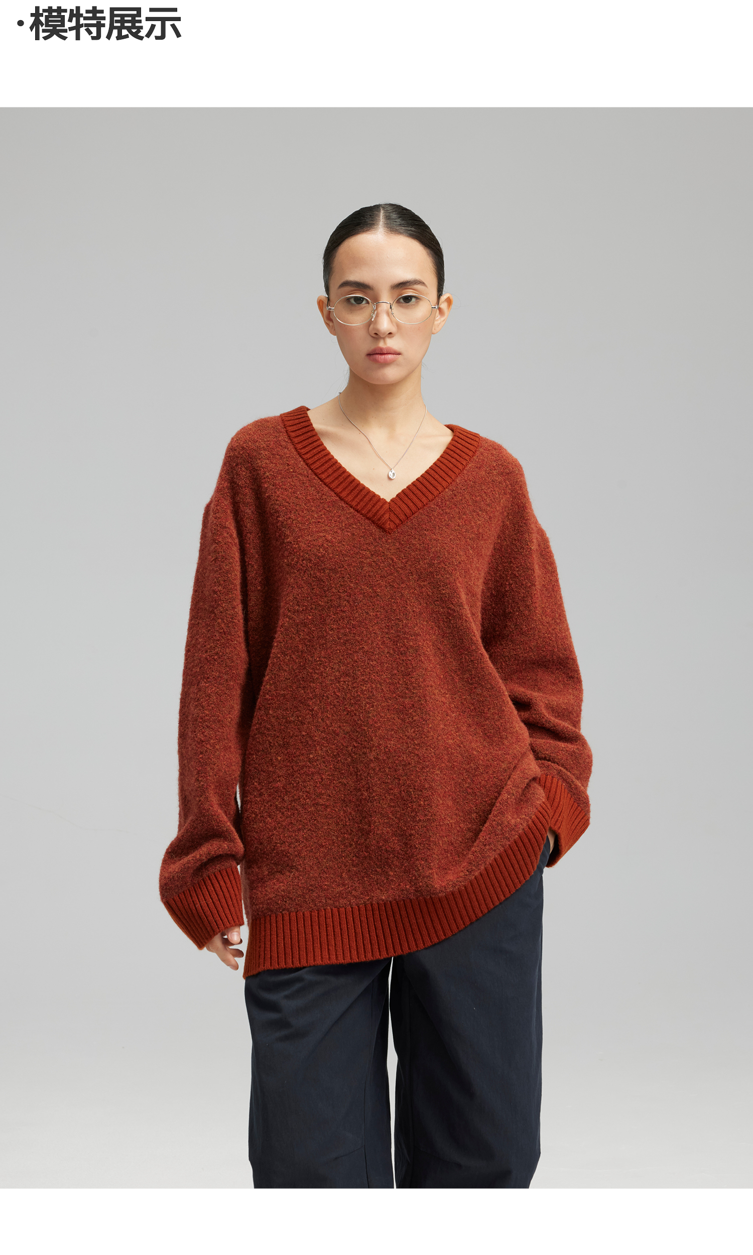 素舶 进口秘鲁羊驼毛圈圈纱V领拼接松弛感宽松针织套衫毛衣