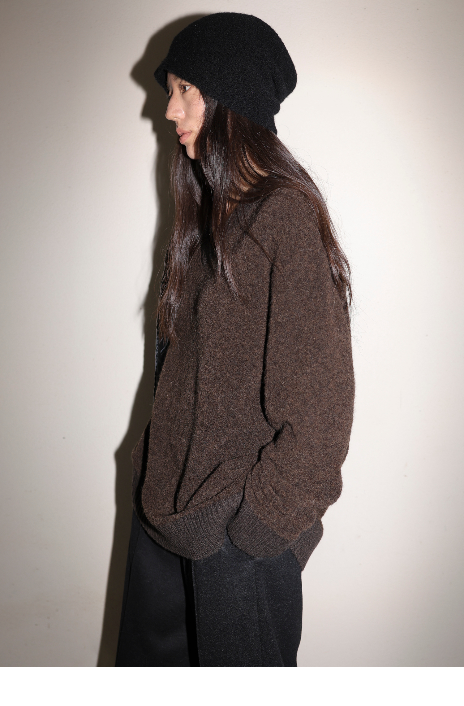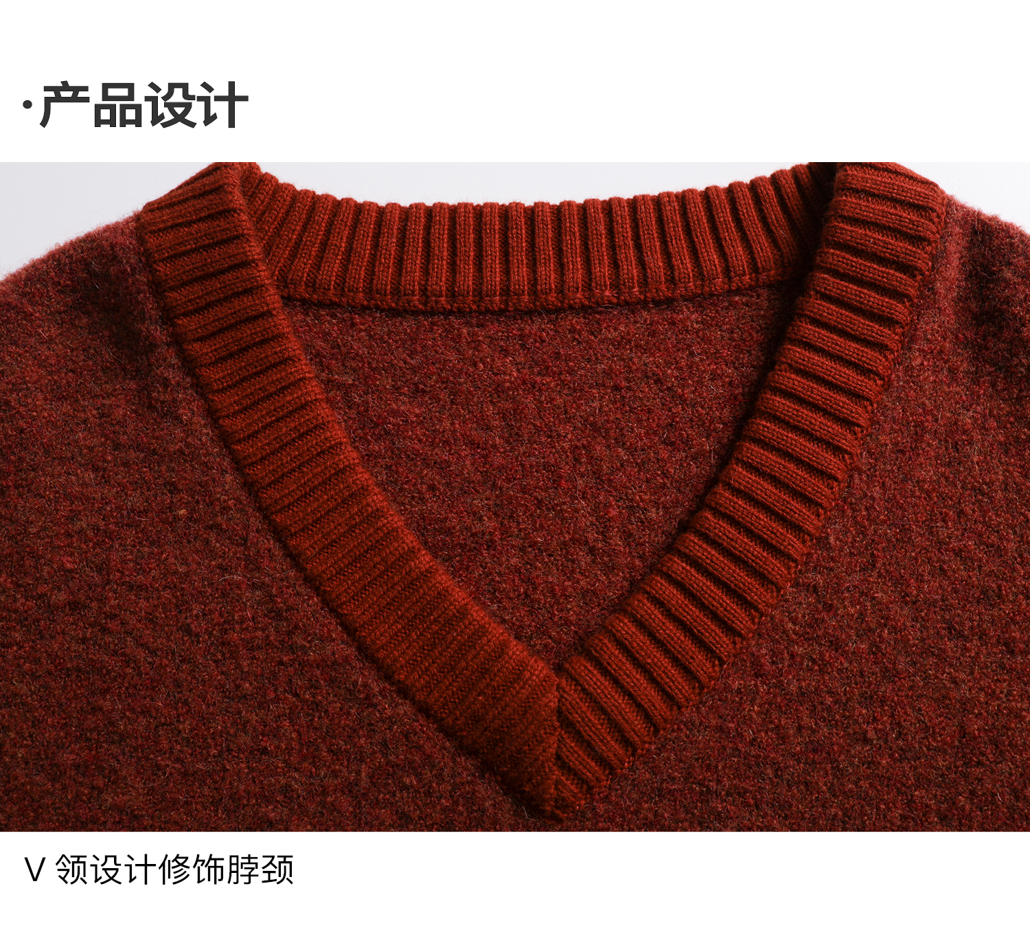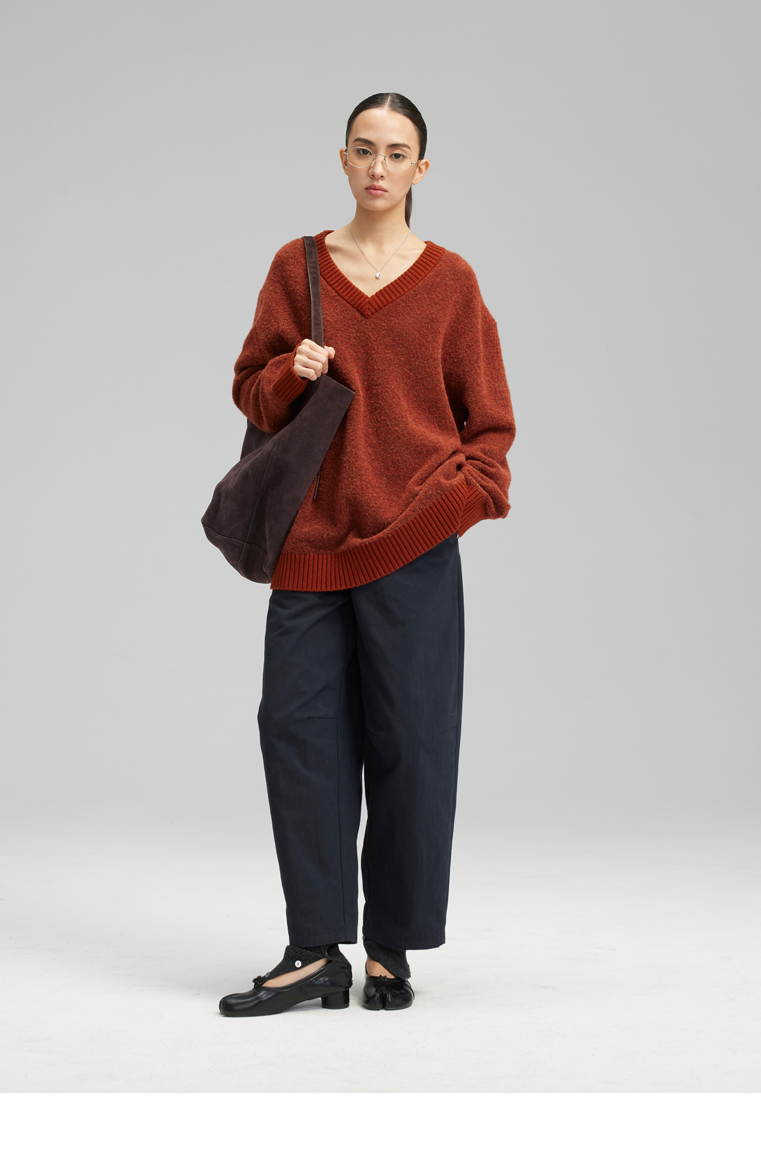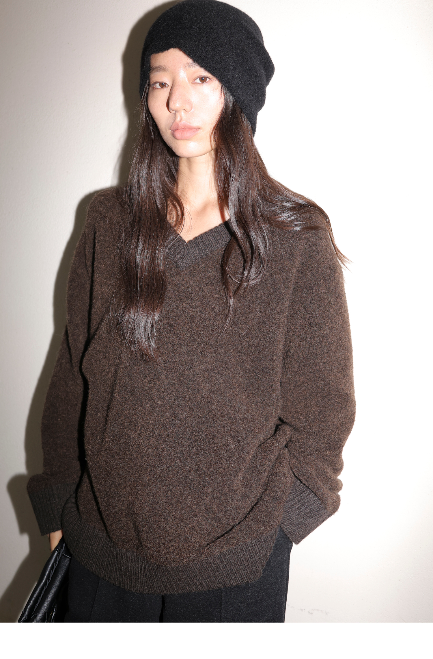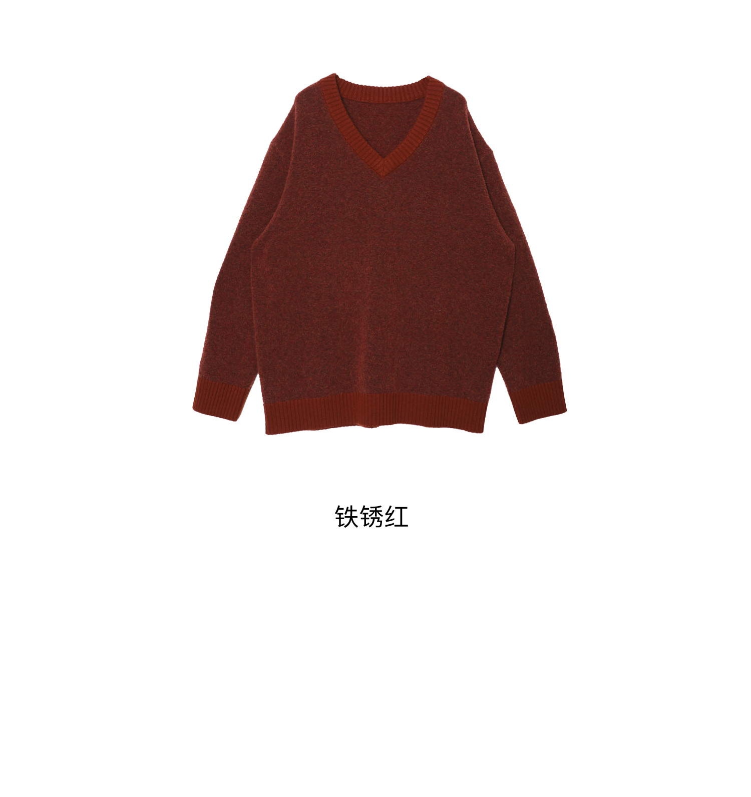素舶 进口秘鲁羊驼毛圈圈纱V领拼接松弛感宽松针织套衫毛衣