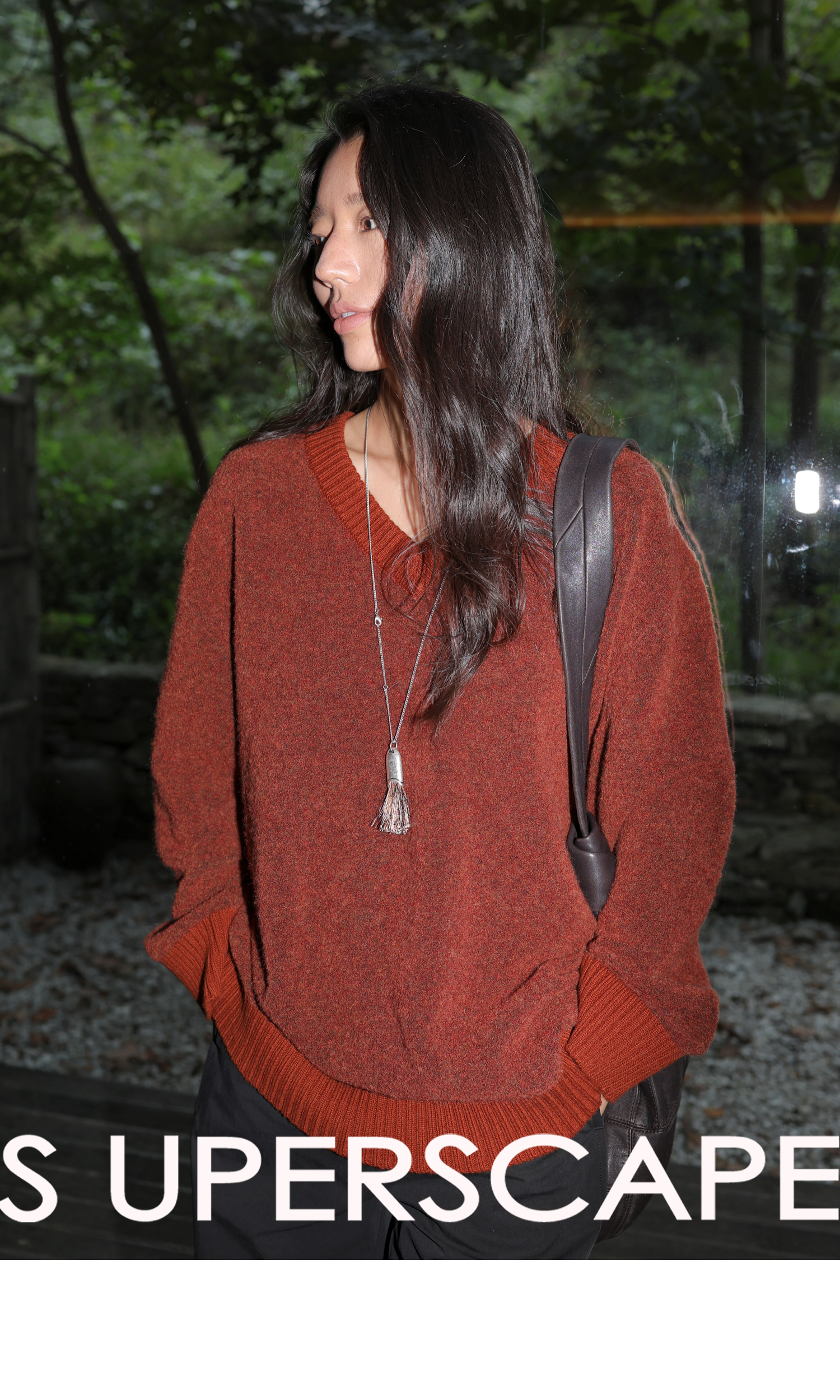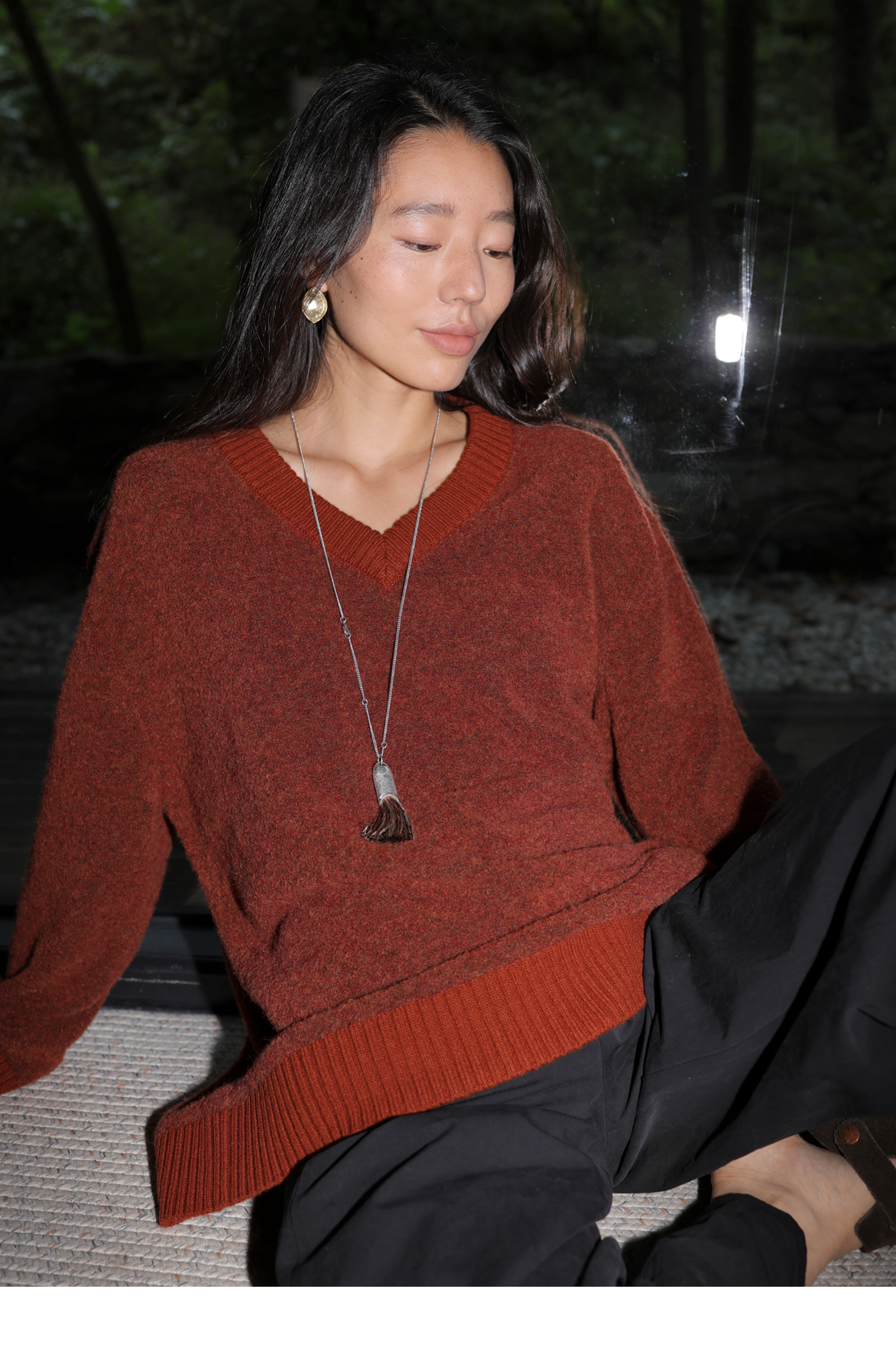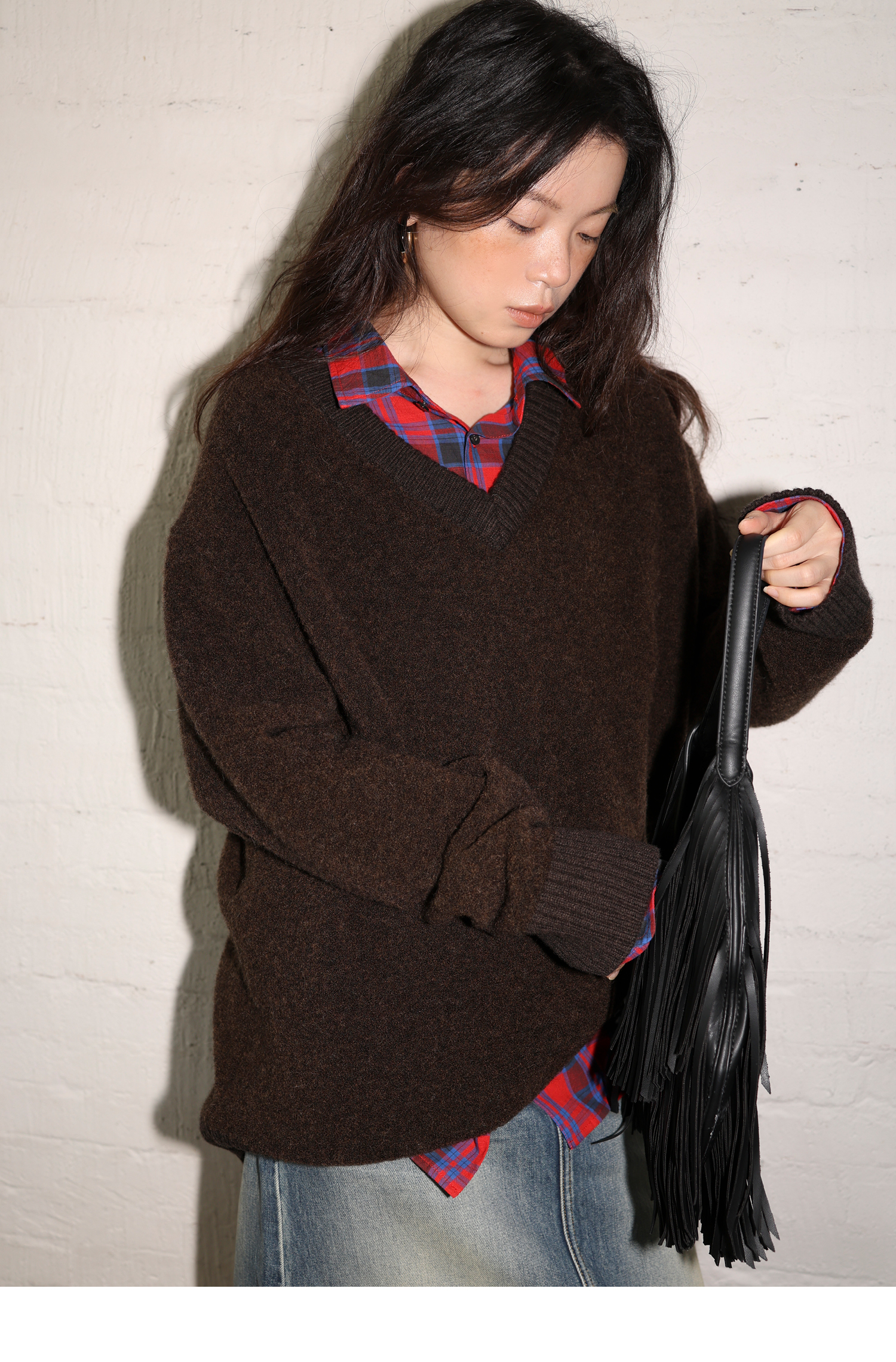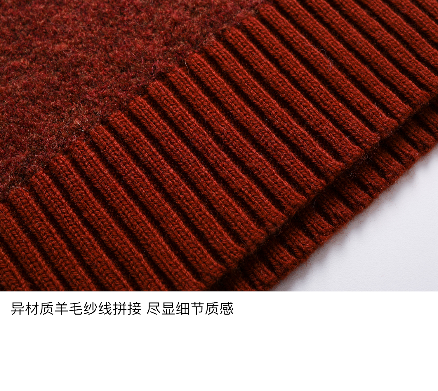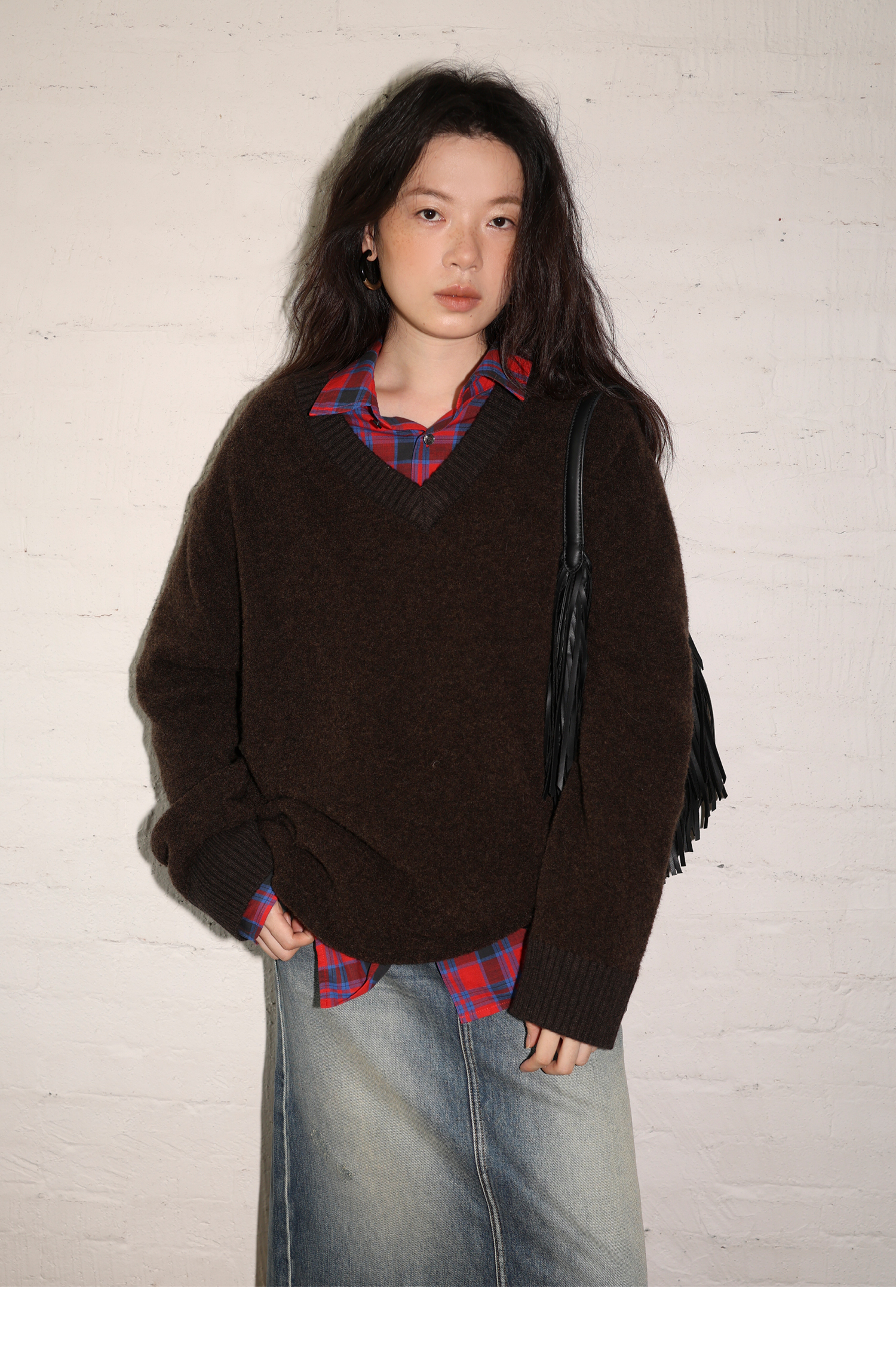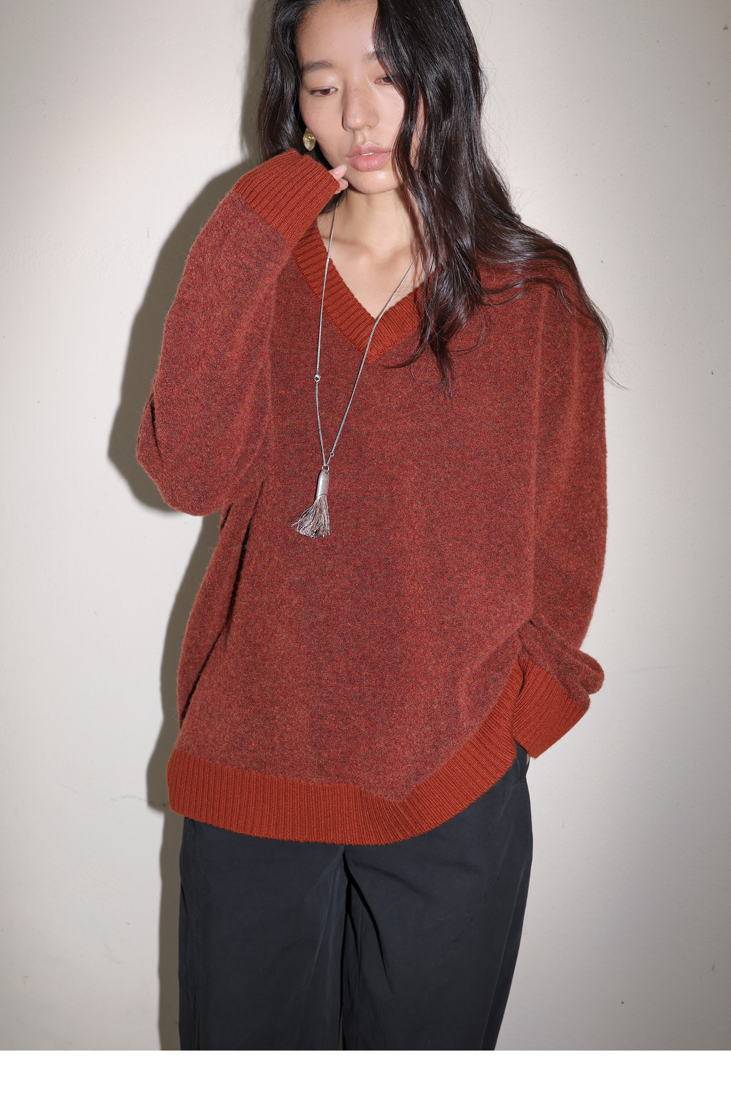 素舶 进口秘鲁羊驼毛圈圈纱V领拼接松弛感宽松针织套衫毛衣