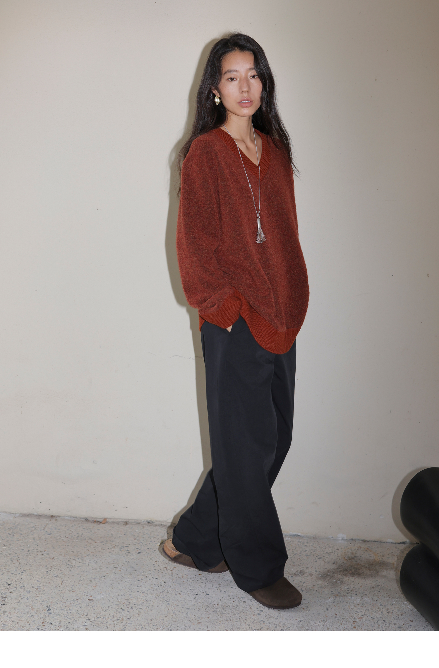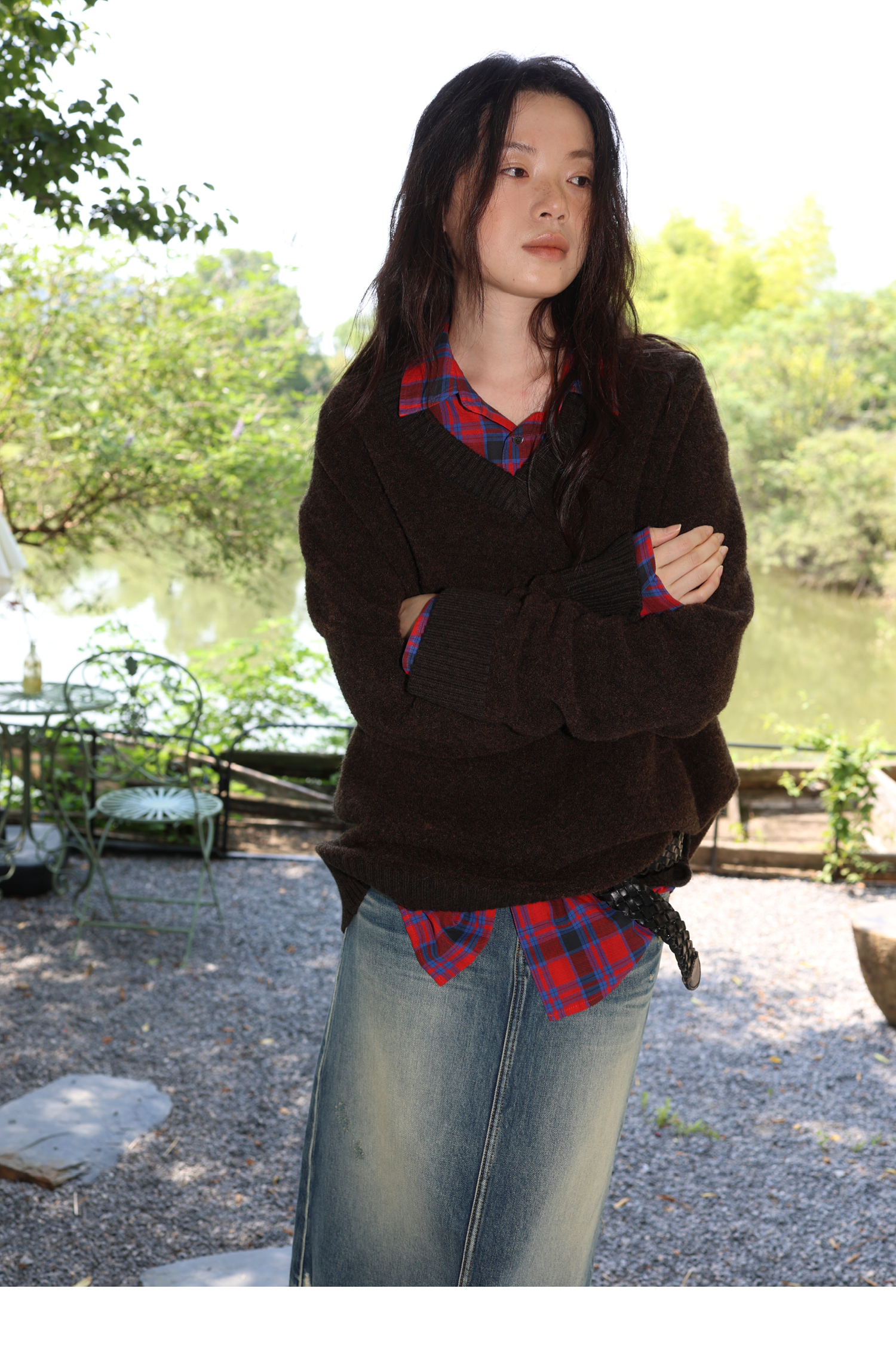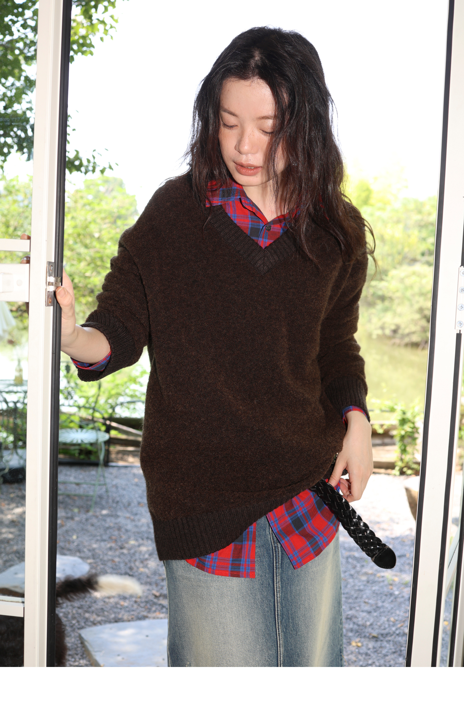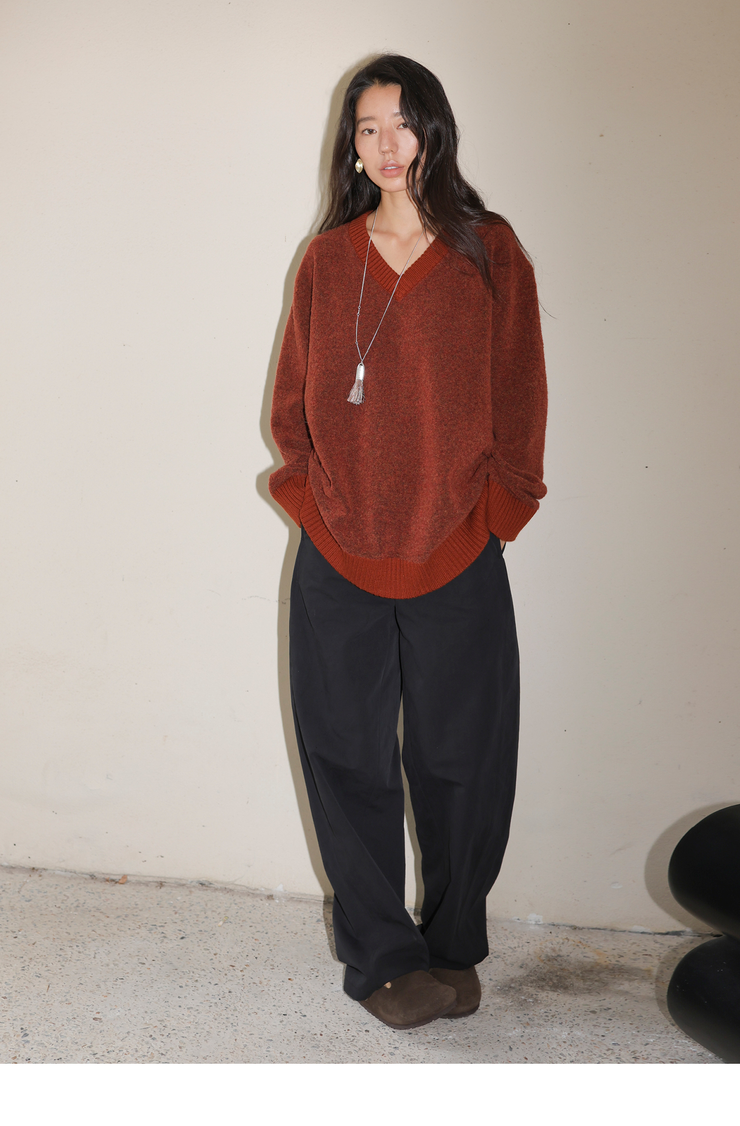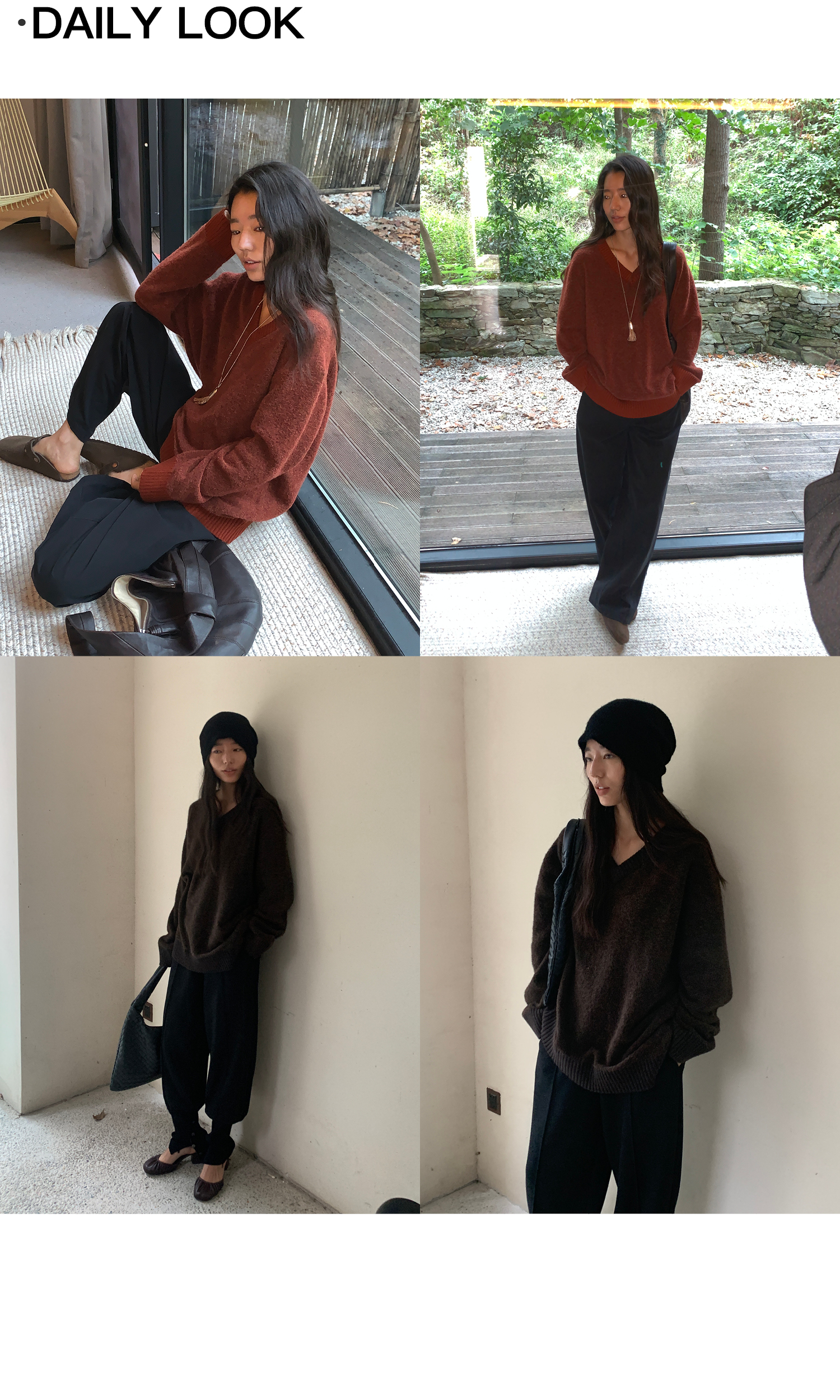 素舶 进口秘鲁羊驼毛圈圈纱V领拼接松弛感宽松针织套衫毛衣