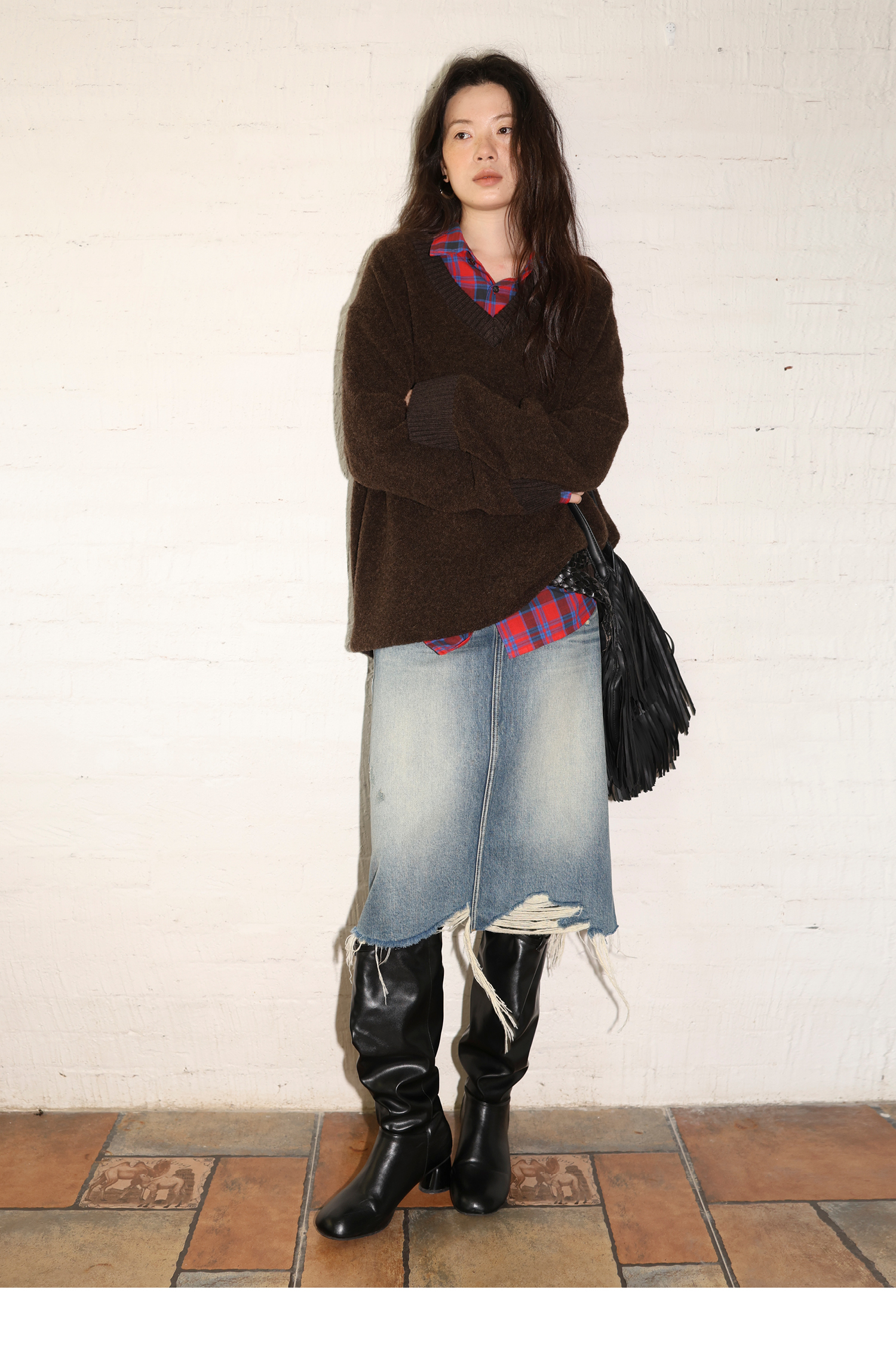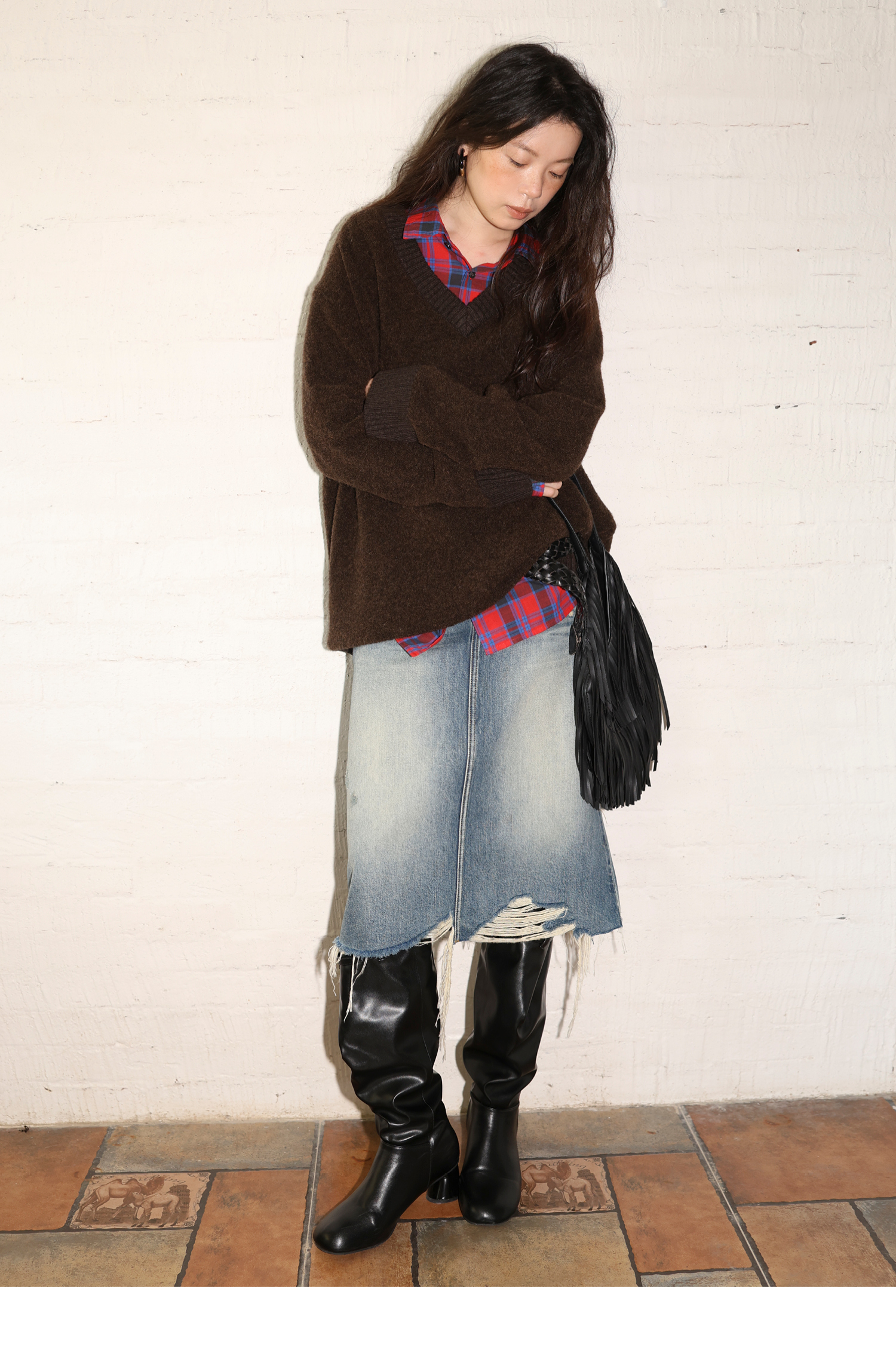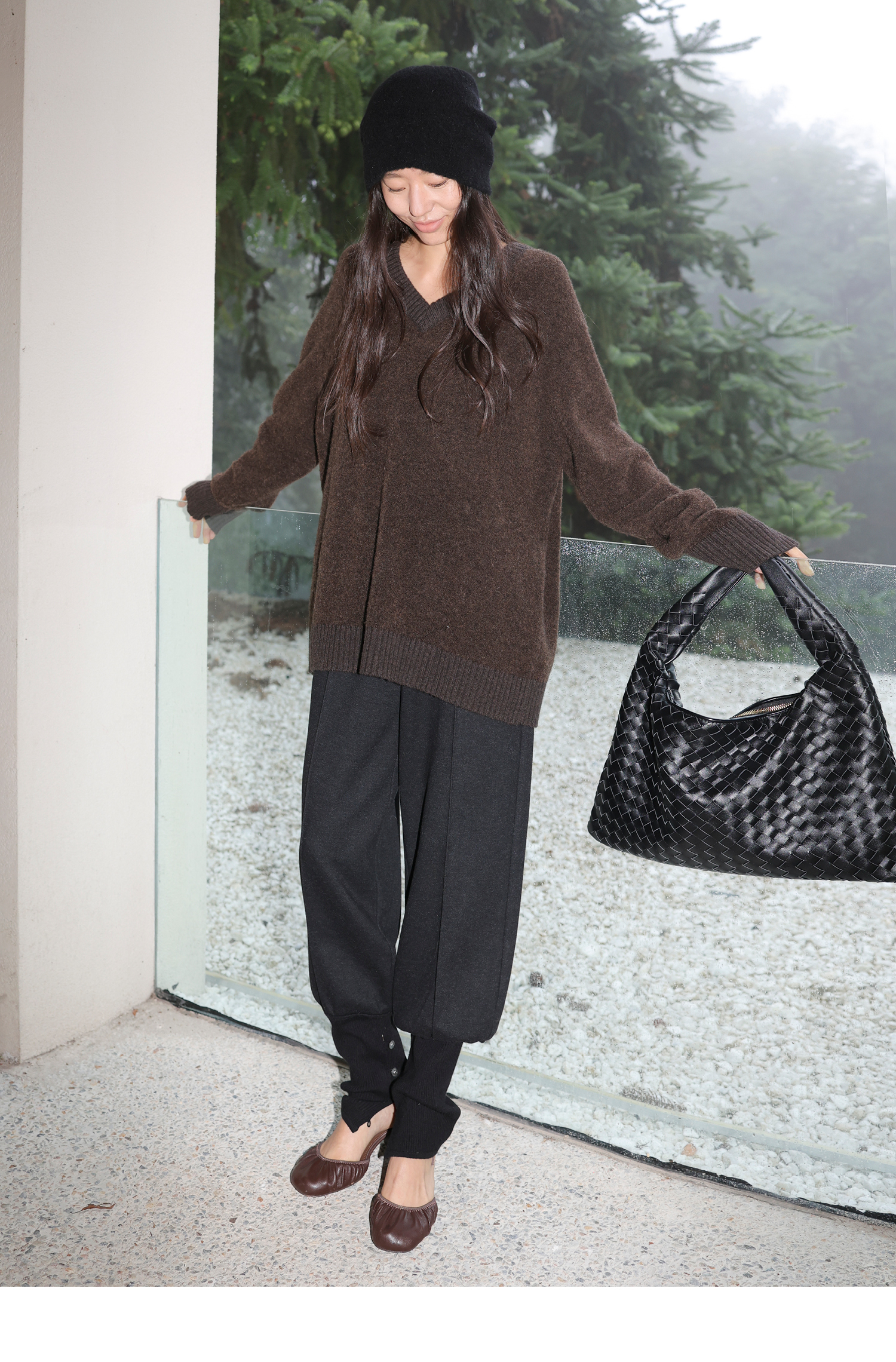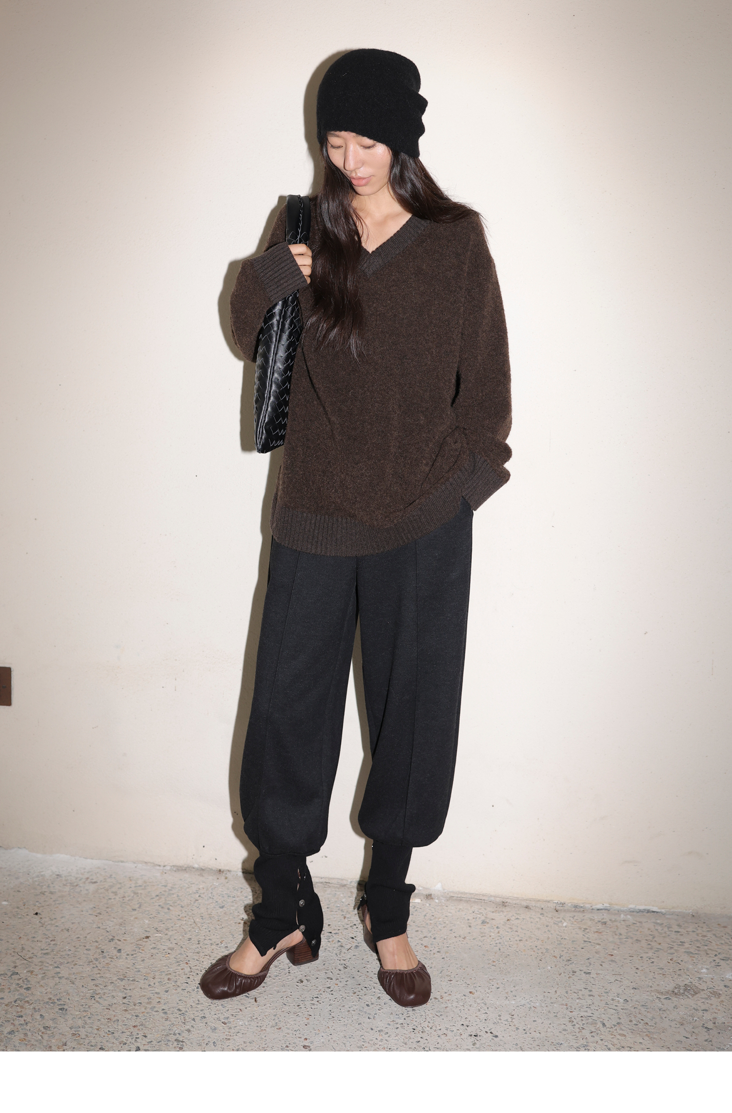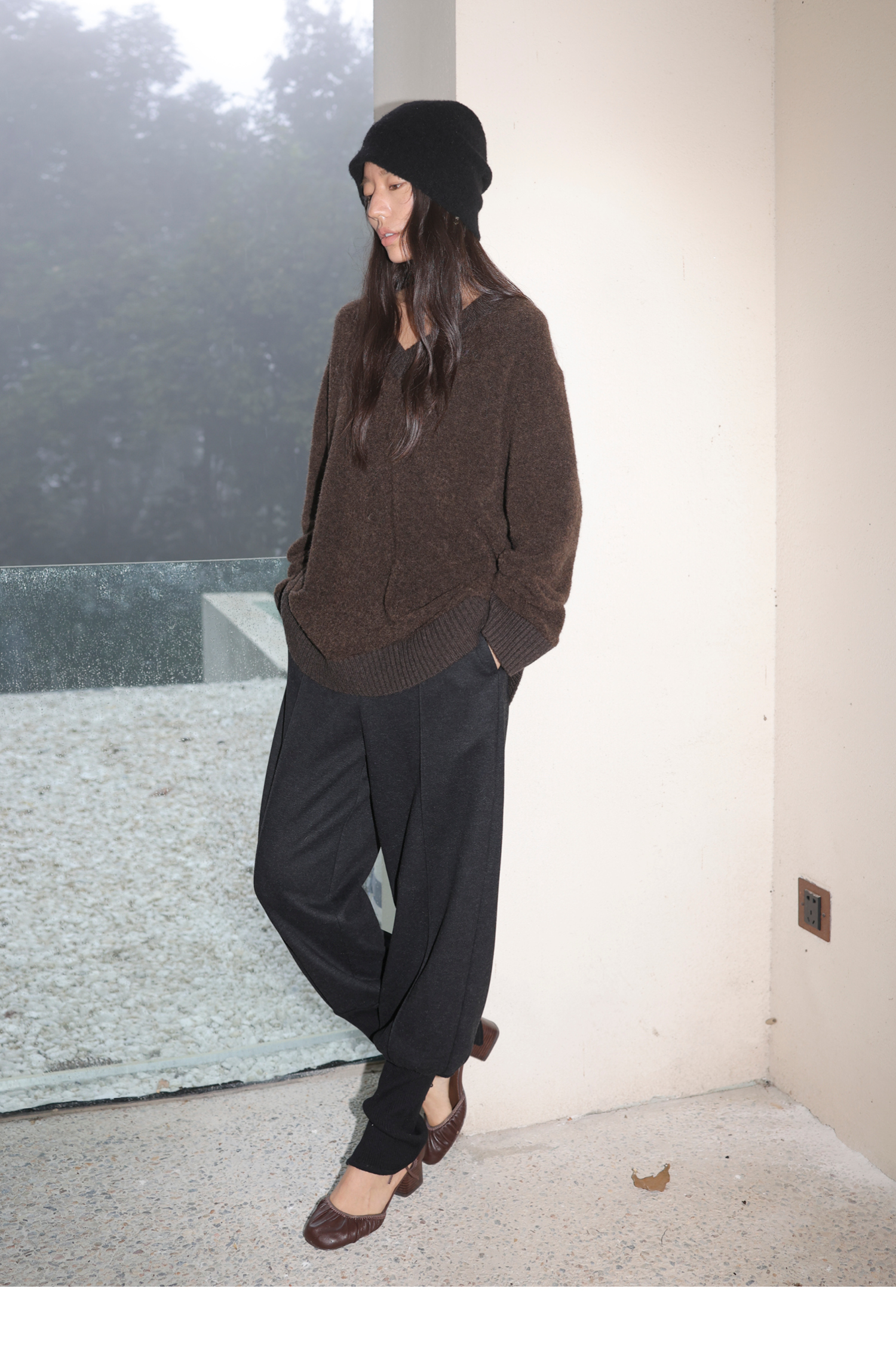 素舶 进口秘鲁羊驼毛圈圈纱V领拼接松弛感宽松针织套衫毛衣