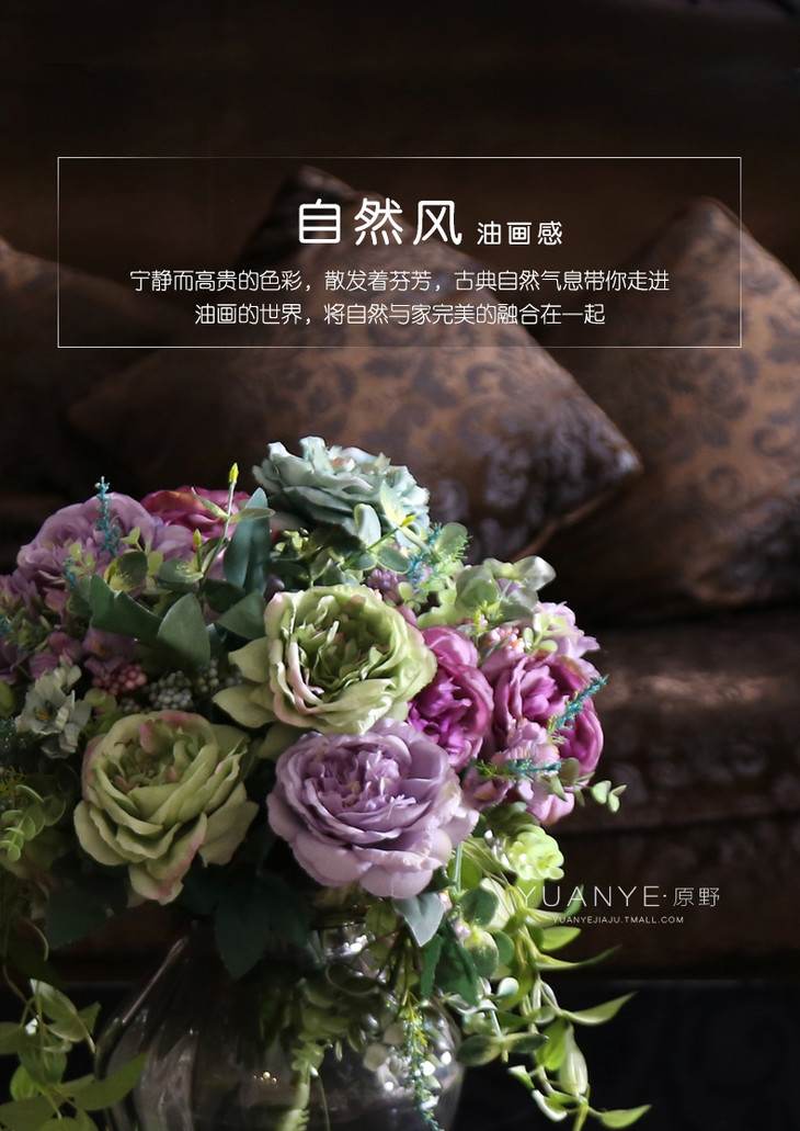 原野自然风油画感 仿真花假花套装 客厅酒店卧室装饰花瓶摆件