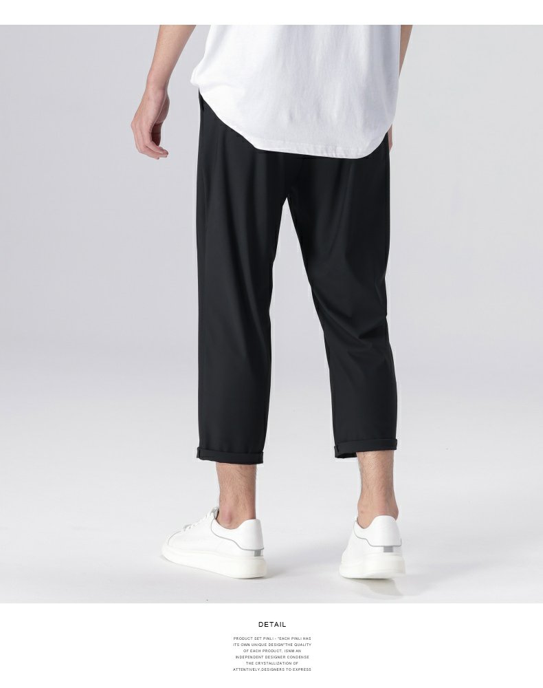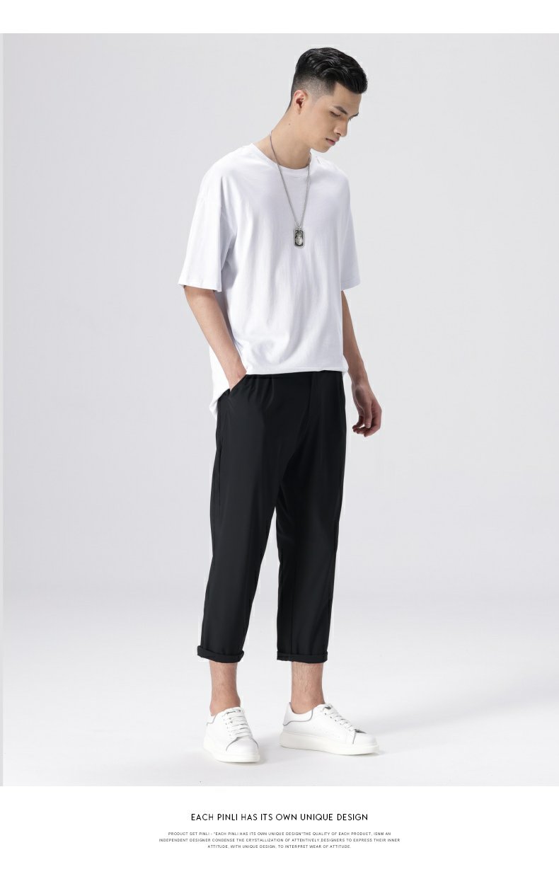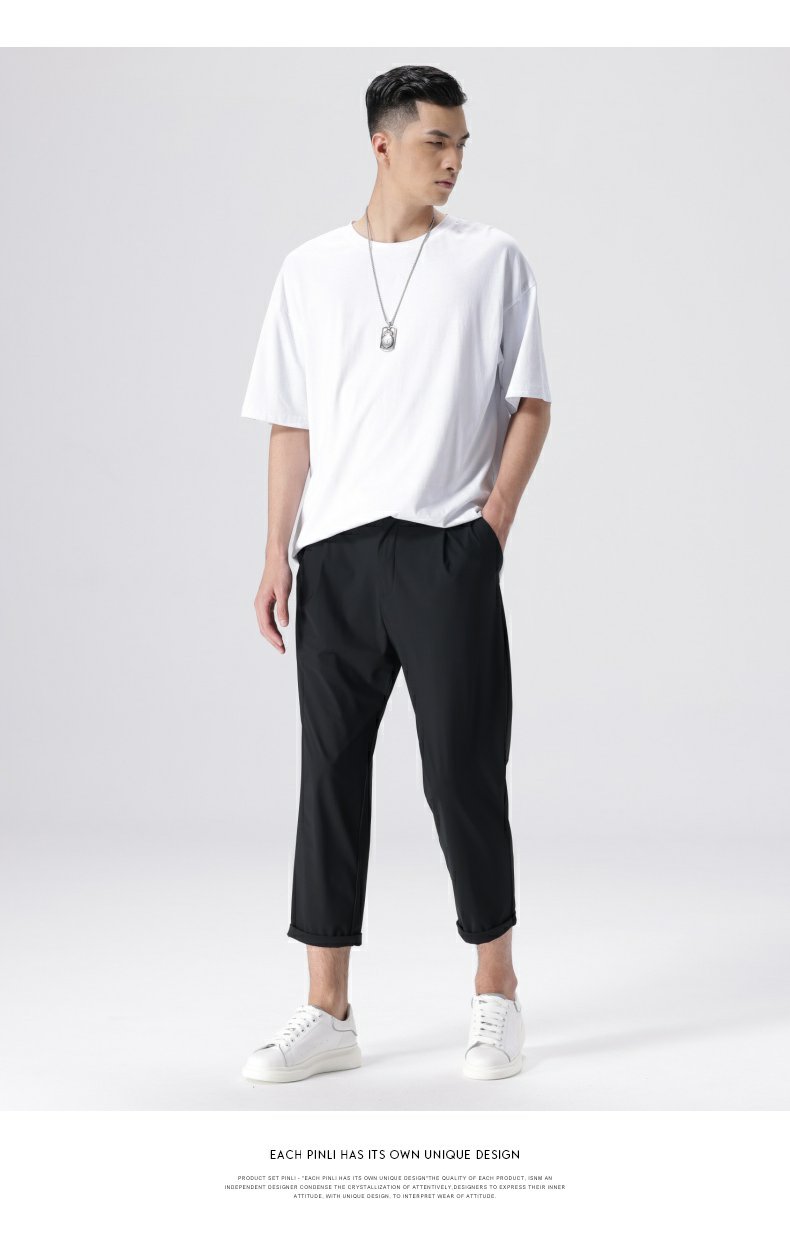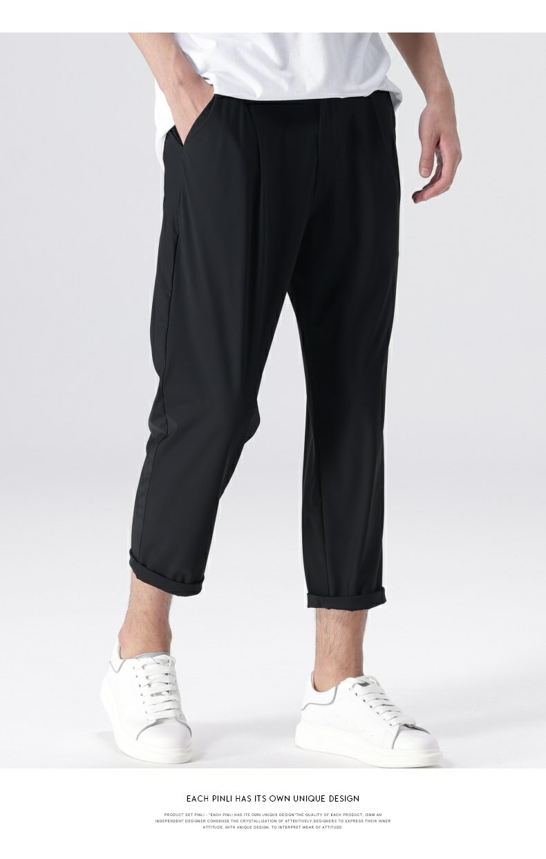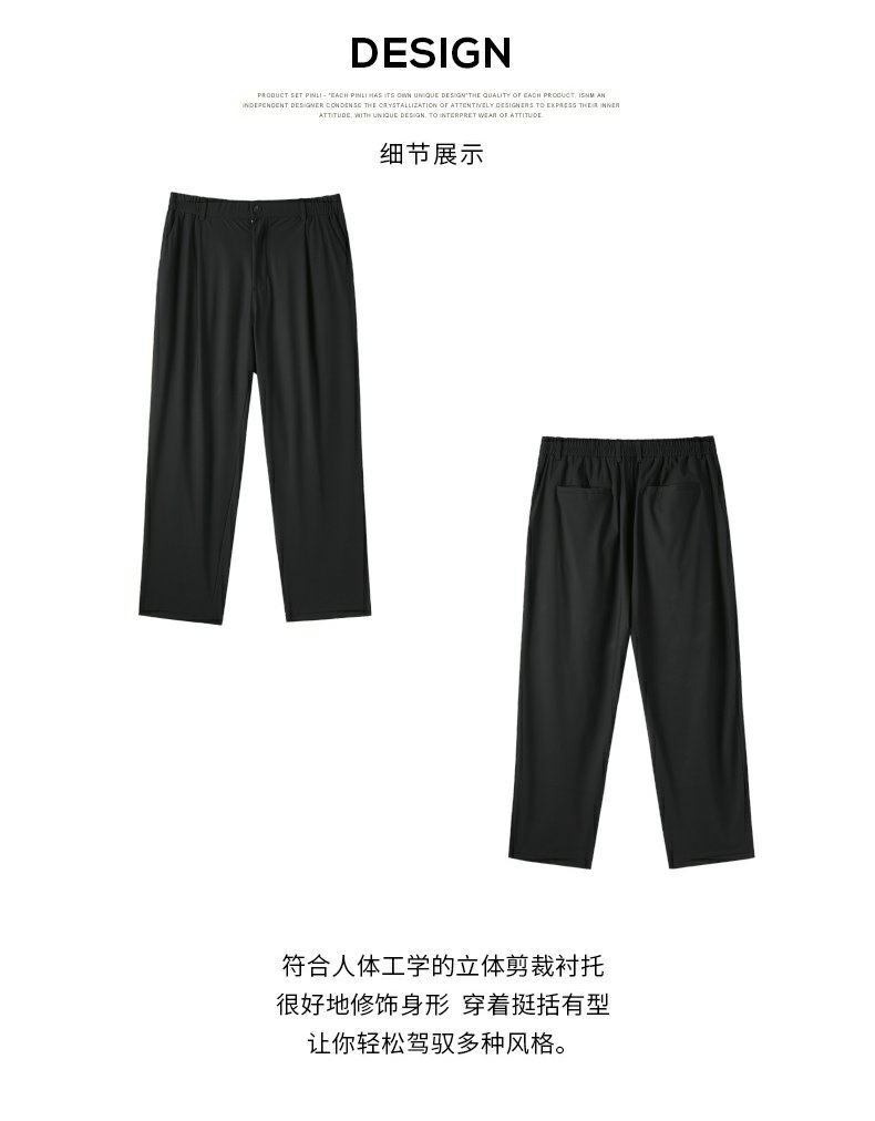 PINLI品立夏季新品薄款四面弹九分裤黑色休闲裤潮牌时尚西裤B242117149