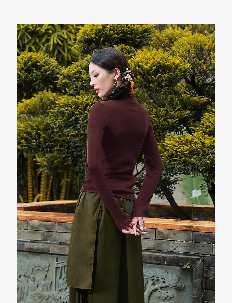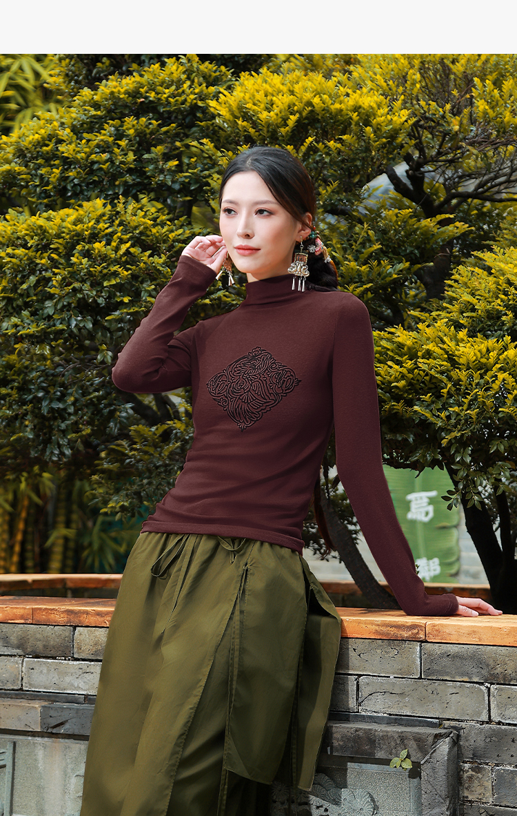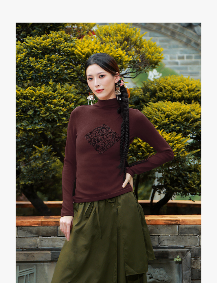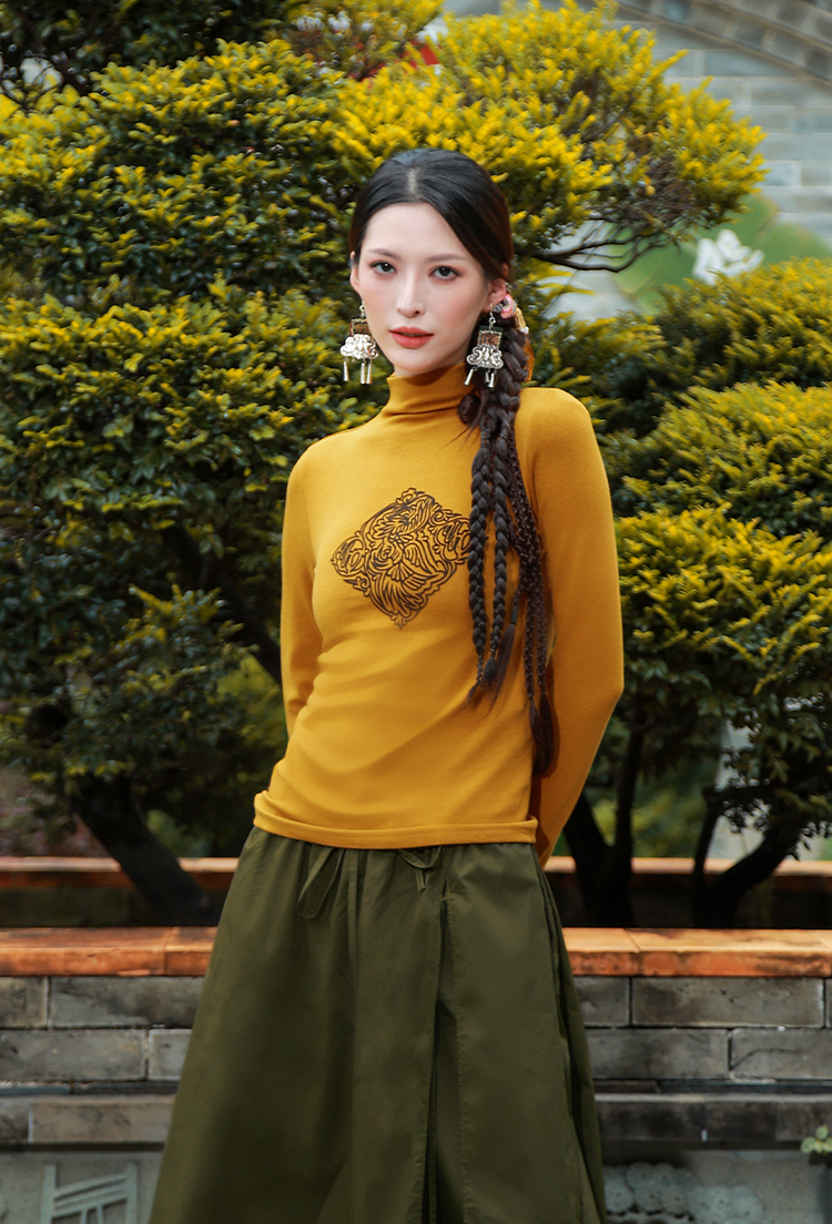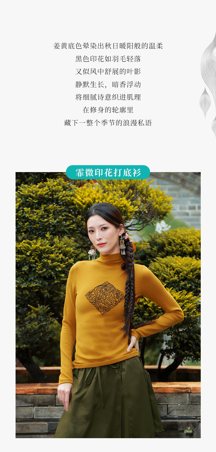 【冬季新品】霏微印花打底衫 | 姜黄色 酒红色 | 现货加急发