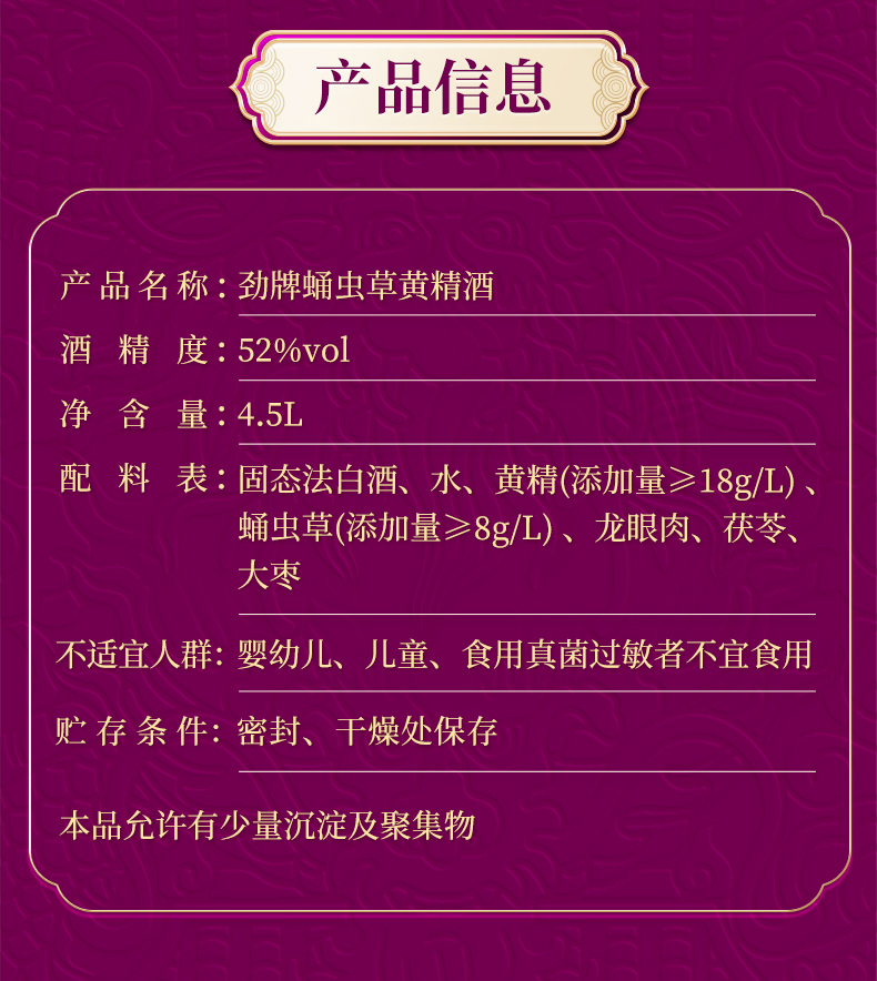 4.5L52度劲牌蛹虫草黄精酒_1*1
