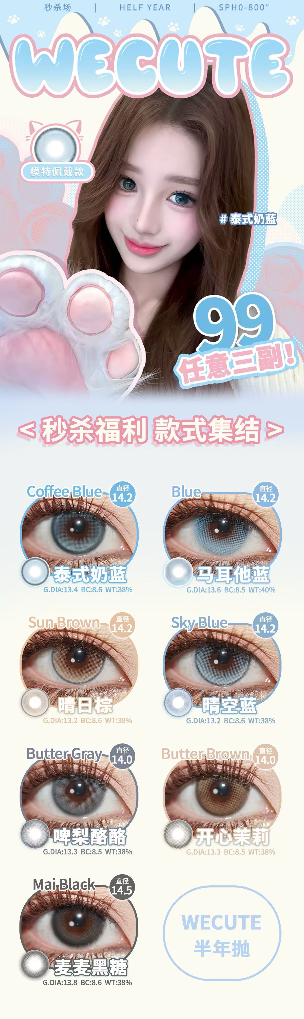 【秒杀活动无售后!】WECUTE 半年抛活动 99任选三副