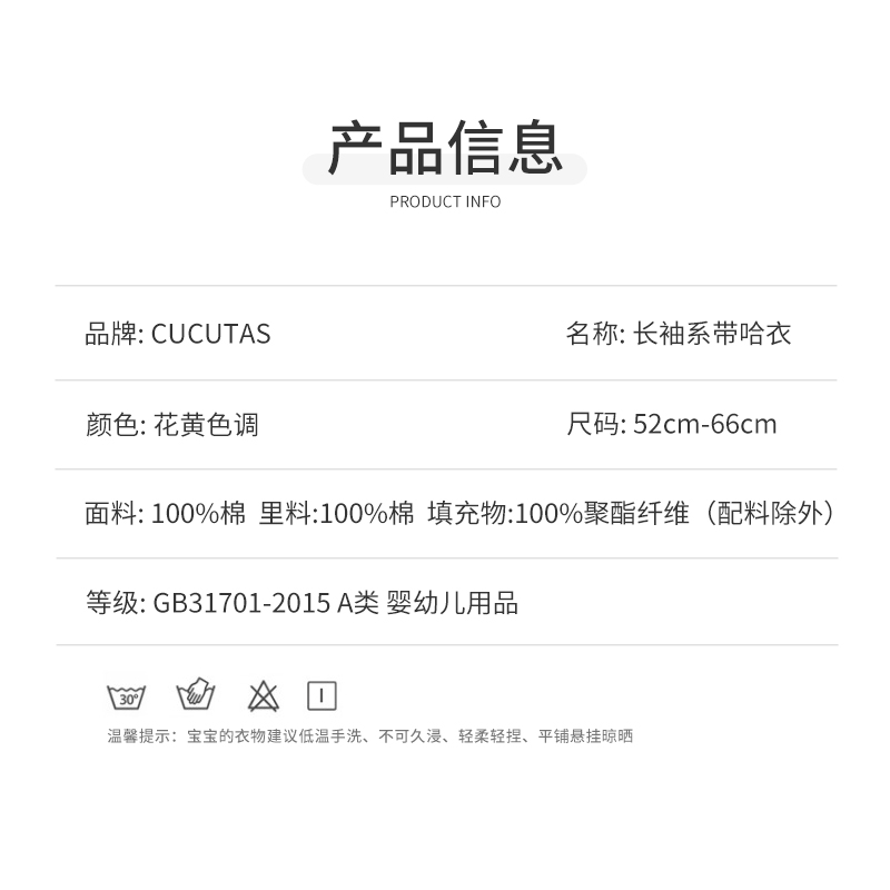 怡比森林之旅长袖系带哈衣HY25WIN032花黄色调55#-66#