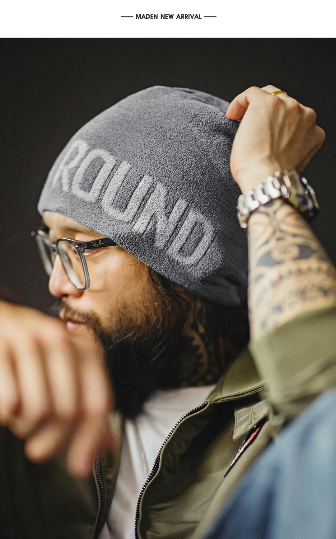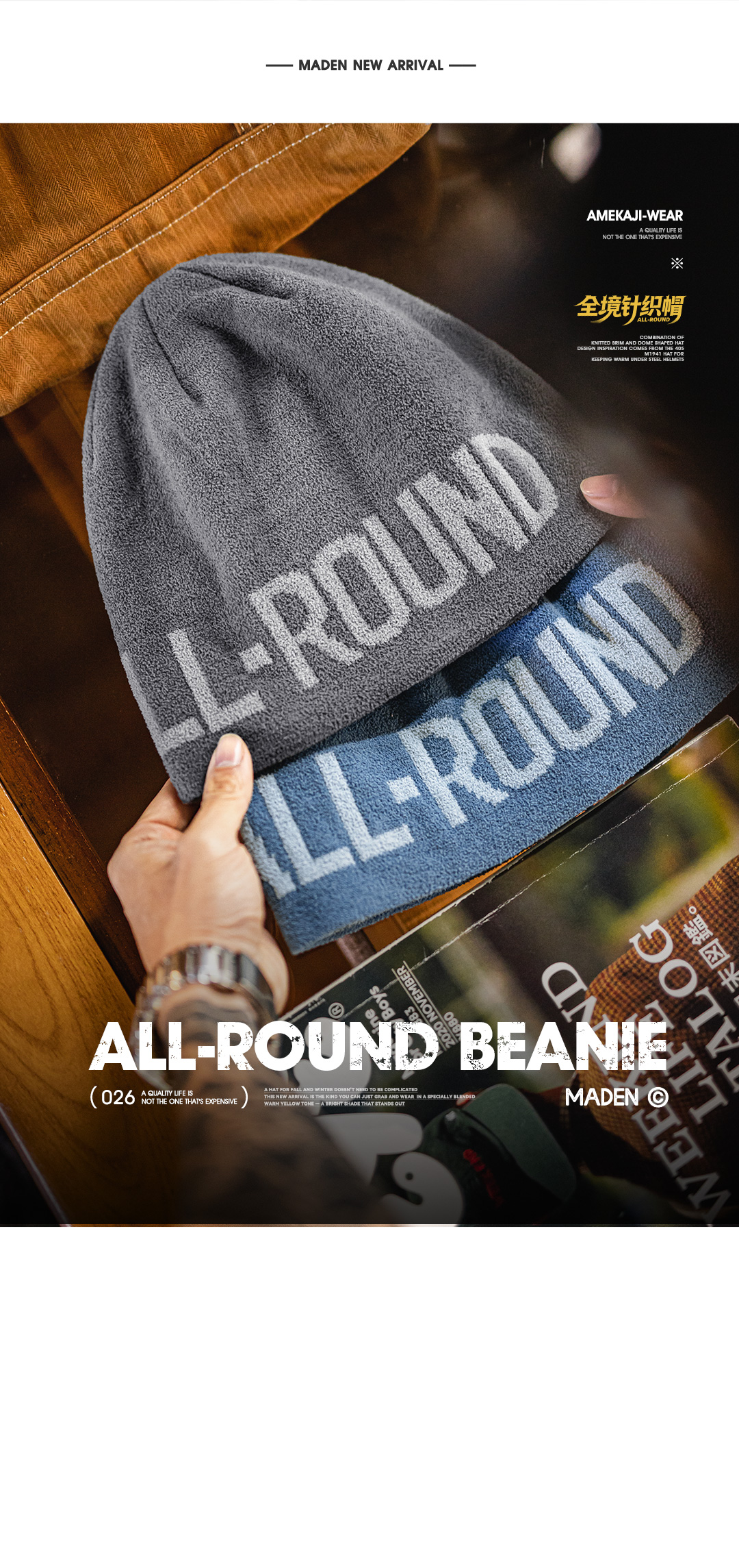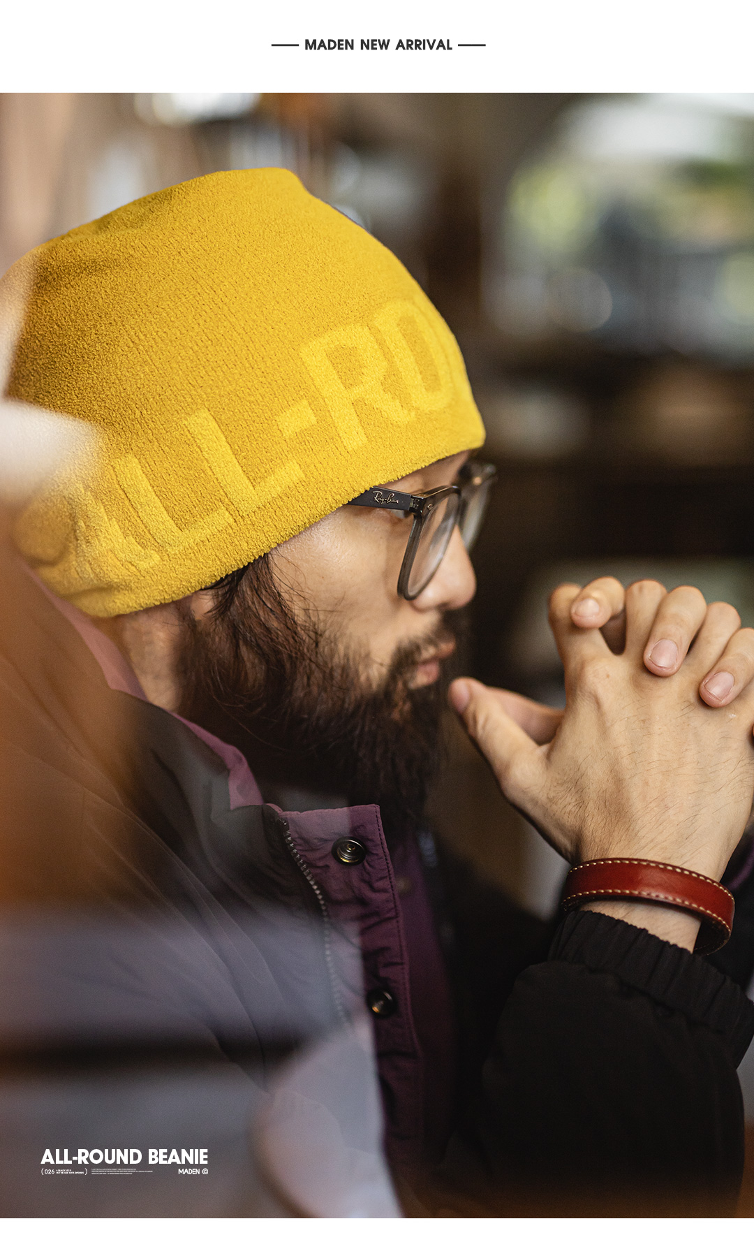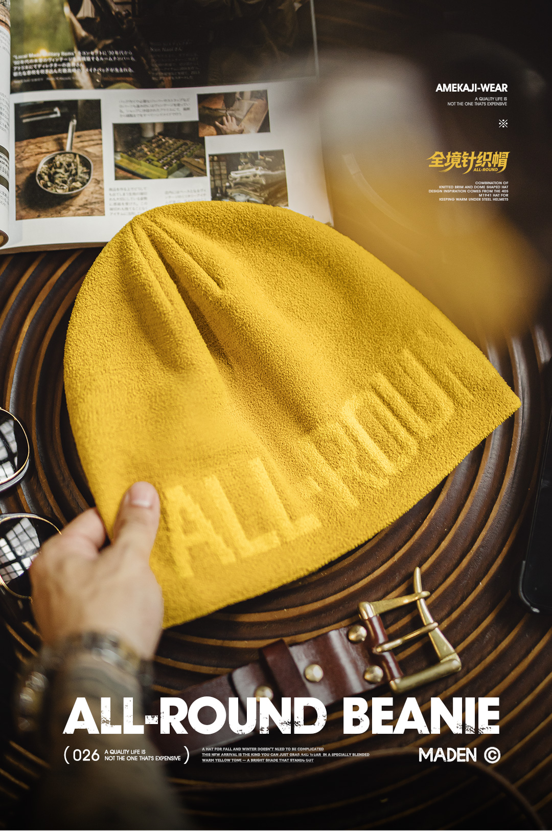 马登工装美式黄色提花针织冬帽山系日杂冷帽保暖太阳帽编织帽男