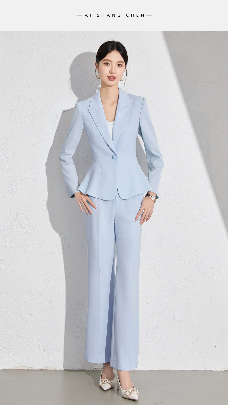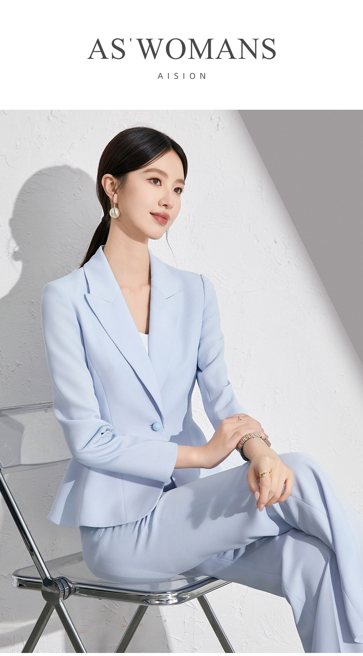 艾尚臣浅蓝色西装套装女修身职业装高级感职场商务正装主持工作服