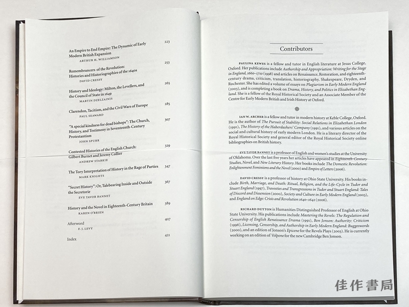 Contributors include Ian W. Archer, Eve Tavor Bannet, David Cressy, Richard Dutton, Martin Dzelzainis, Felicity Heal, Christopher Highley, John N. King, Mark Knights, Karen O’Brien, Paul Seaward, John Spurr, Andrew Starkie, Arthur H. Williamson, David Womersley, Daniel R. Woolf, and Blair Worden.