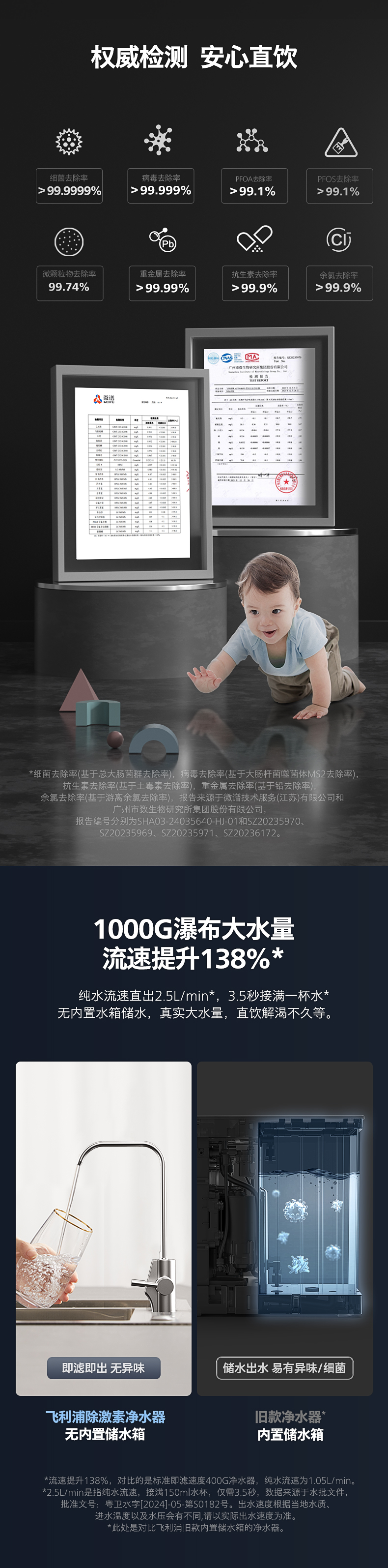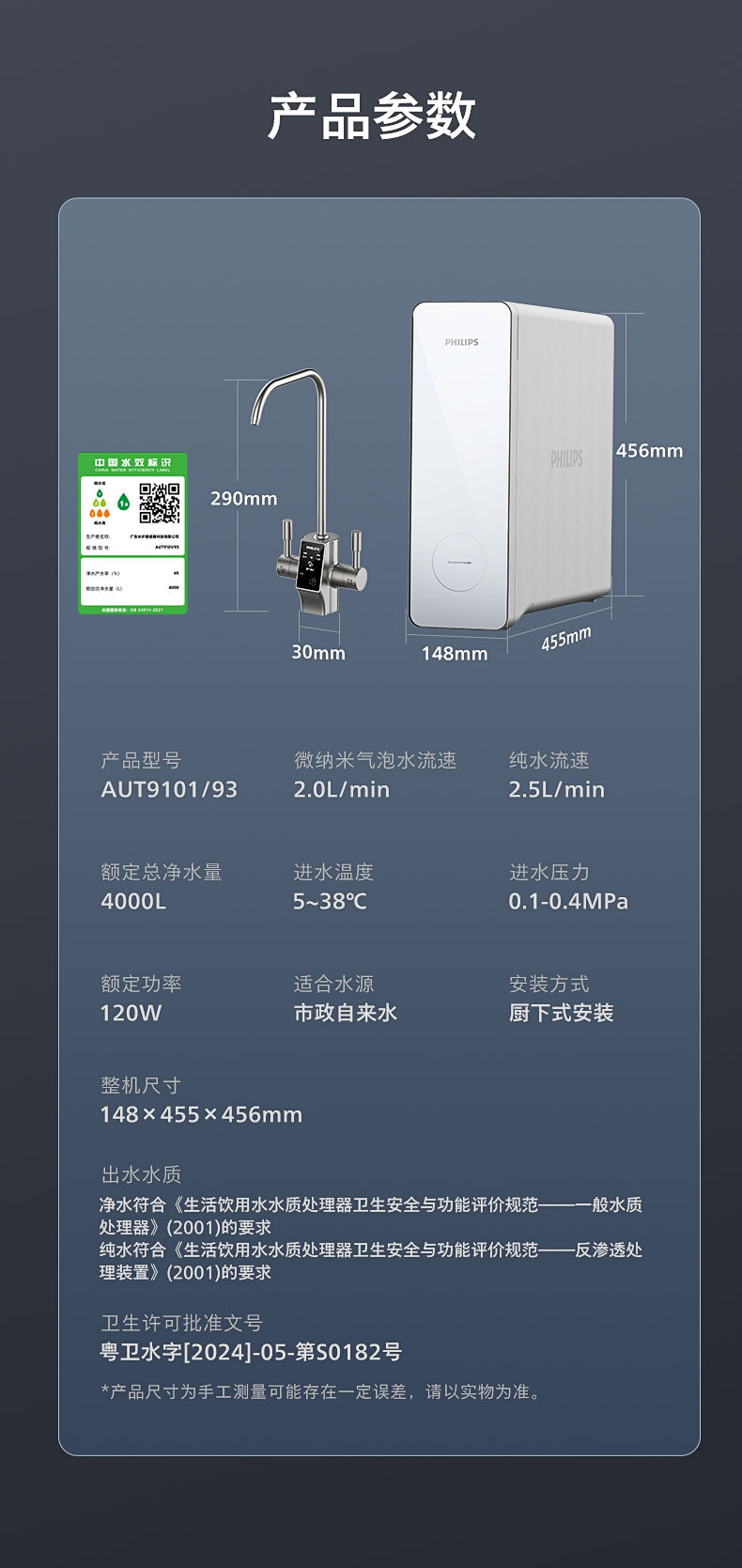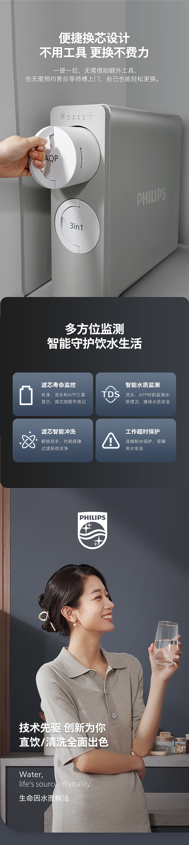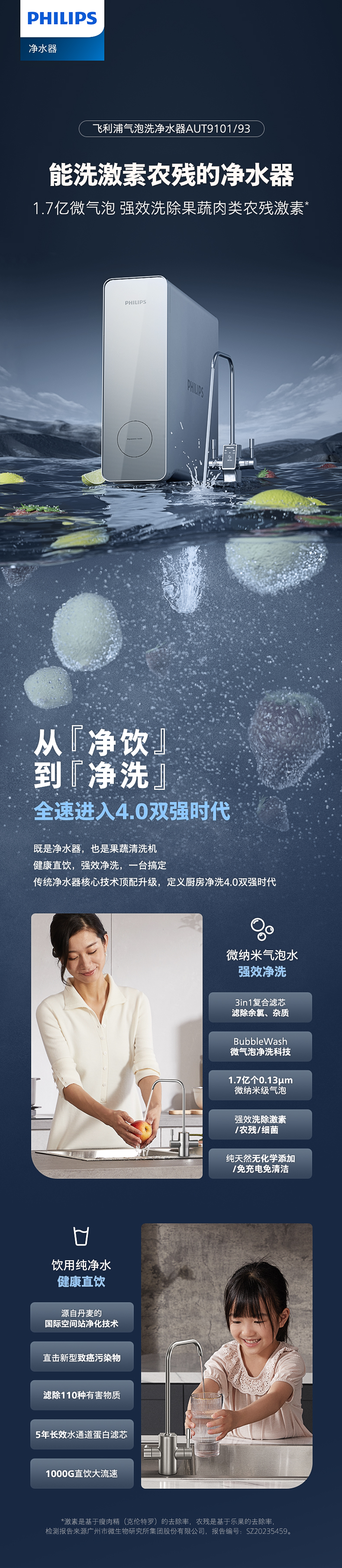 飞利浦(PHILIPS)气泡洗净水器果蔬洗家用直饮反渗透净水机AUT9101