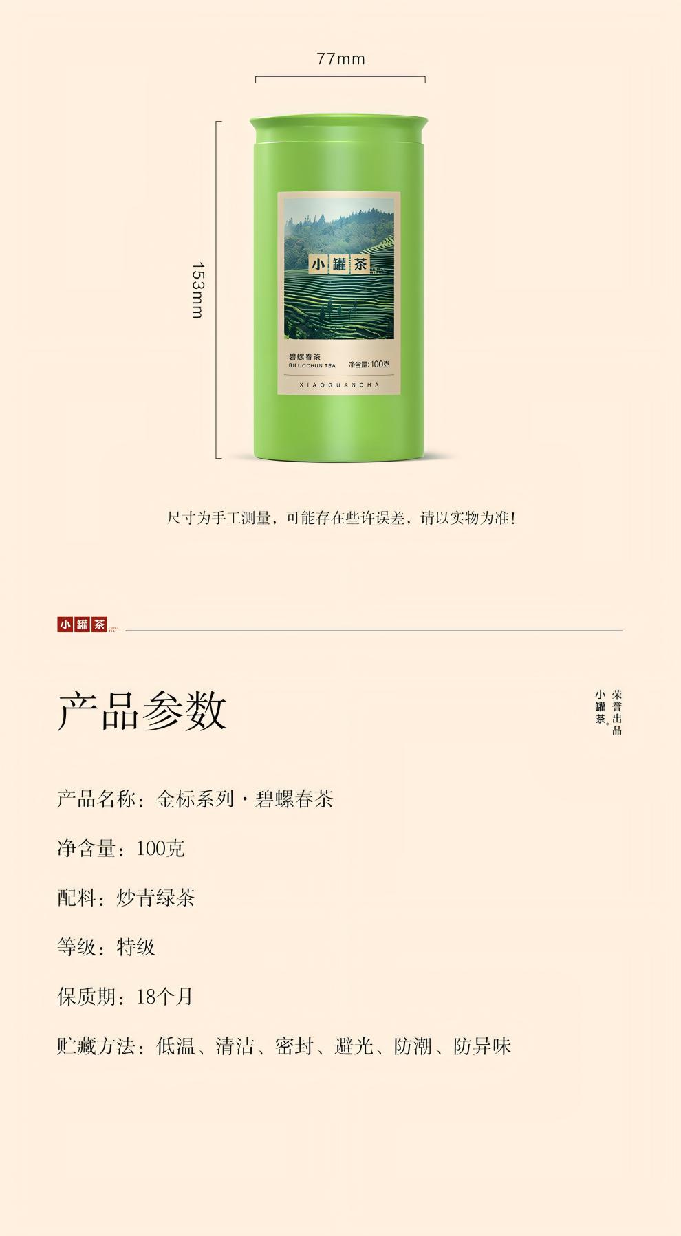 【2026春茶】小罐茶 金标系列碧螺春茶 明前特级春茶 100g【预售】