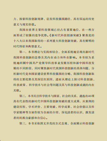 十年踔厉奋发,我国科技创新突破可谓硕果累累。本书由中科院传播局周德进、中科院自然科学史研究所陈朴研究员主编,遴选党的十八大以来40项(200余幅图)重大科技创新突破成果,从主要突破点、科学社会价值等方面进行了介绍,深化读者的认识。本书还较为系统地回顾中国共产党领导科技事业发展历程和新中国科技发展的不同阶段,同时聚焦新时代我国科技创新的具体问题,分析新时代党和国家建设世界科技强国的方略、我国科技创新取得的主要优势和其中的原因,从理论上探讨科技创新、科技政策、科学技术与社会等问题及其与科技创新成就的内在关联。