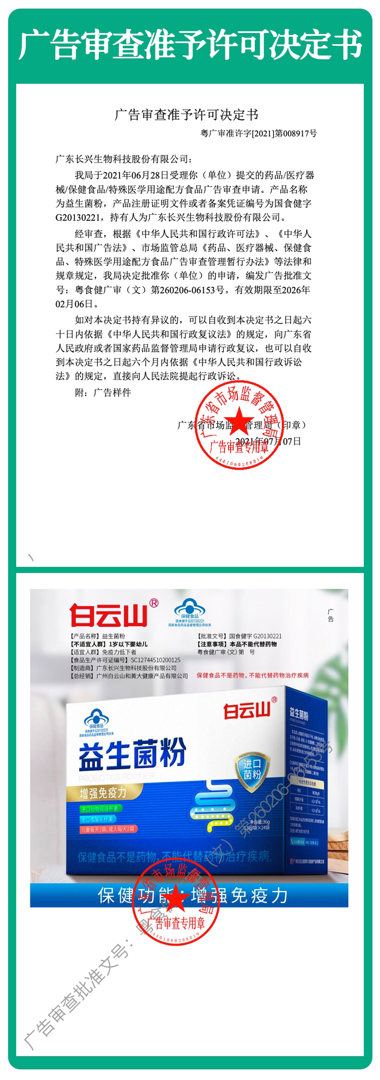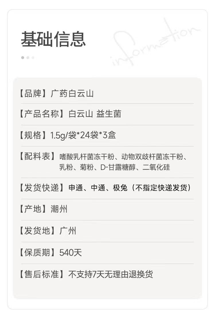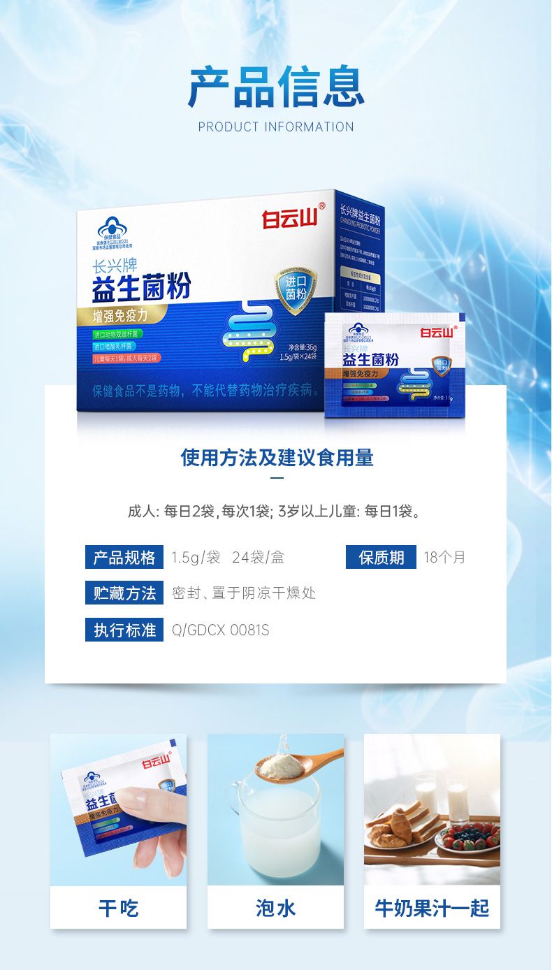 【中华老字号-白云山益生菌粉】 百强品牌 蓝帽子认证 增强免疫力 有蓝帽子认证的益生菌24袋/盒*3盒