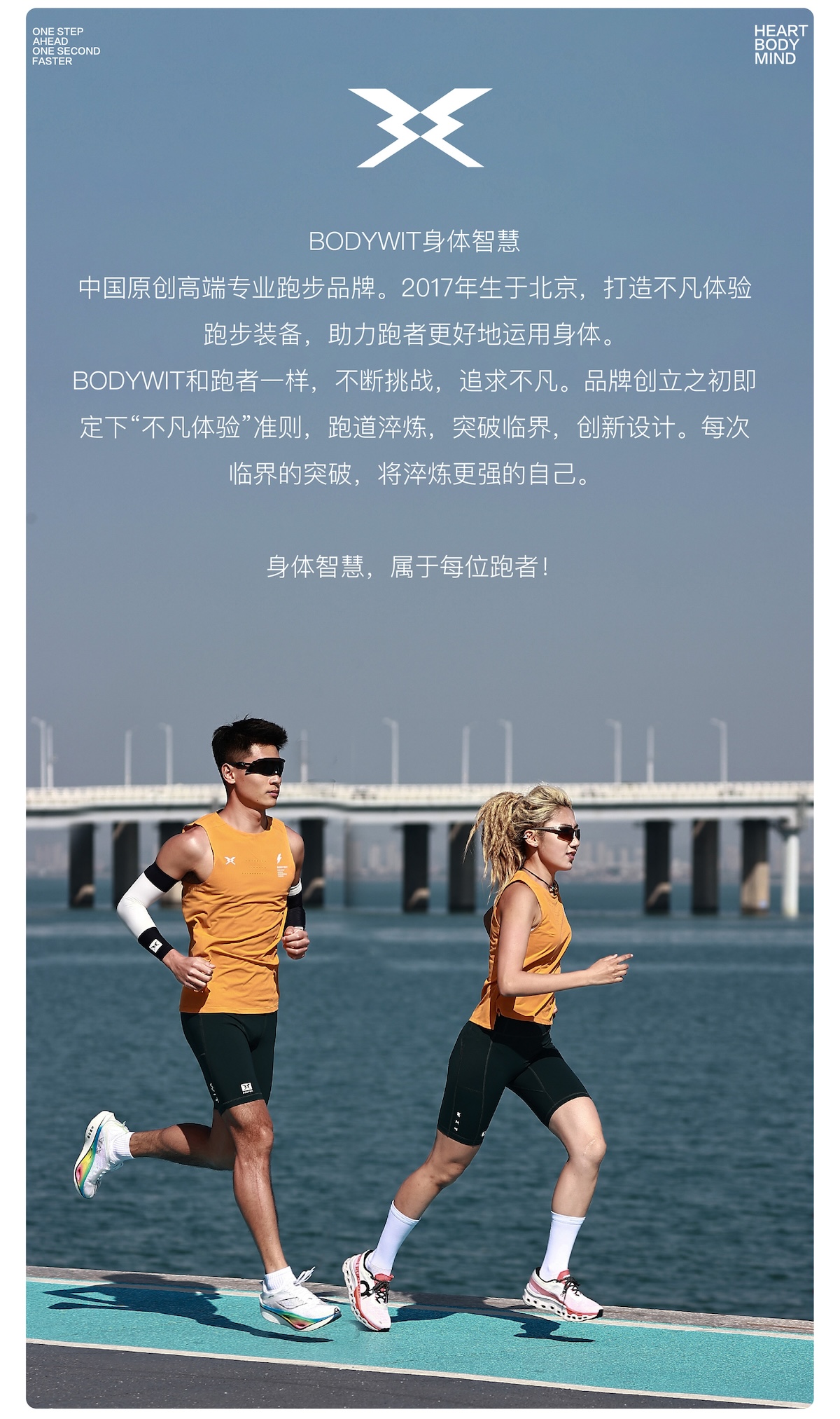 - 身体智慧的每一件装备,都是为了跑者在这条心灵之路上,轻松而坚定的前行。我们与每一位跑者共同探索跑步的真谛,寻找内心的宁静与力量,成为不凡的自己。身体智慧属于每位跑者。