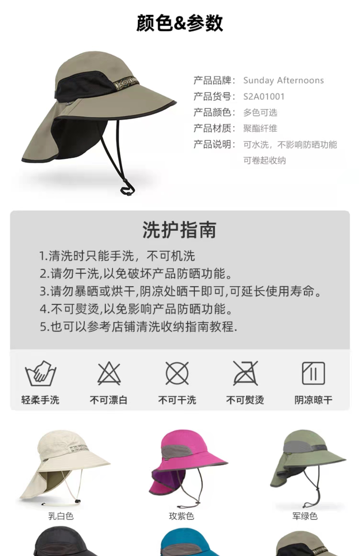 SundayAfternoons Adventure成人防晒帽遮脸遮阳帽防紫外线钓鱼帽S2A01001