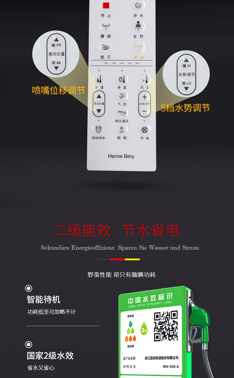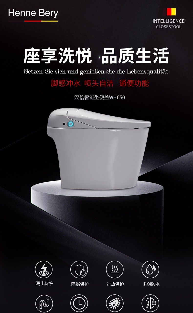 德国汉倍WH-650智能马桶除菌抗菌即热式感应冲水全自动一体式坐便器