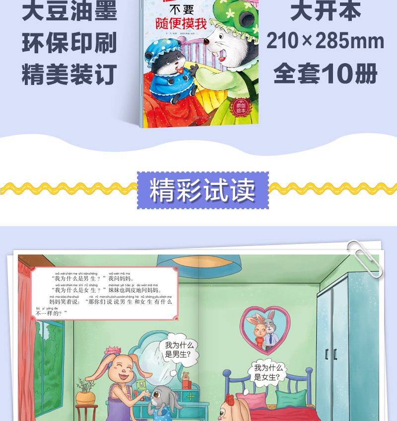 【专属优惠】全10册儿童性教育绘本学会爱自己 自我保护意识培养幼儿启蒙2-3-6-7周岁安全读物不要随便摸我故事书籍宝宝读物 不要随便欺负我