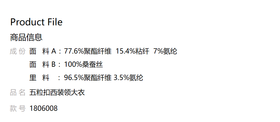 五粒扣西装领大衣 - 时尚收腰修身显瘦排扣中长款外套 1806008