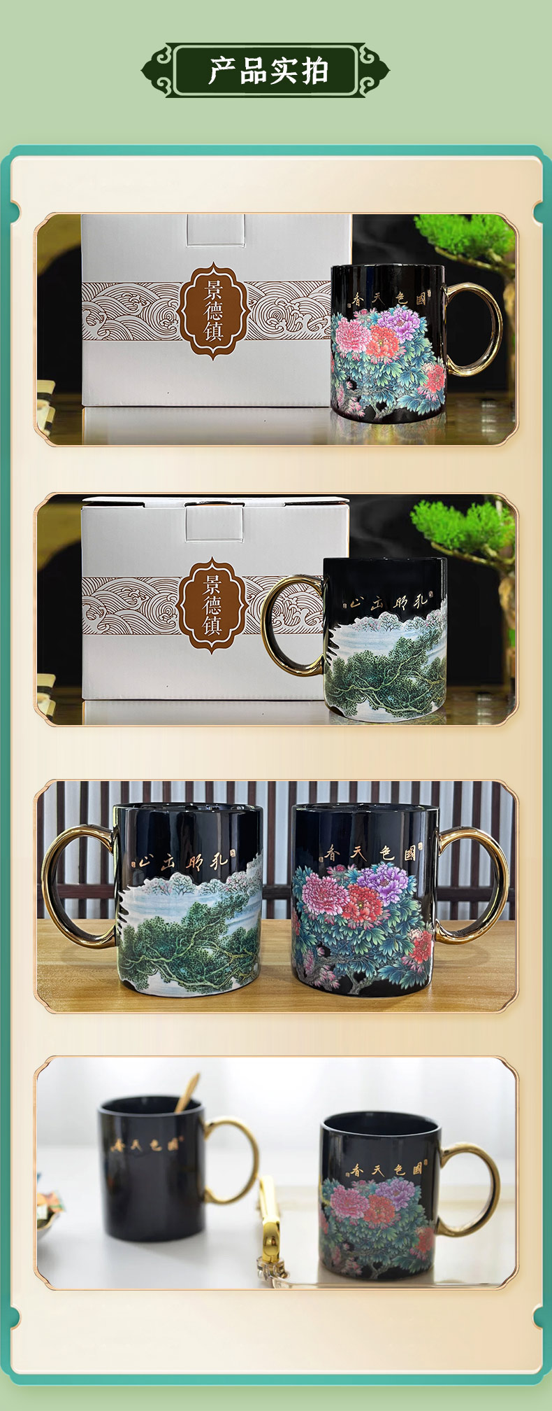 【青绿江山】旅行茶具套组(盖碗),润泽如玉 堆金工艺,原创设计 精致包装