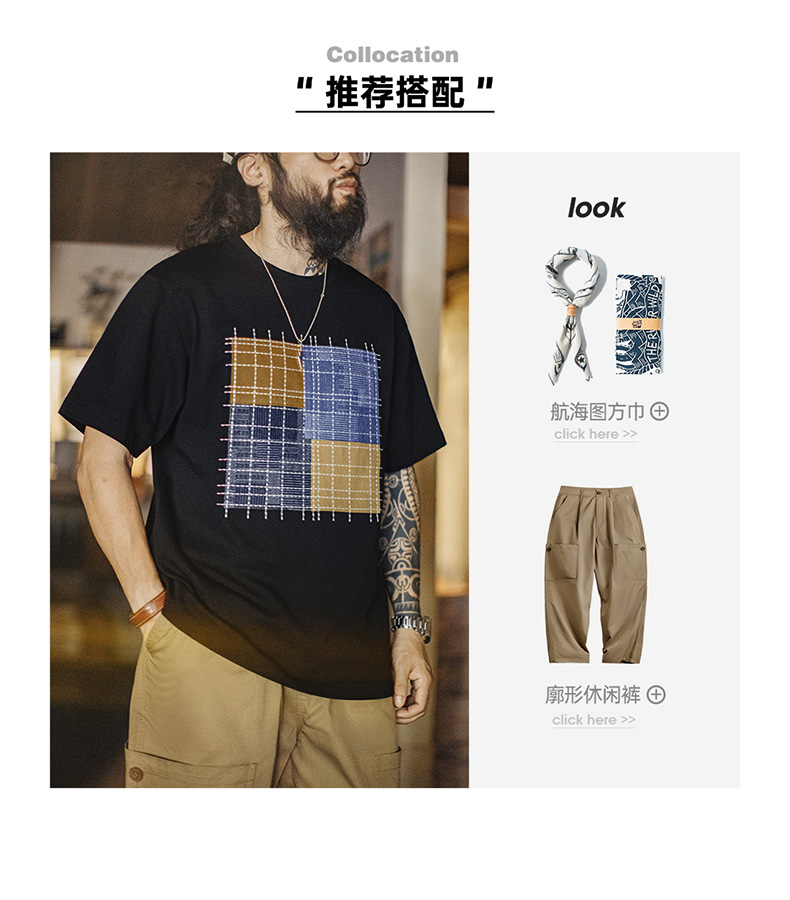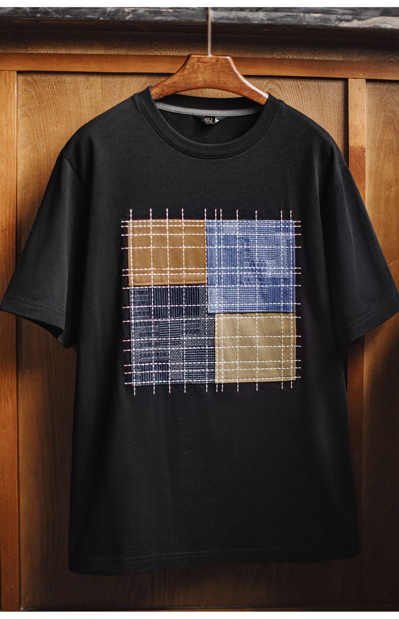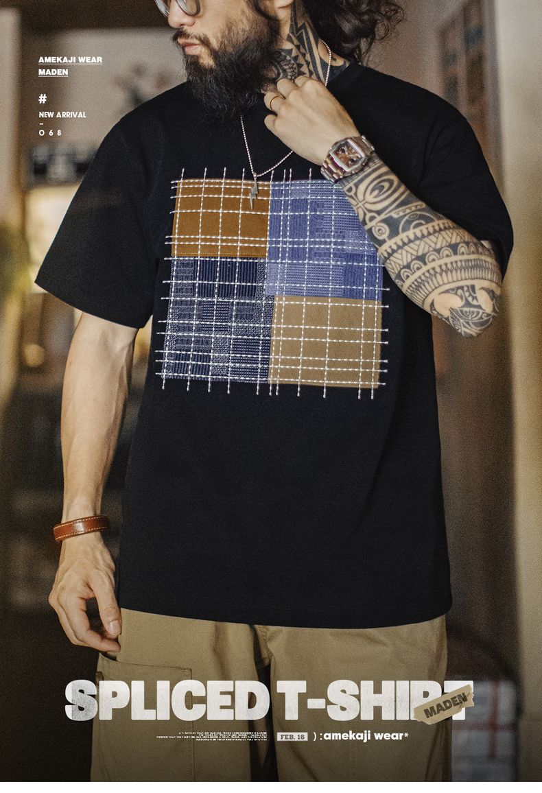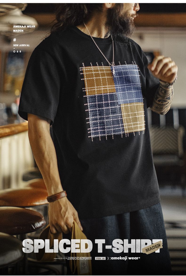 工装优选 日系复古撞色拼布短袖T恤纯棉透气设计感半袖Tee男夏