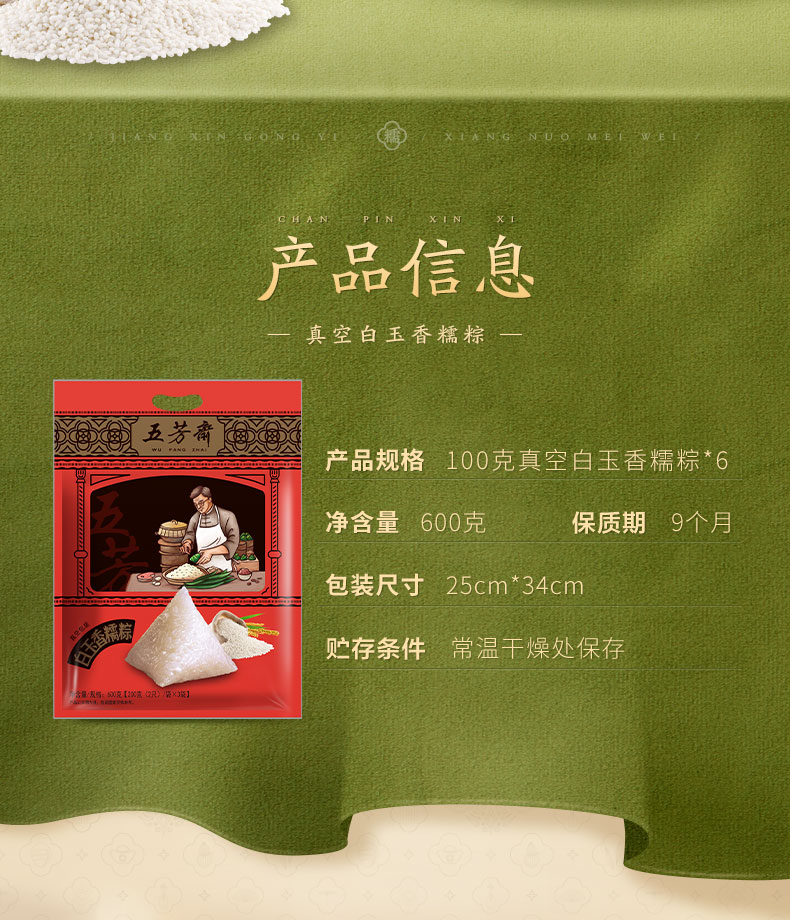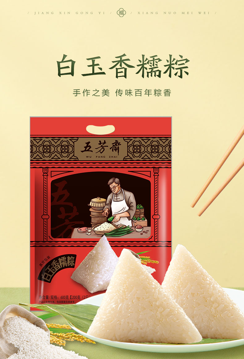 五芳斋 真空白玉香糯粽 6只囤货装 白糯米本味 100g*6