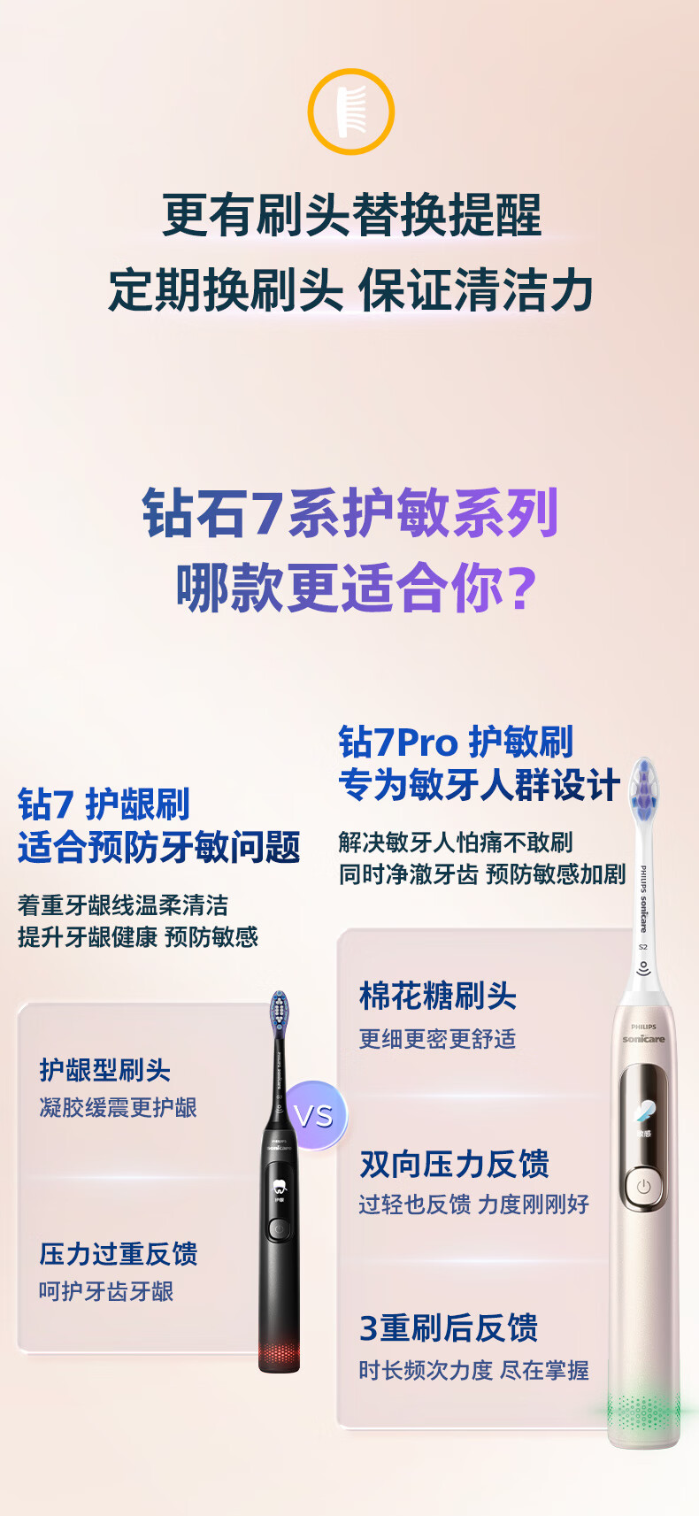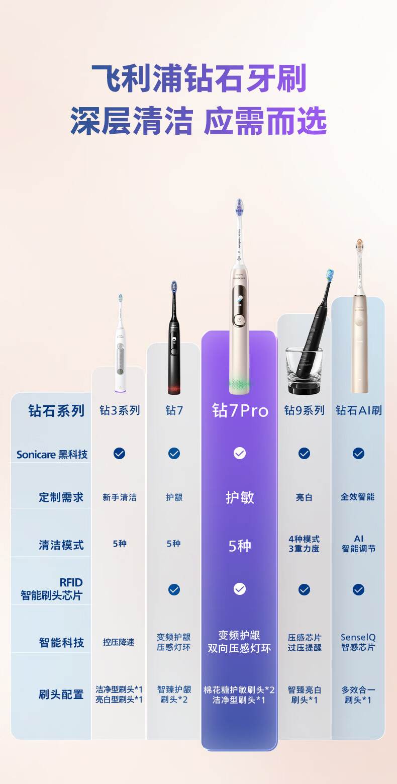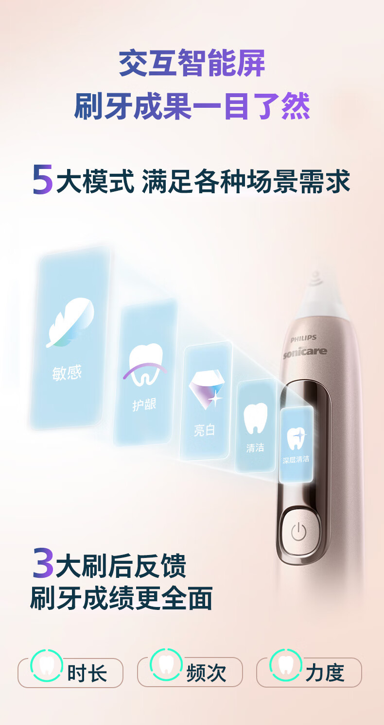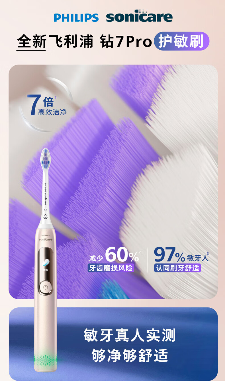 【6F】飞利浦(PHILIPS)电动牙刷钻石7系Pro 护敏刷 棉花糖刷头舒适敏感牙齿 送男生/女友 生日礼物 曙光金