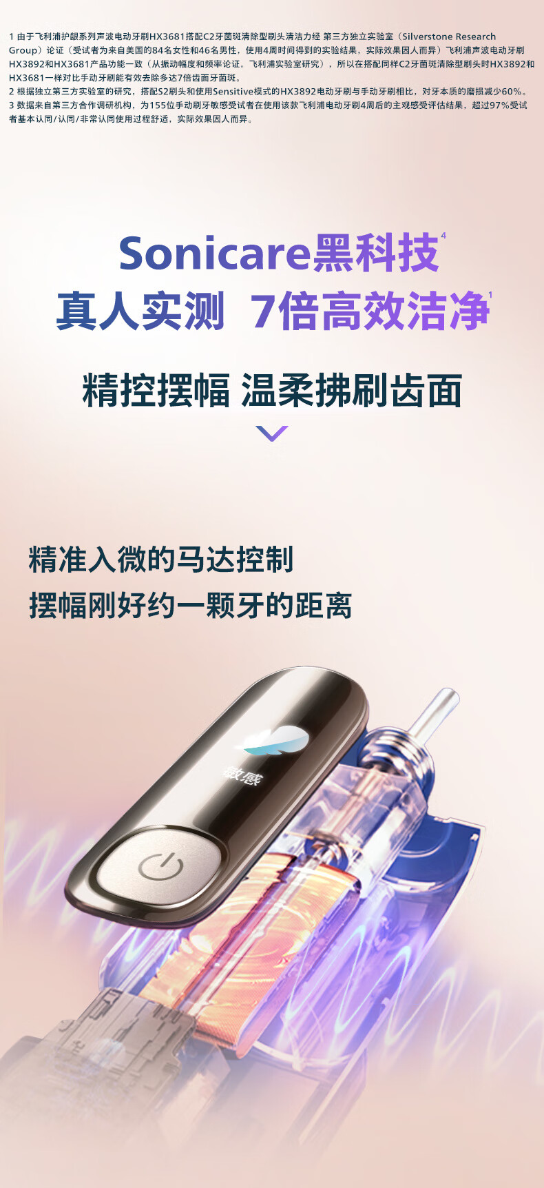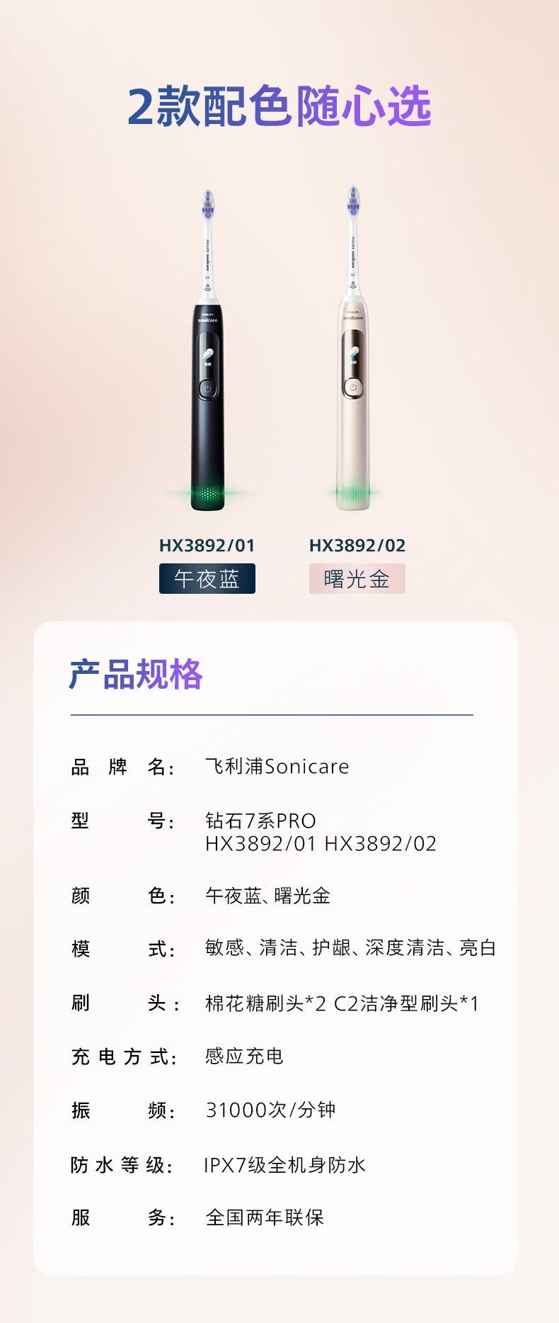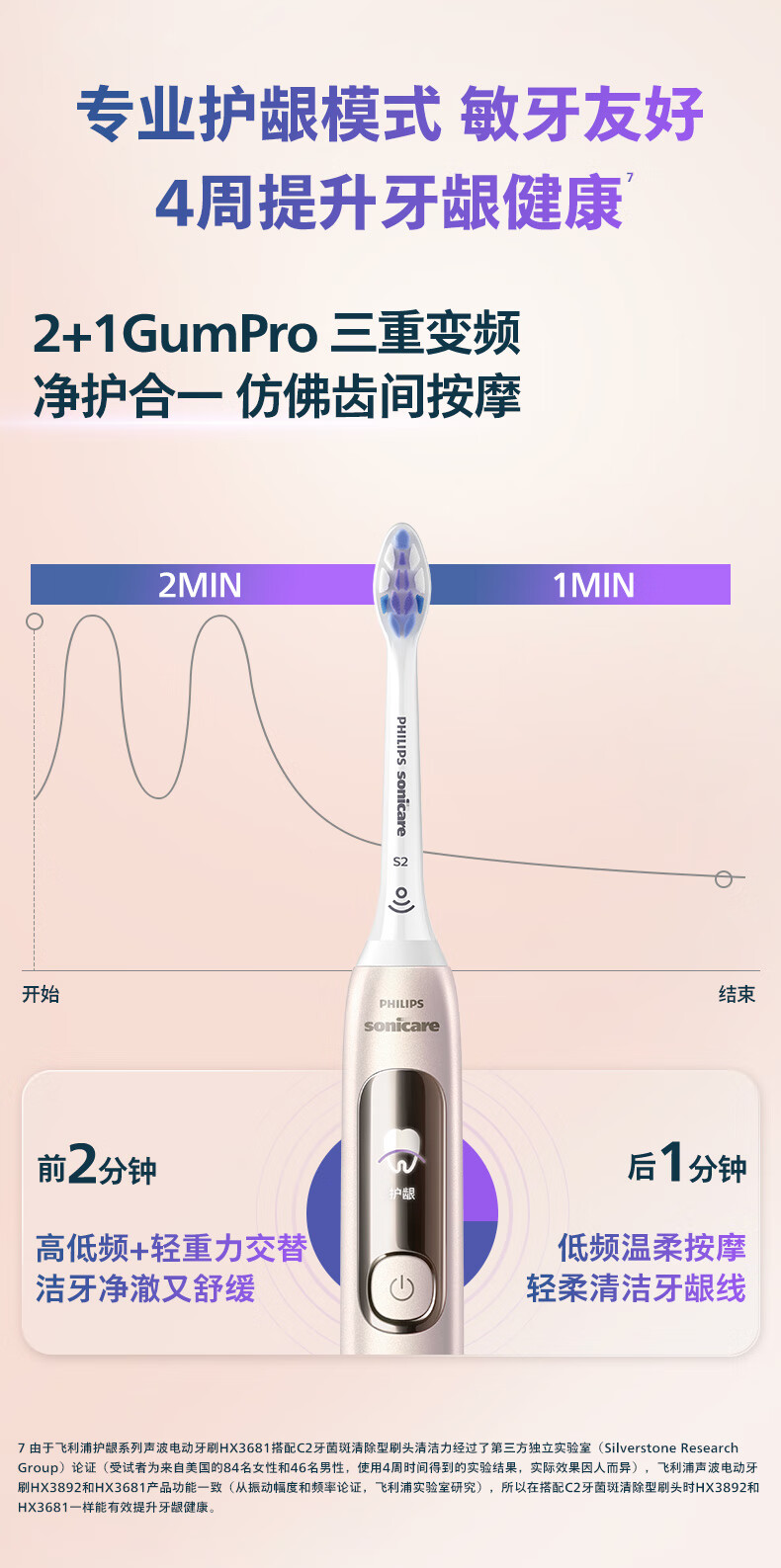 【6F】飞利浦(PHILIPS)电动牙刷钻石7系Pro 护敏刷 棉花糖刷头舒适敏感牙齿 送男生/女友 生日礼物 曙光金