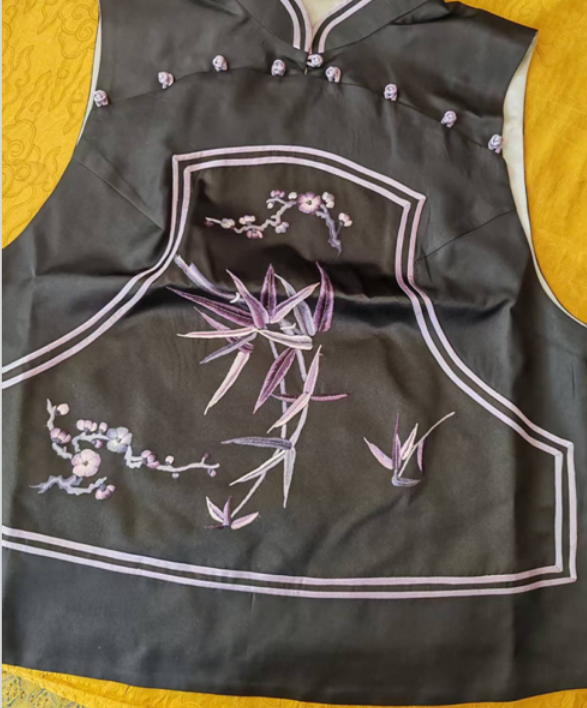 盛唐牡丹| 香云纱手绣一字襟马甲(盛唐牡丹与非遗传承人王小潇联名系列)