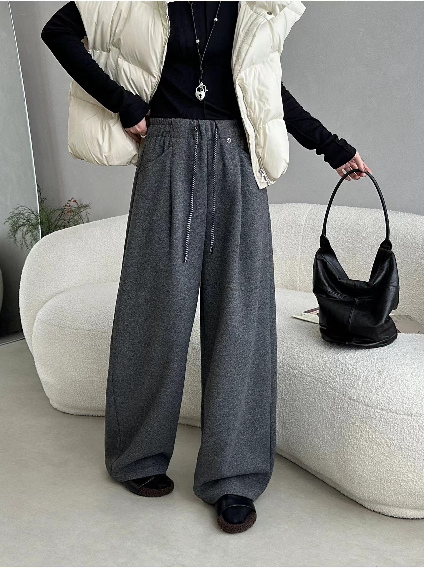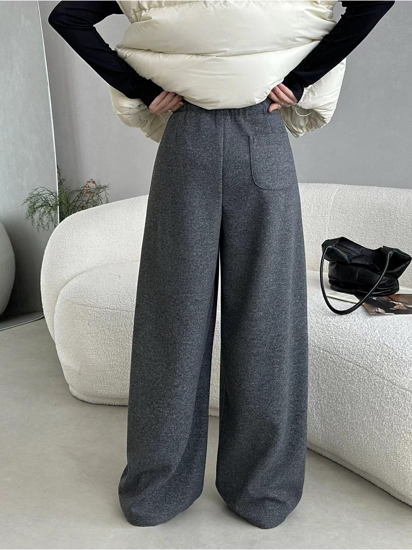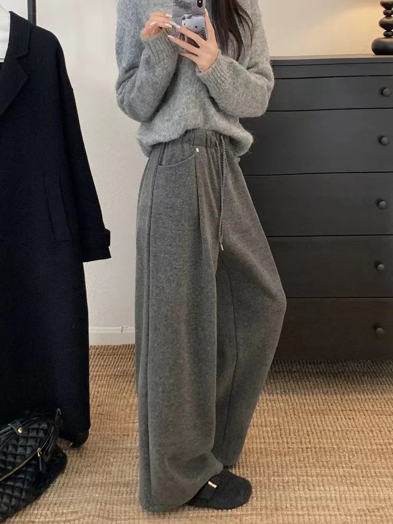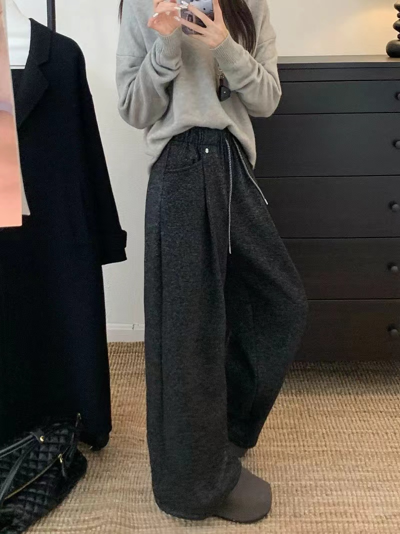加绒保暖毛呢直筒休闲裤女秋季2025新款高腰抽绳宽松百搭呢子长裤,加绒阔腿毛呢裤|把“冬日暖炉”穿在身上,显瘦保暖一步到位,当软糯加绒邂逅垂顺毛呢,当阔腿版型碰撞高腰设计,这条裤子直接把秋冬的“温暖与显瘦”锁死!高腰阔腿剪裁:视觉上“拉高腰线+遮胯藏肉”,不管是梨形身材还是苹果型身材,都能穿出“下装消失”的长腿既视感;立体打褶设计:裤身褶皱增加层次感,行走间自带垂坠感,告别普通阔腿裤的单调拖沓;抽绳腰头+隐形口袋:松紧腰适配各种腰围,抽绳可自由调节,侧边口袋实用又隐形,日常放手机、钥匙超方便。
