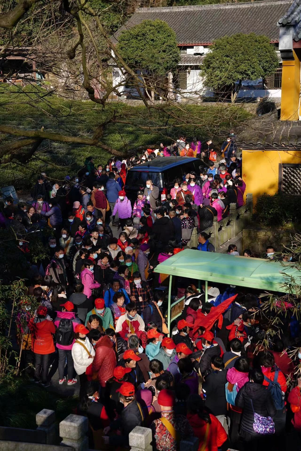 灵隐香客络绎不绝,山门之外也排起了长队。